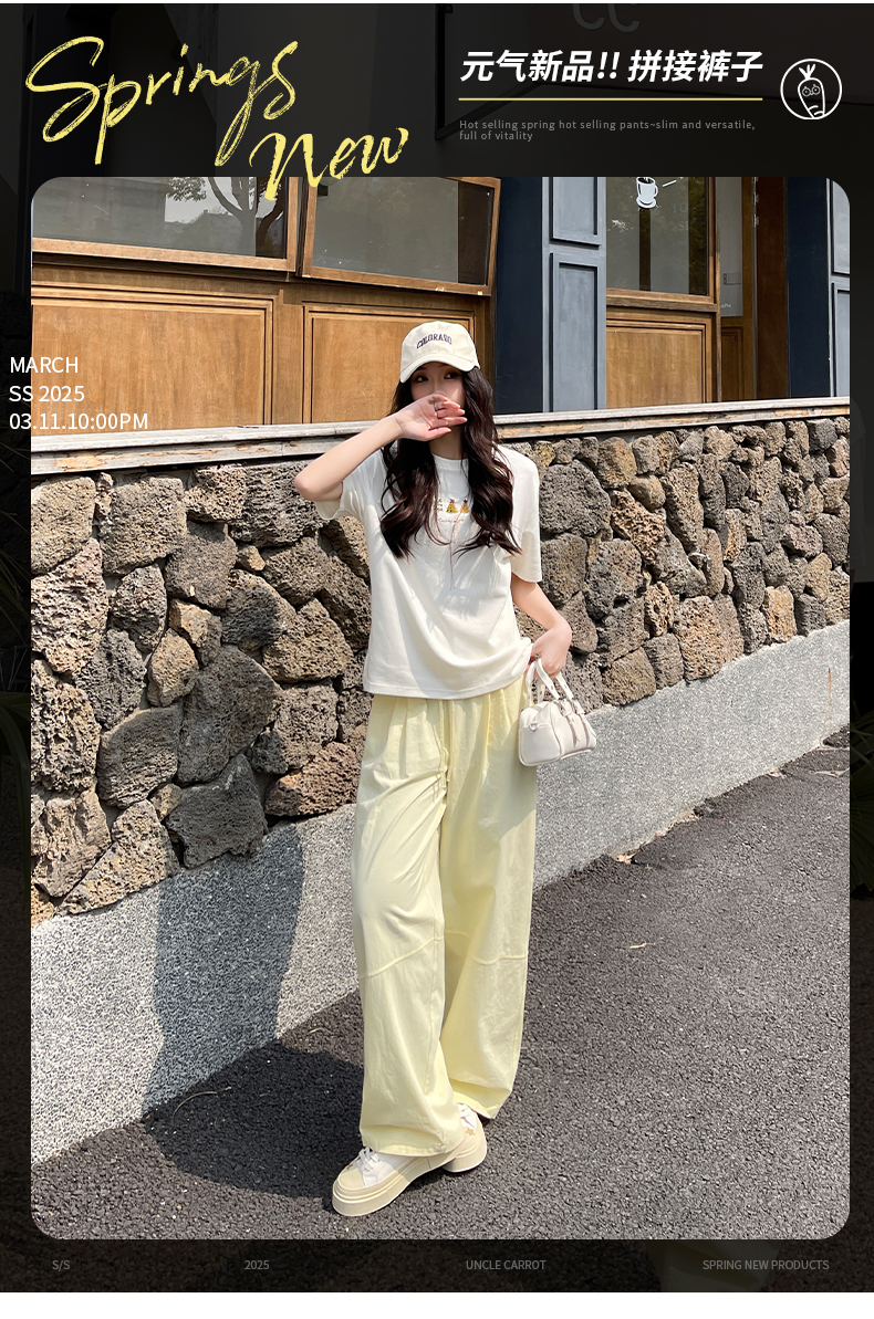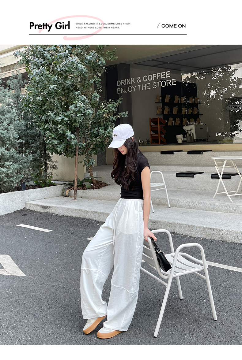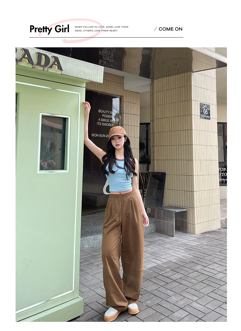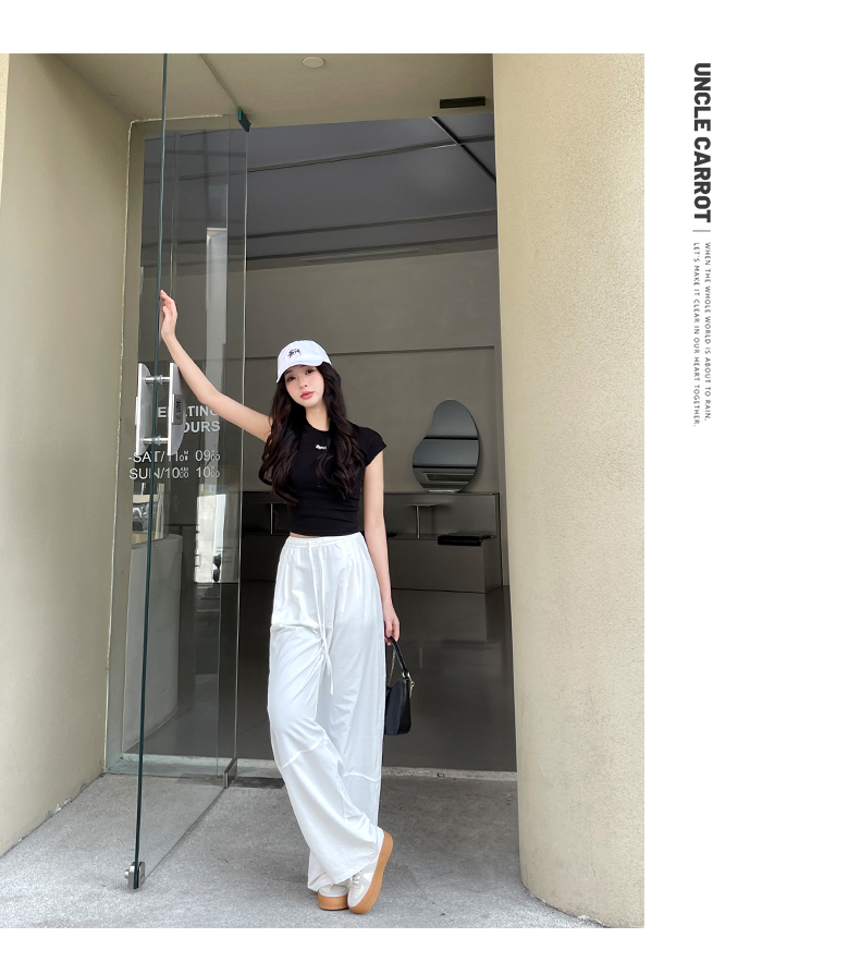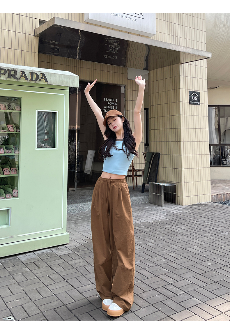 【YW】无忧购美式高腰宽松慵懒休闲薄款拼接窄版阔腿速干运动裤LB-41026(截单后7天发货)