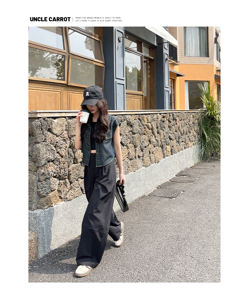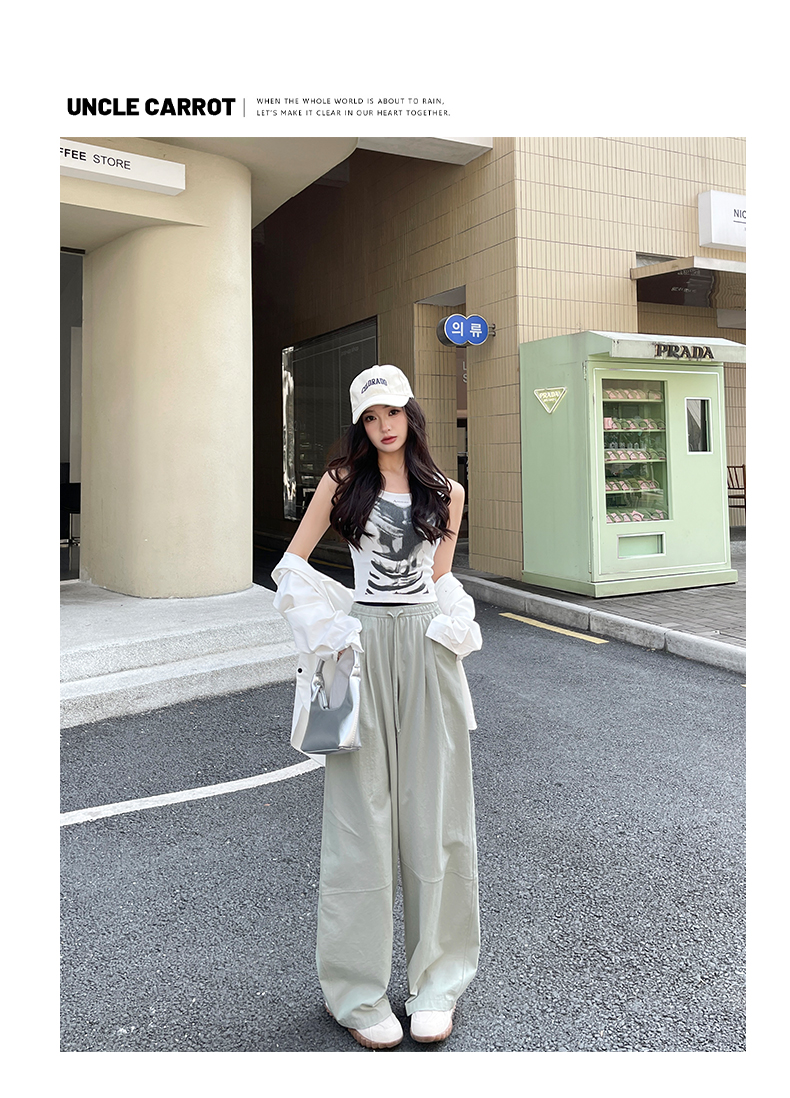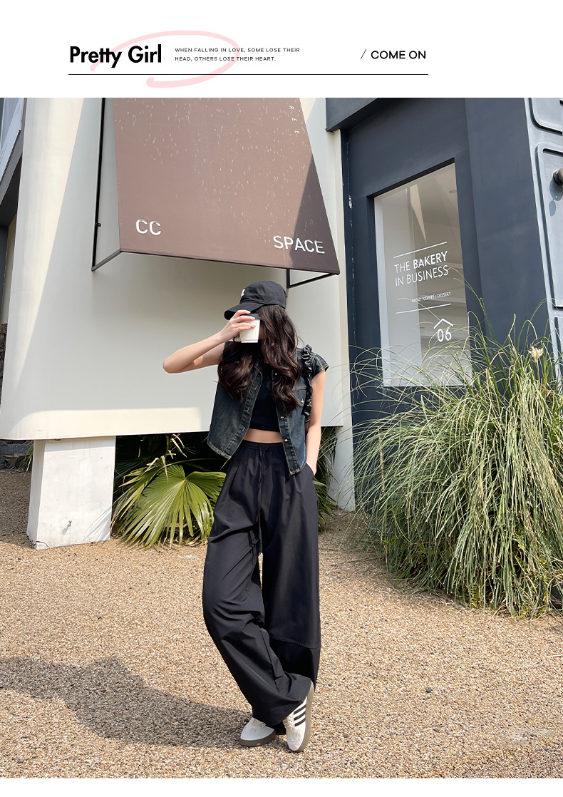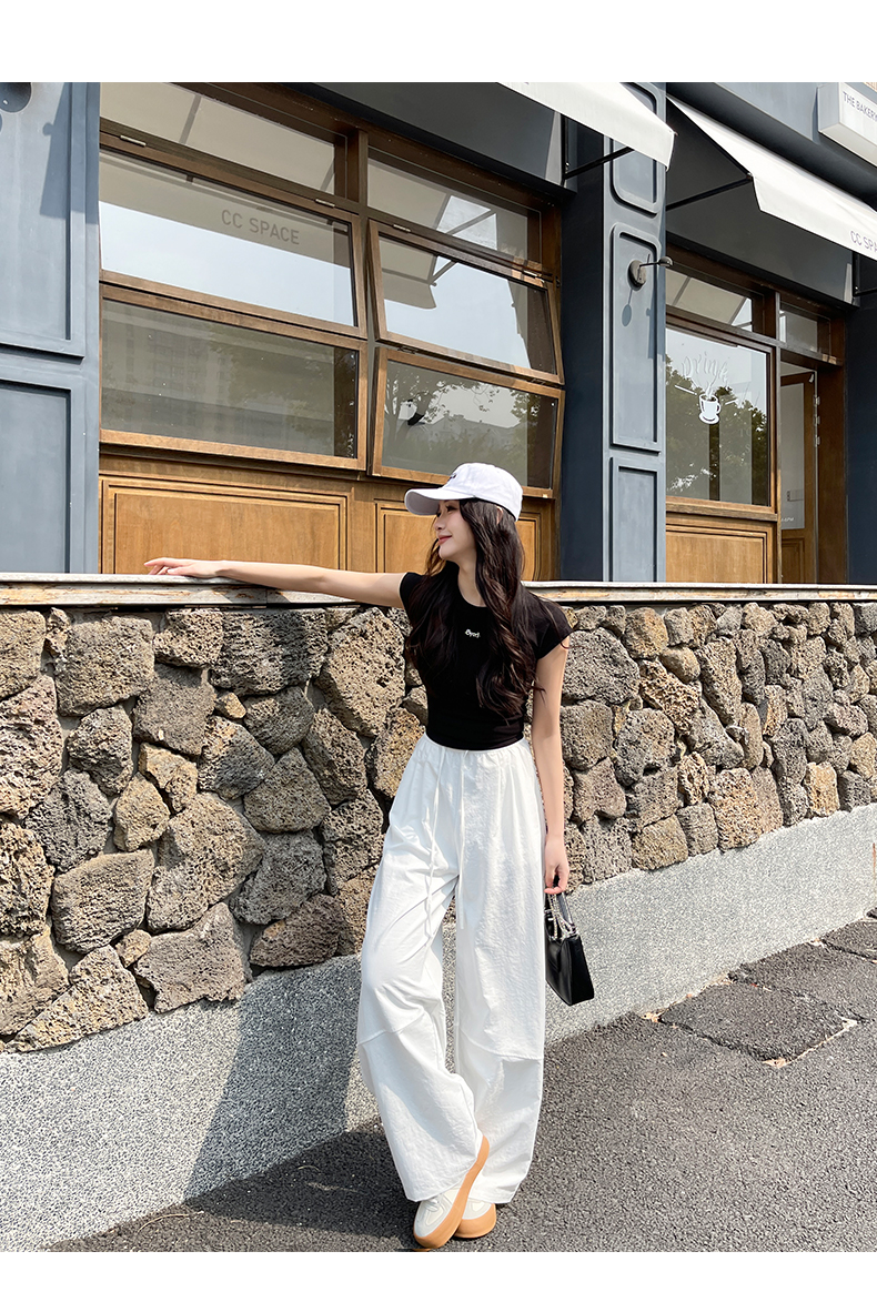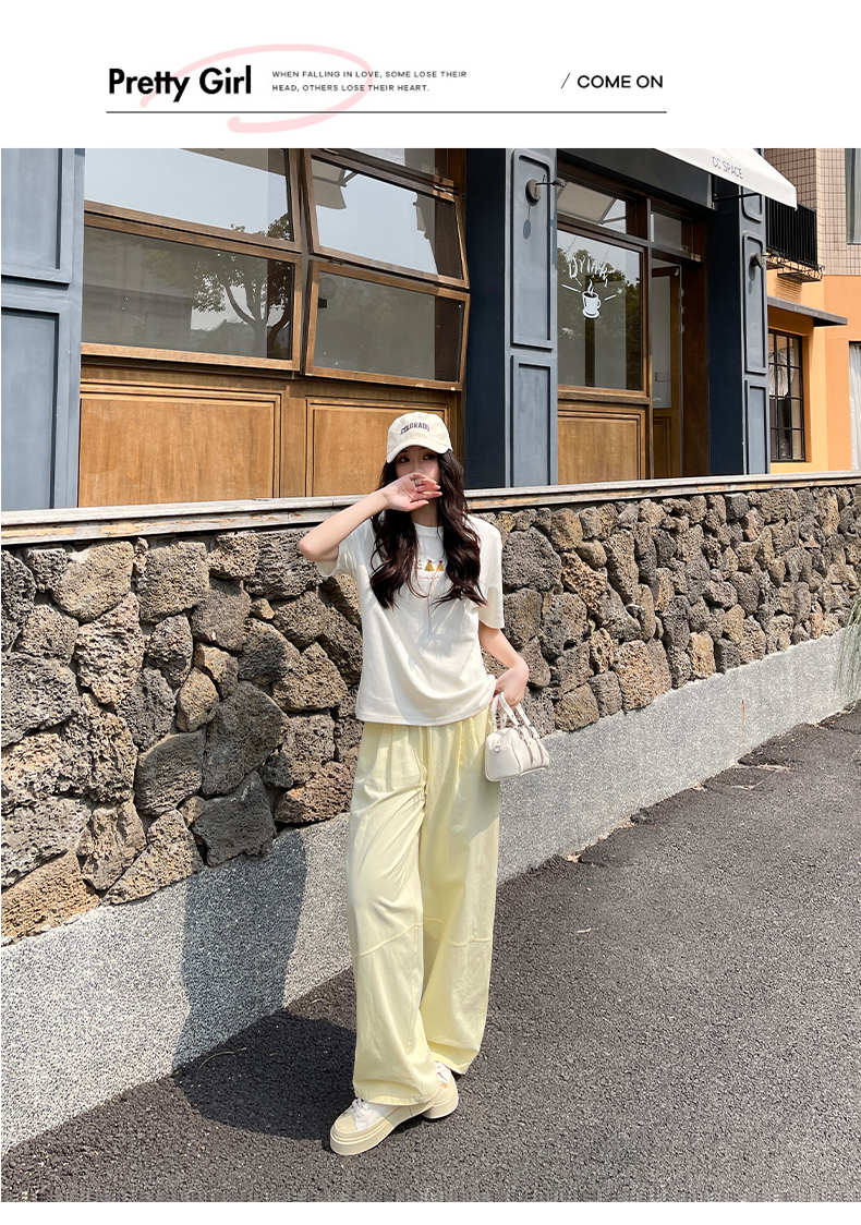 【YW】无忧购美式高腰宽松慵懒休闲薄款拼接窄版阔腿速干运动裤LB-41026(截单后7天发货)