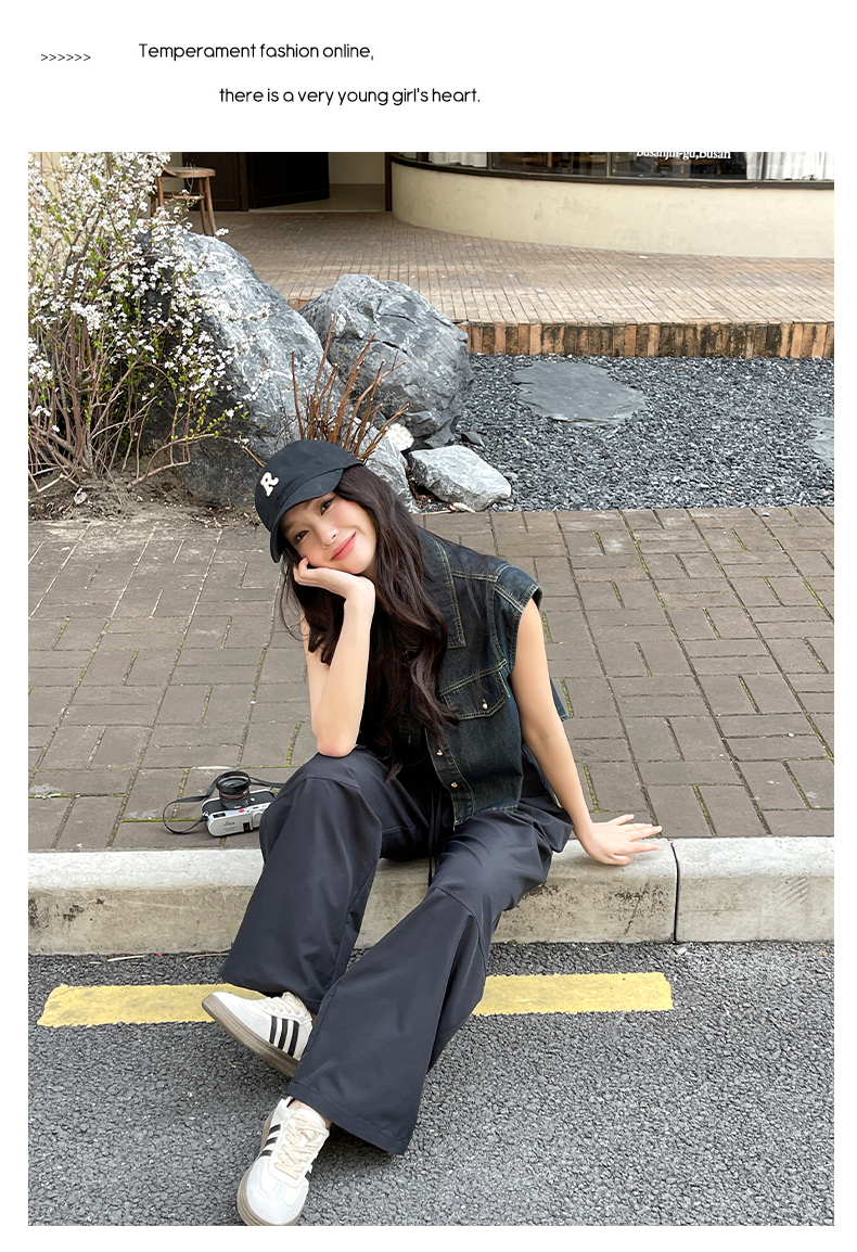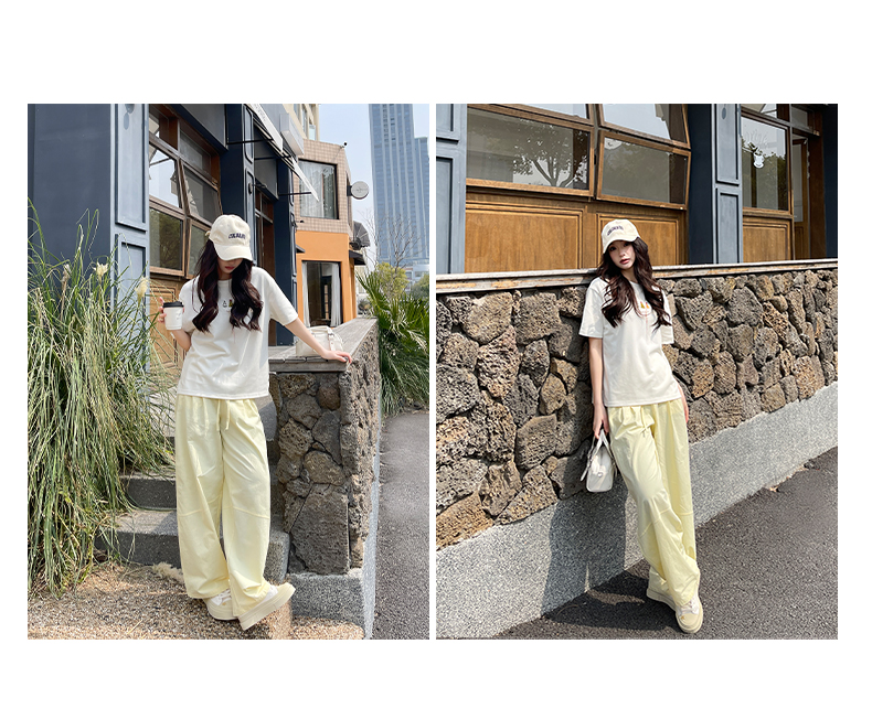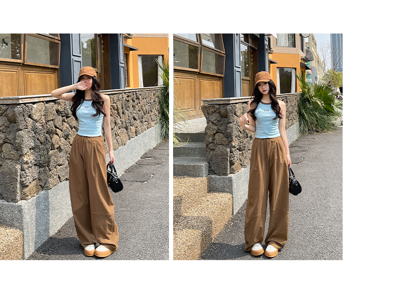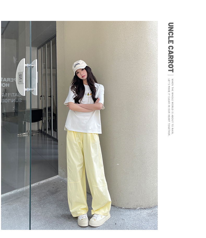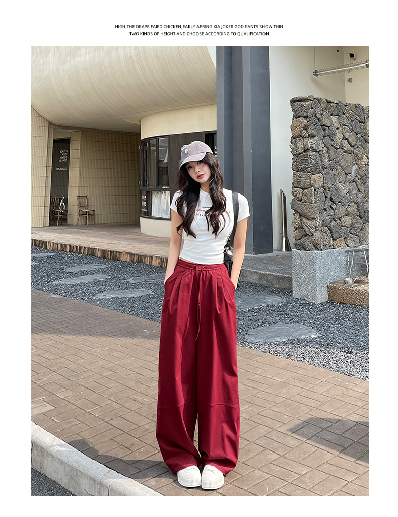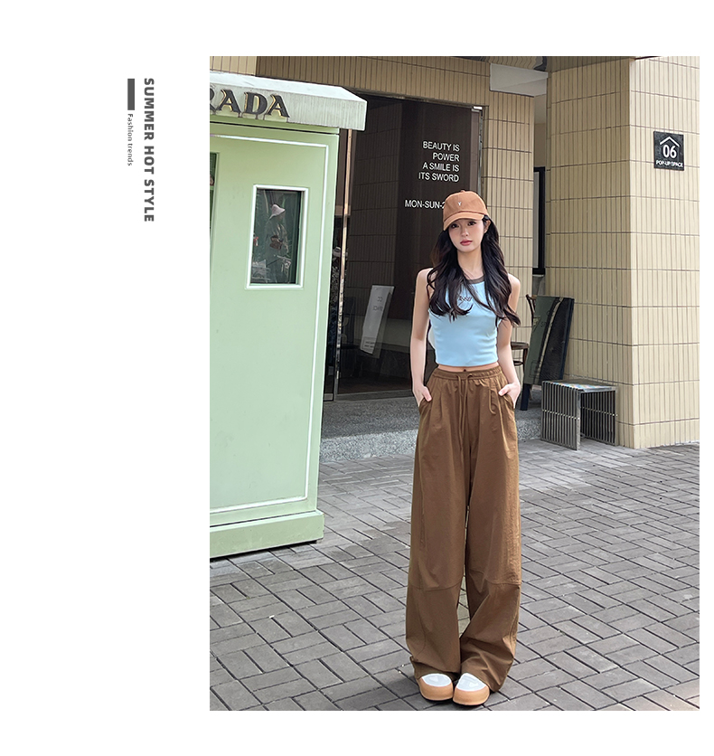 【YW】无忧购美式高腰宽松慵懒休闲薄款拼接窄版阔腿速干运动裤LB-41026(截单后7天发货)