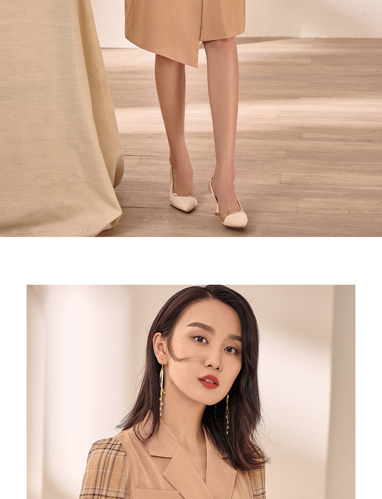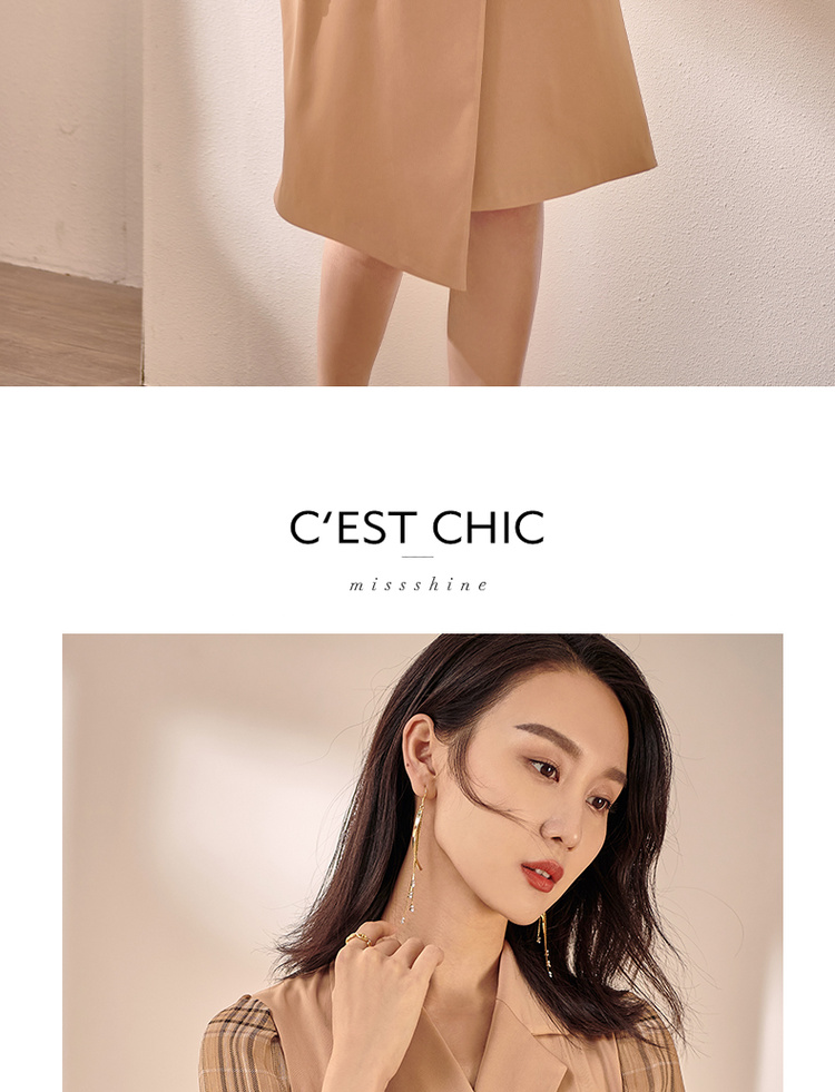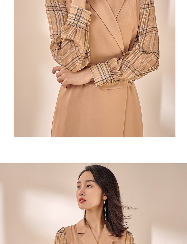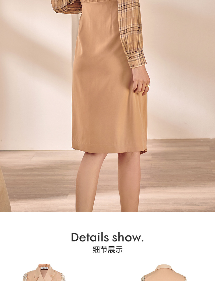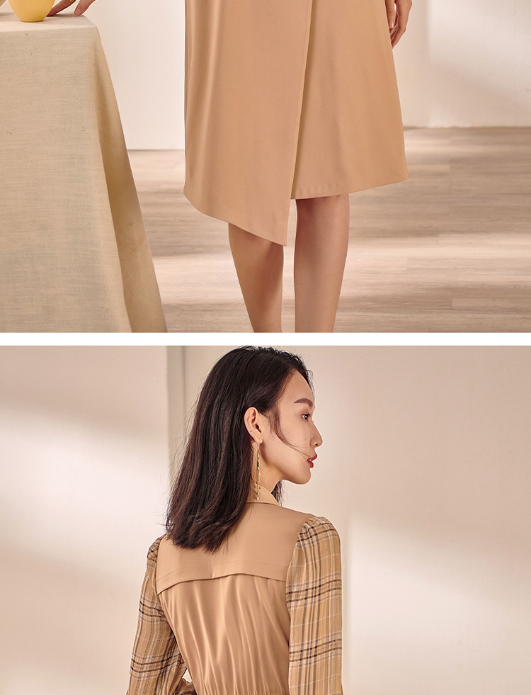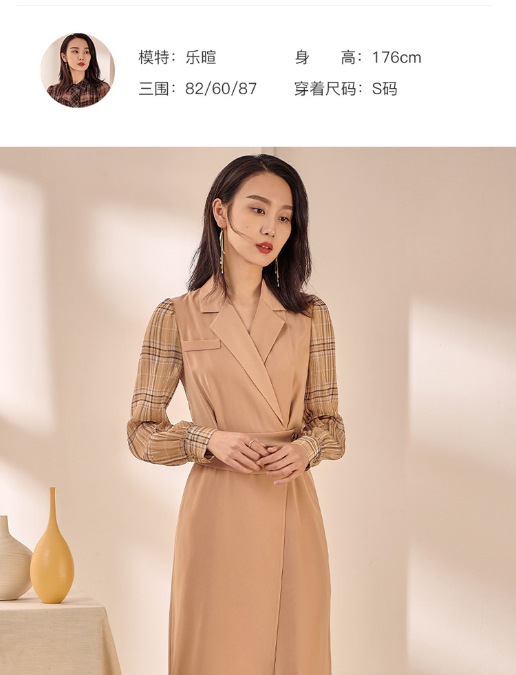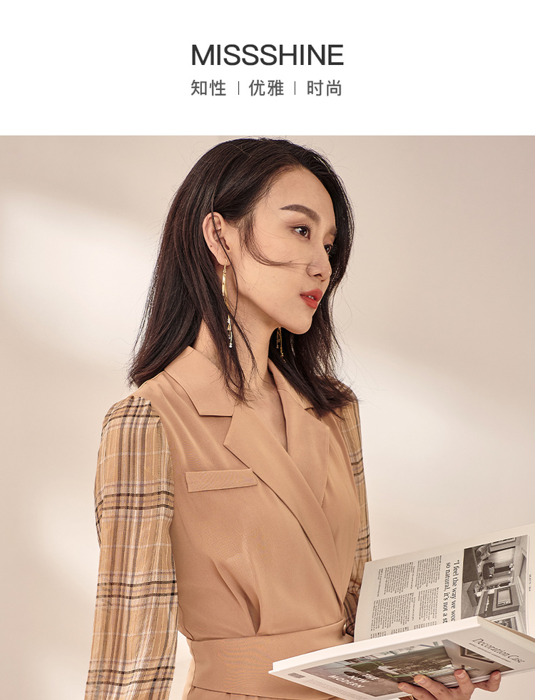 剩M 米思阳春装新款知性气质拼接格子修身显瘦不对称连衣裙0568