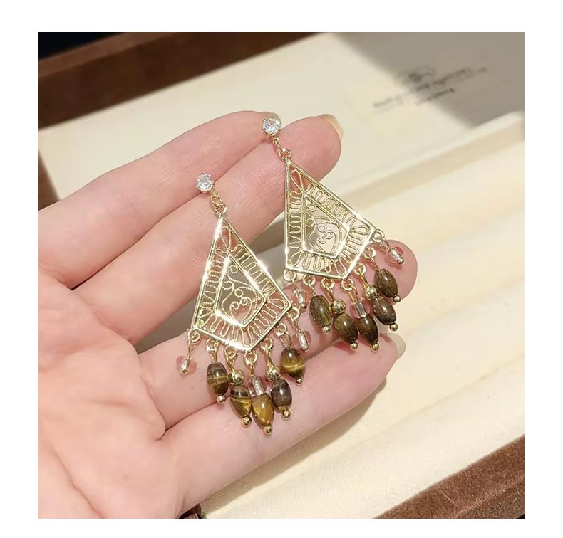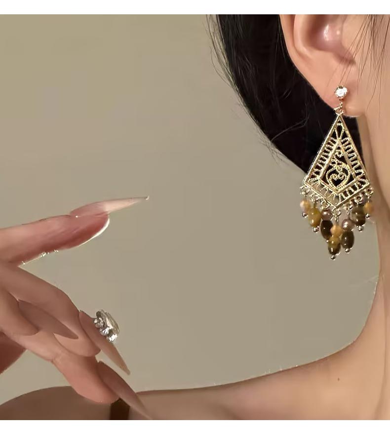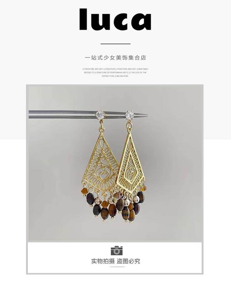 波西米亚复古风虎眼石流苏耳饰-纪念日百货门店同款168046424