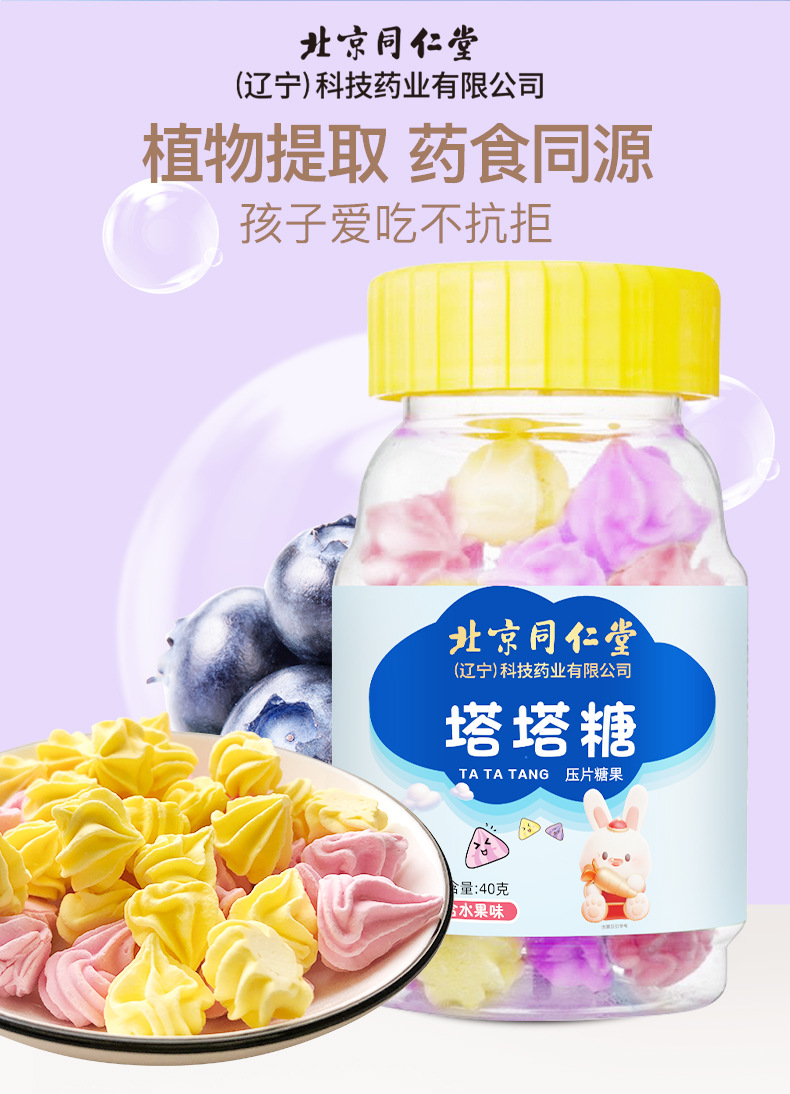 【让宝宝吃饭更香!童年塔塔糖】植物草本混合口味 40g魅格格儿童压片糖果 包含3种口味