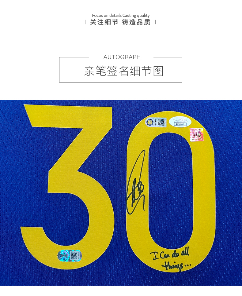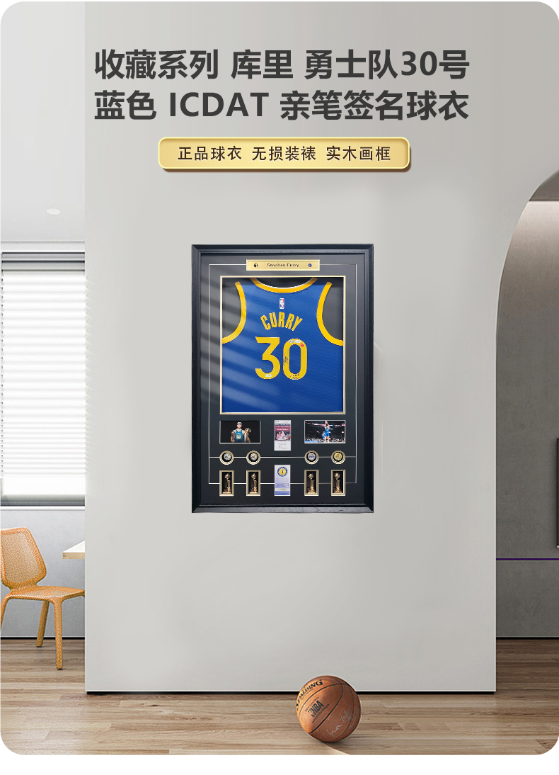 收藏系列 库里 勇士队30号蓝色 ICDAT 亲笔签名球衣