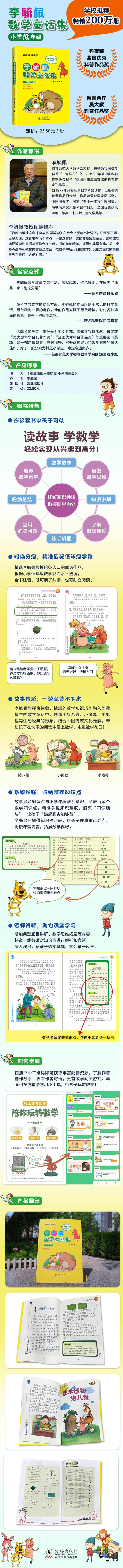 《读故事学数学》系列图书和以往出版的李毓佩教授的数学故事集、童话集均不同。除了“读故事”的功能之外,本系列图书特别附加了“学数学”的功能。这套图书针对小学不同学段读者的数学知识掌握情况及思维能力水平,从李毓佩教授*脍炙人口的数学故事创作中精选出分别适合小学低、中、高年级阅读的内容,并结合数学学习中的典型题目和解法进行数学知识点的归纳总结,再配上全彩色插图(低年级还注有拼音),汇编成全套三册图书。本书是其中的分册《李敏佩数学童话集》。