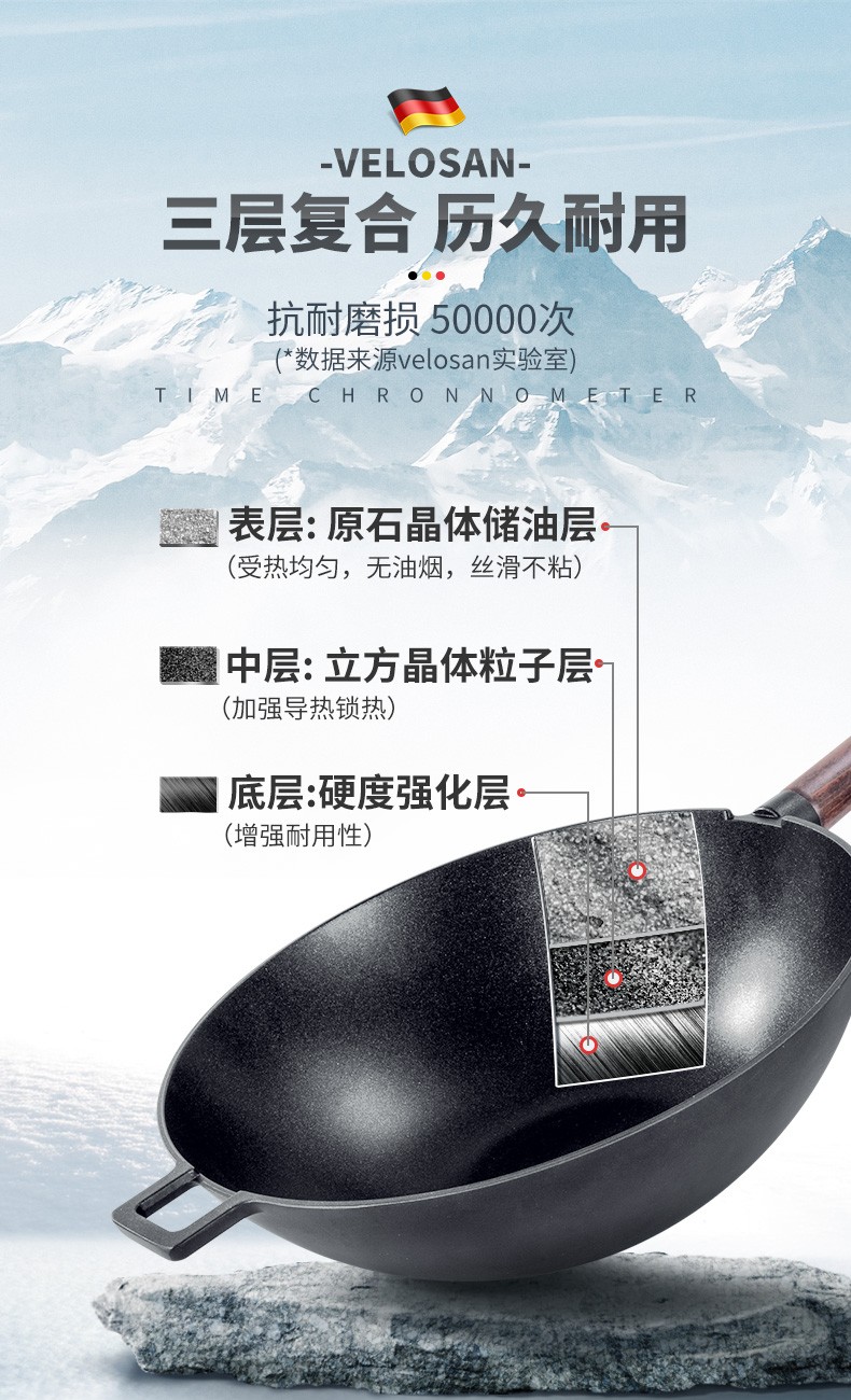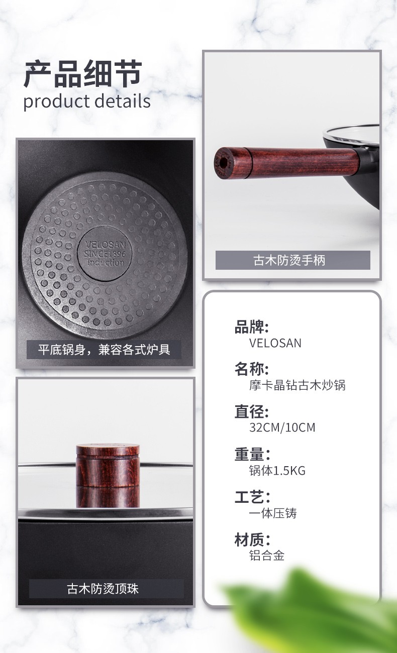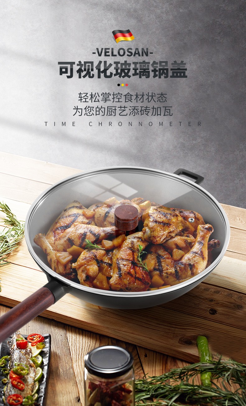 VELOSAN/韦诺森 摩卡晶钻古木炒锅送煎锅套餐JPY带授权招加盟代理