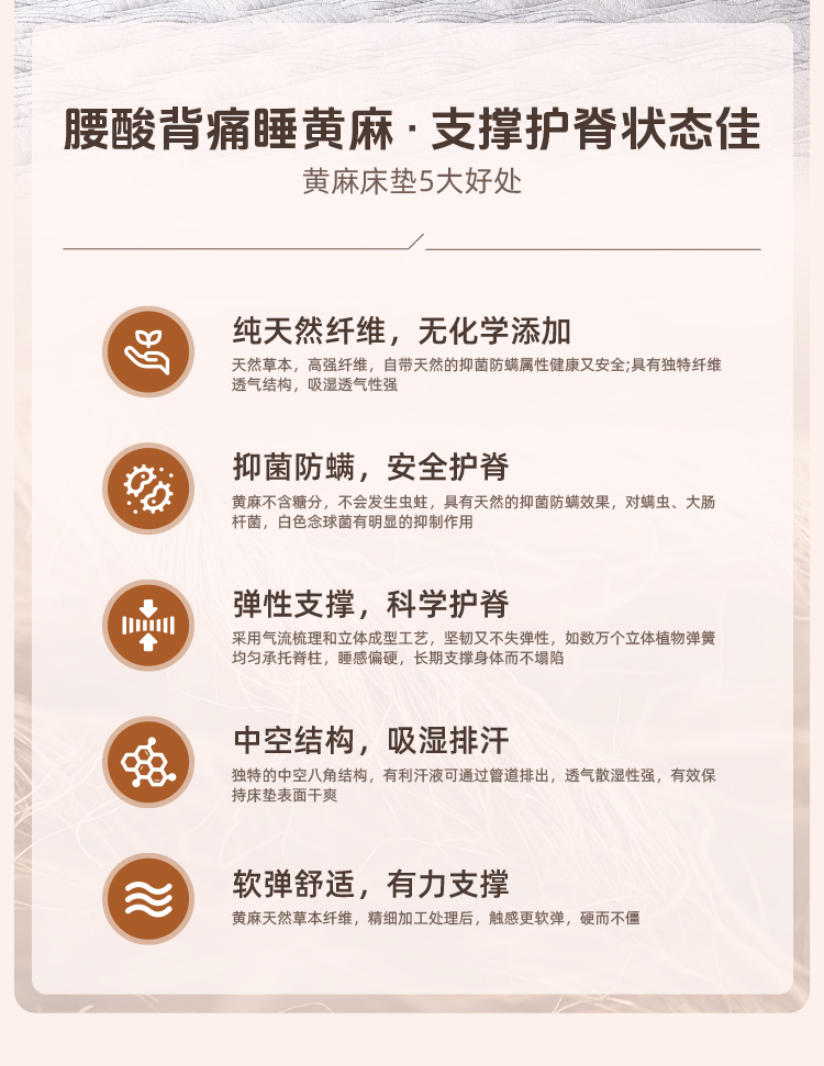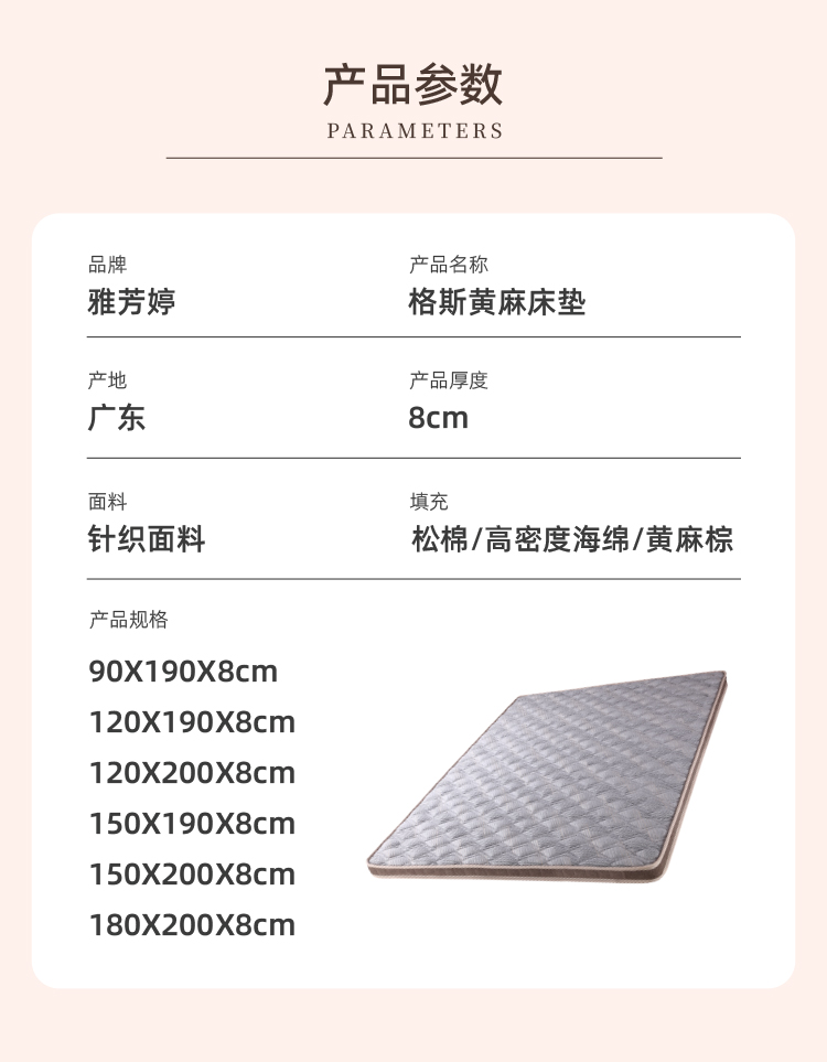 雅芳婷格斯黄麻护脊床垫家用卧室抑菌防螨床垫租房专用榻榻米床垫