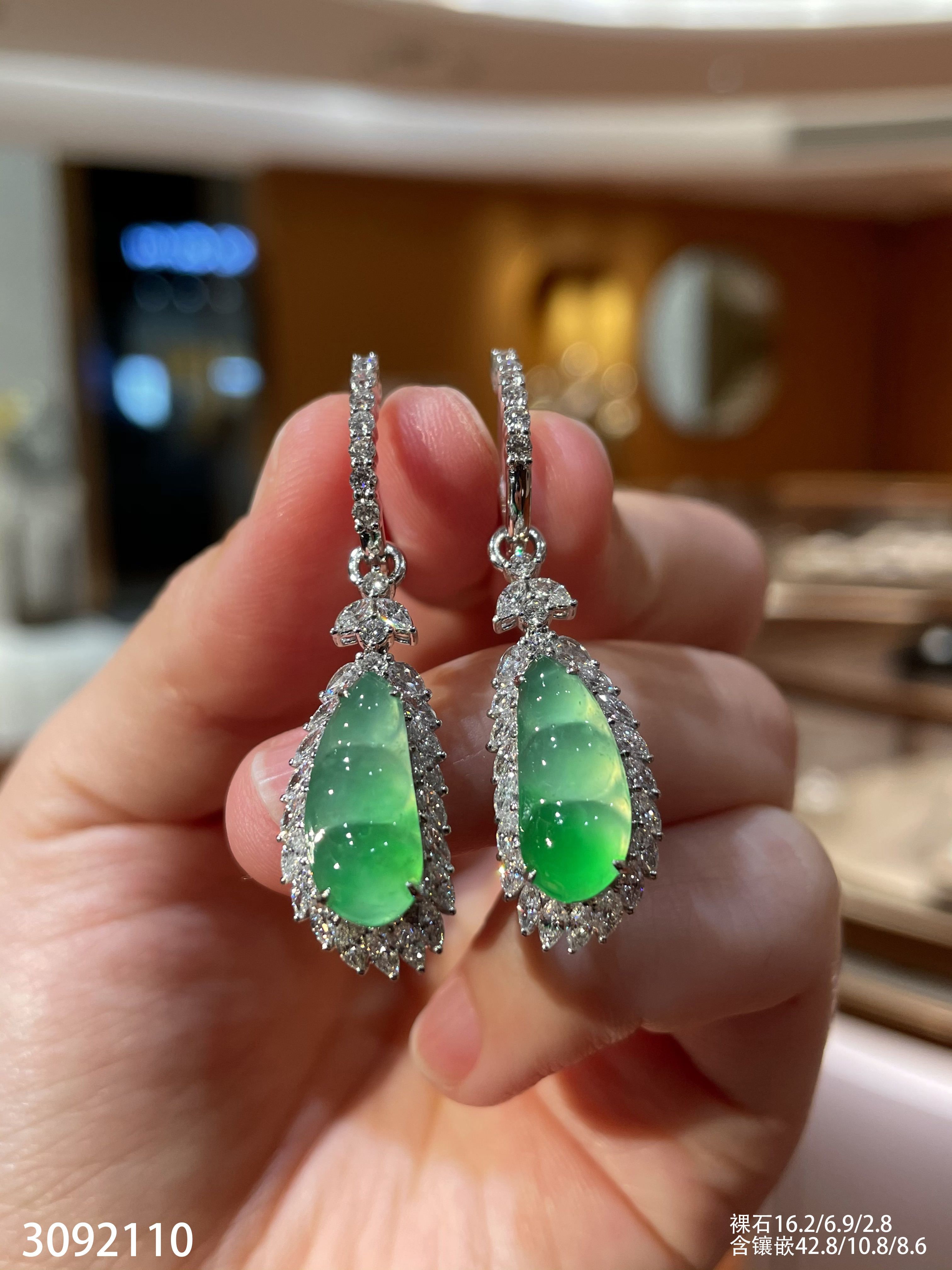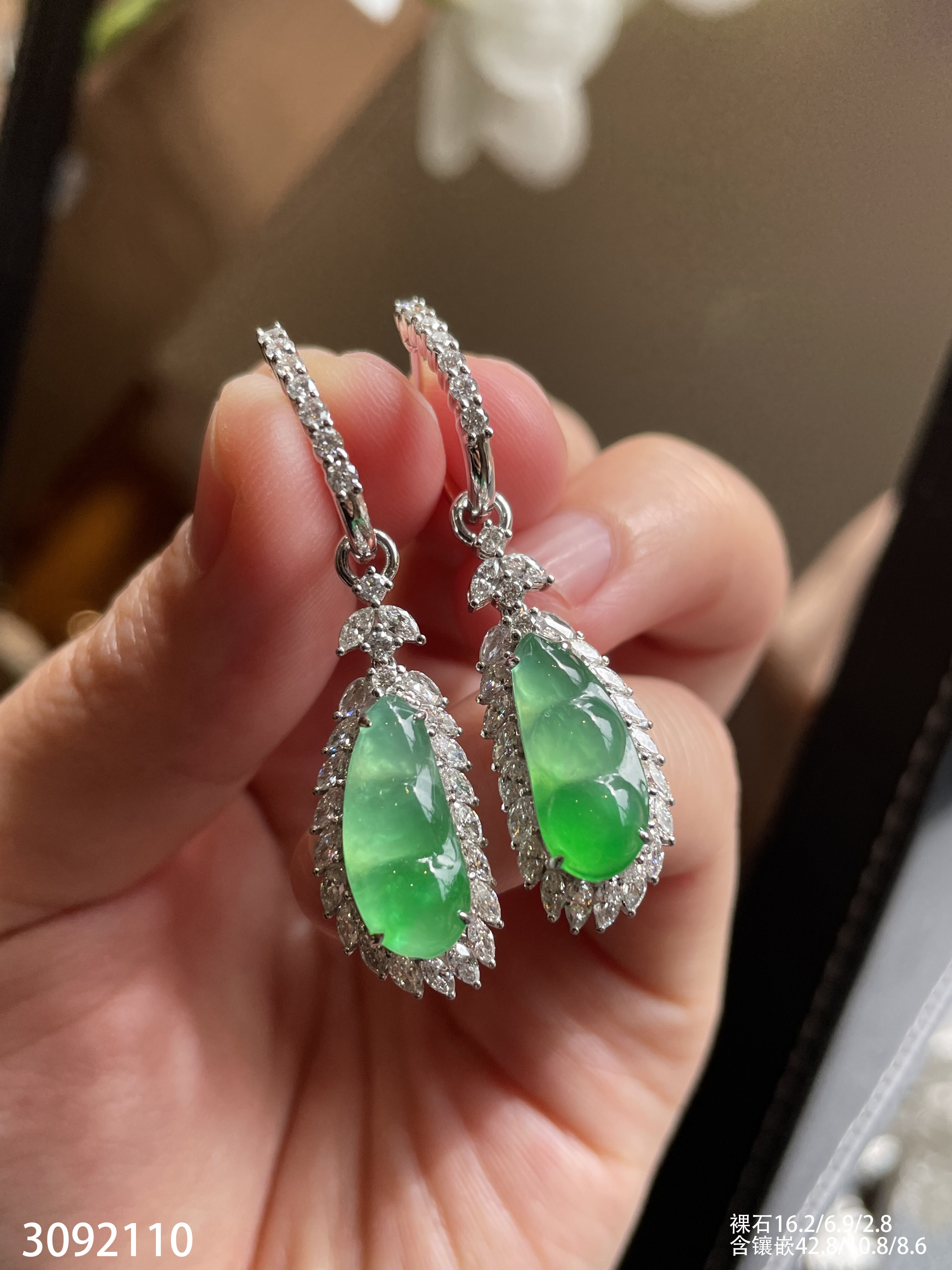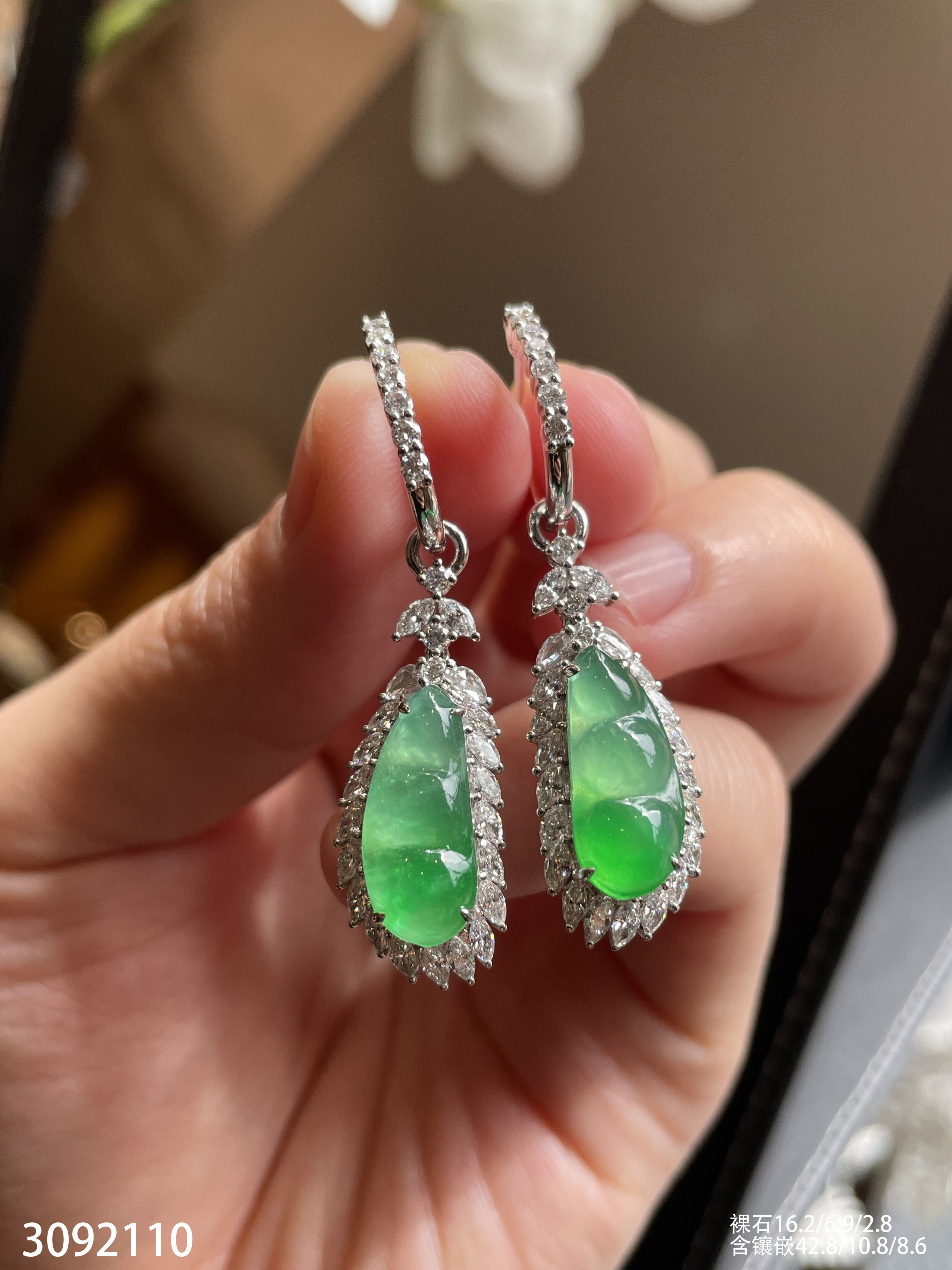 3092110,玻璃飘翠福豆耳坠。具体价格微信咨询