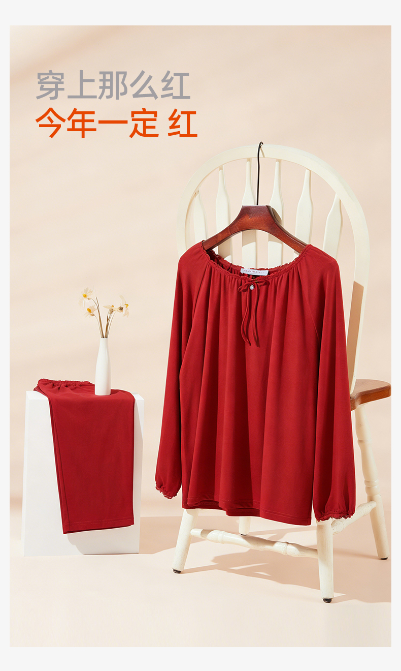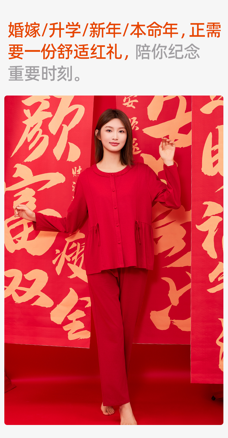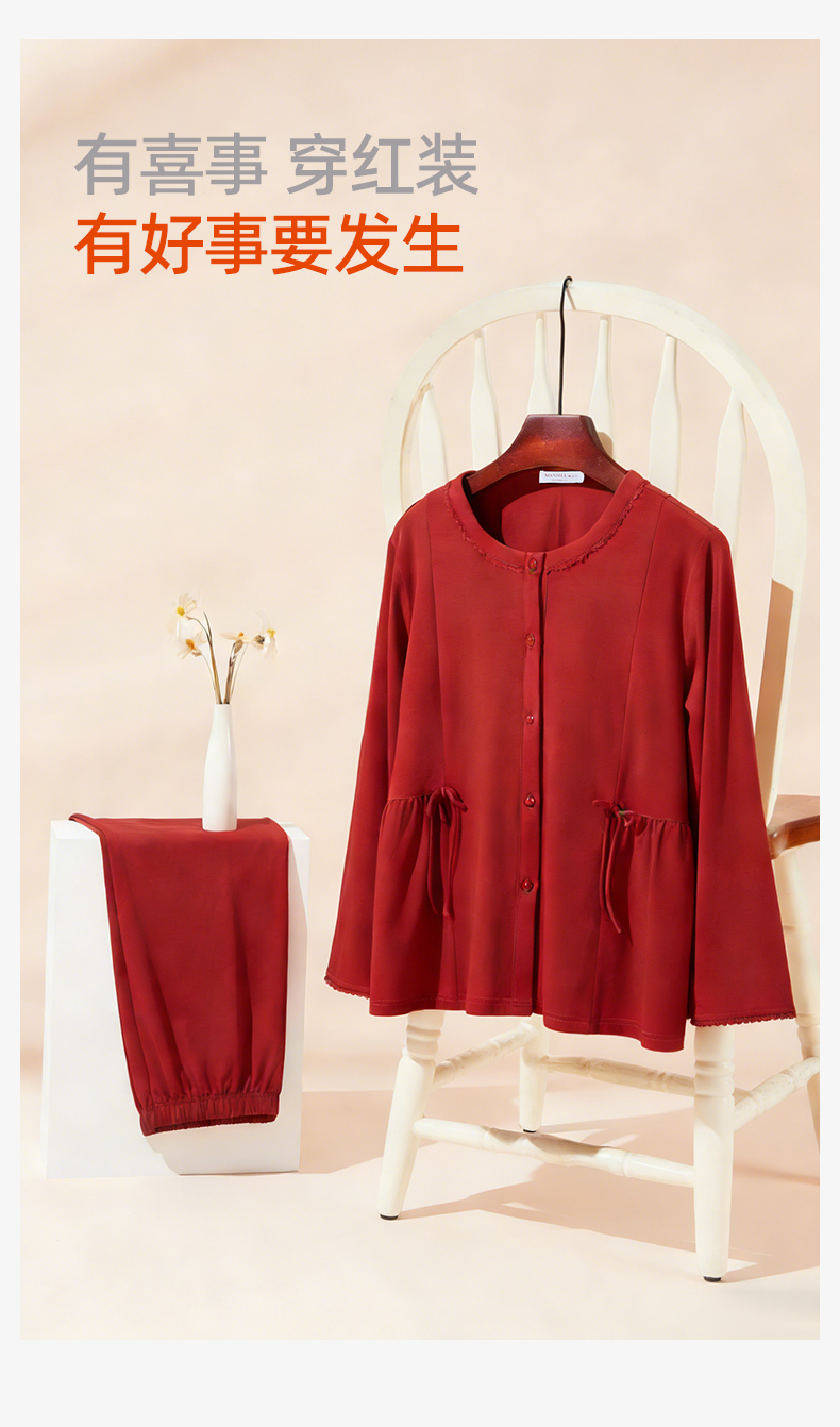 【商场同款】熳洁儿 红品女士家居服圆领套装拉架棉结婚必备喜庆红25703235/25703236