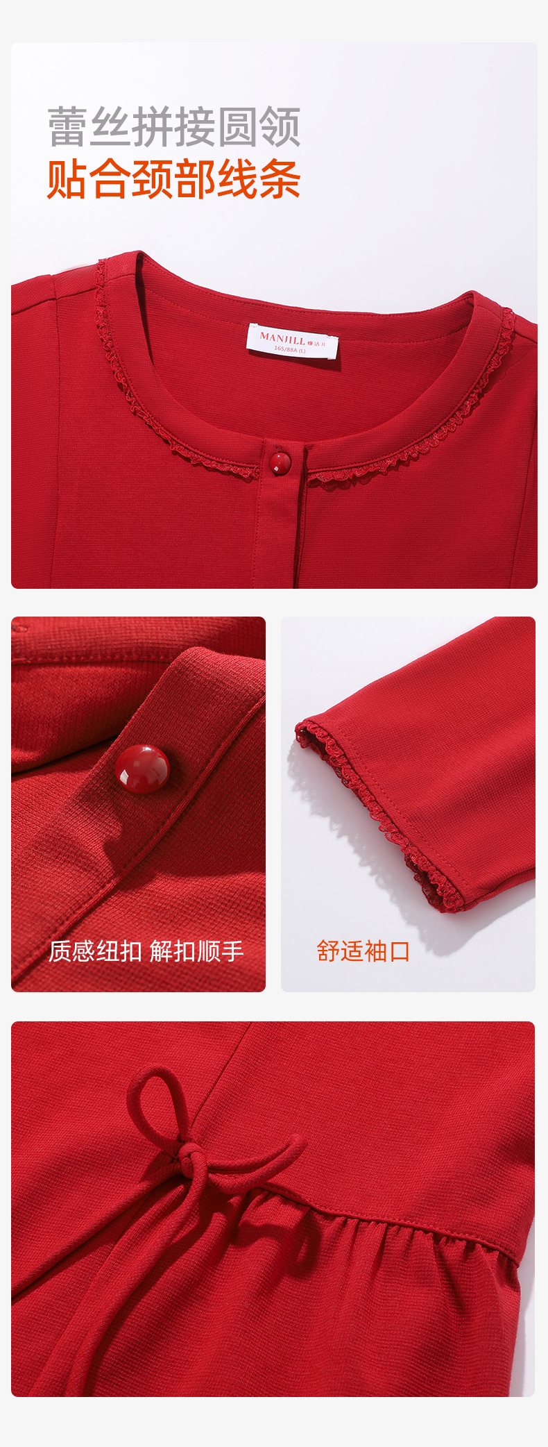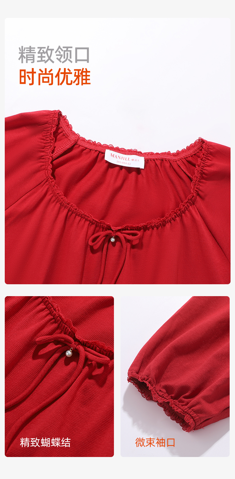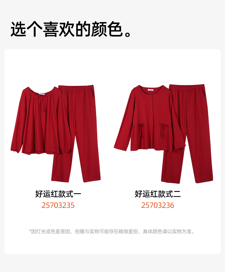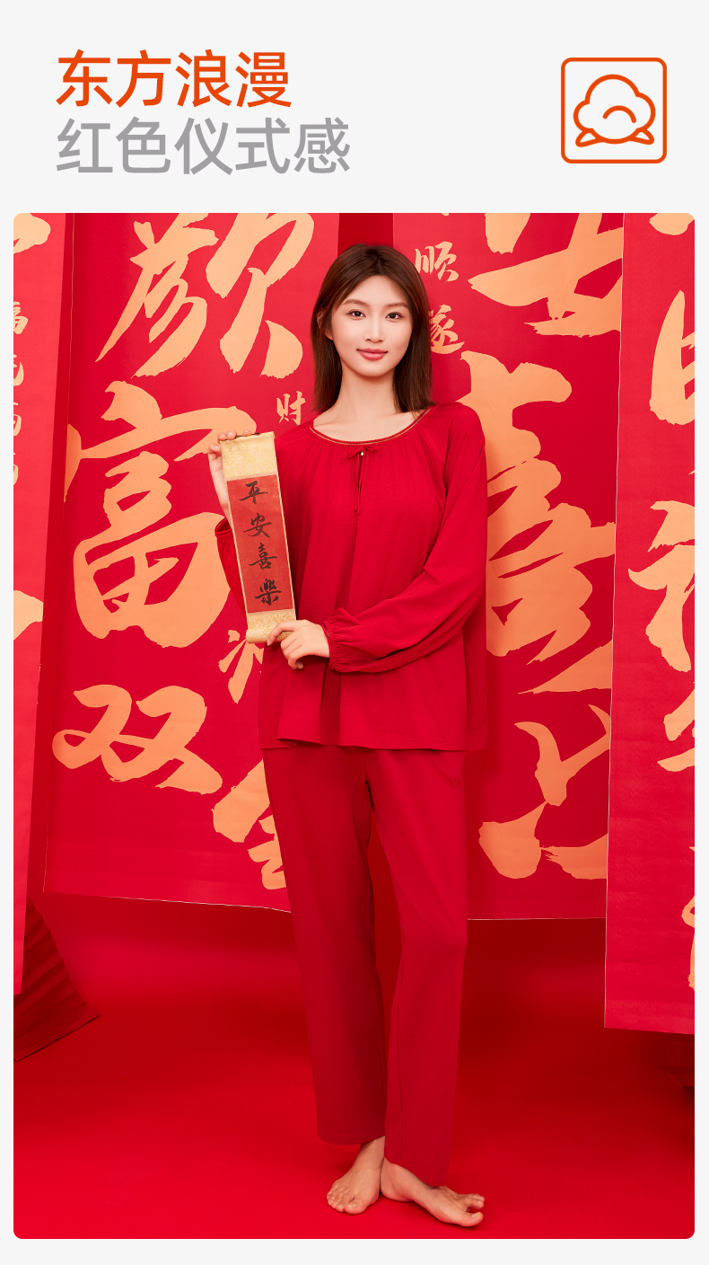 【商场同款】熳洁儿 红品女士家居服圆领套装拉架棉结婚必备喜庆红25703235/25703236