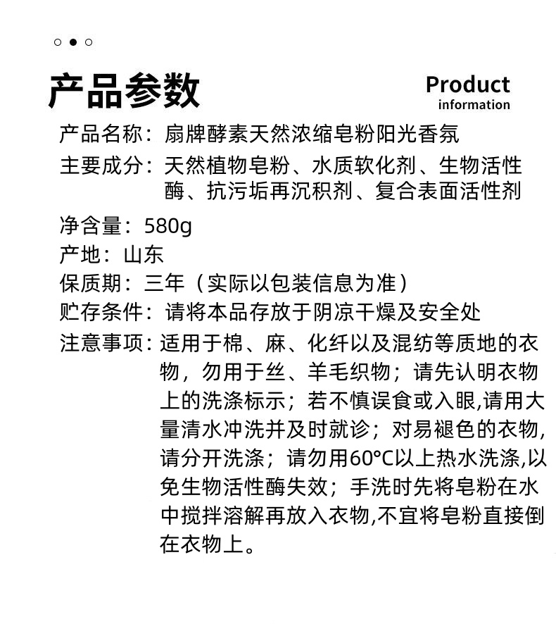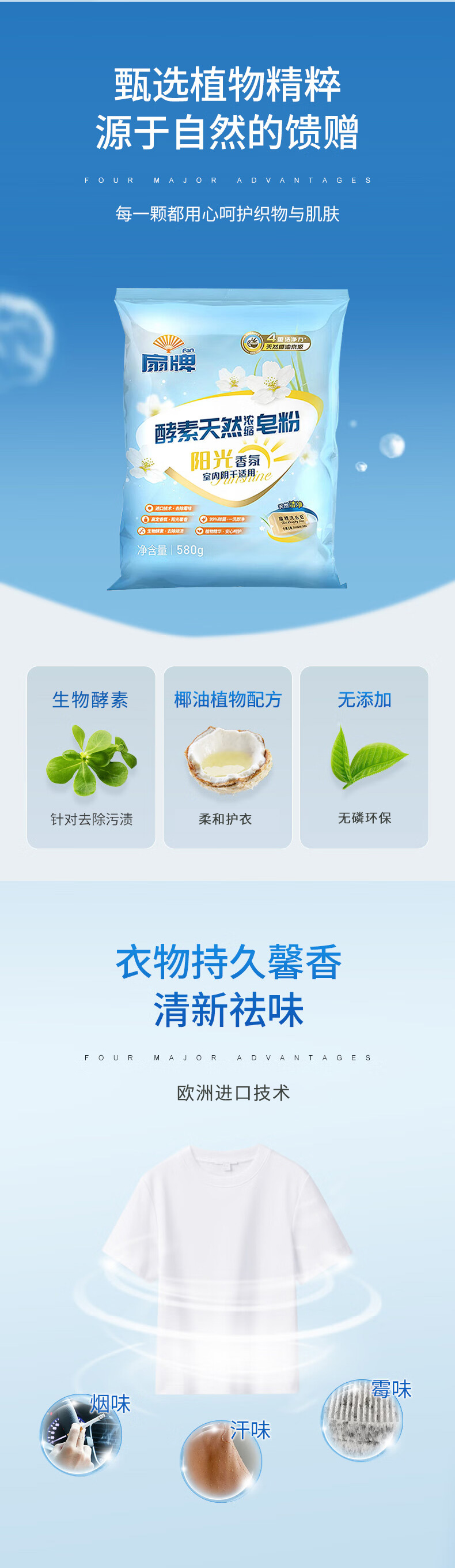 扇牌酵素天然浓缩皂粉阳光香氛580g