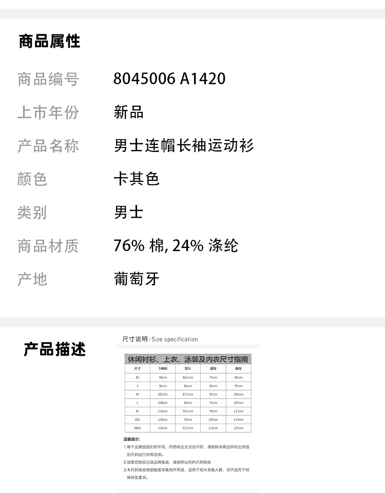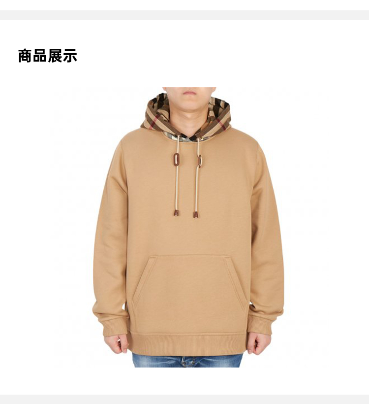 【二】BURBERRY 博柏利 格纹棉质混纺连帽衫 男士卫衣 卡其色 8045006 A1420
