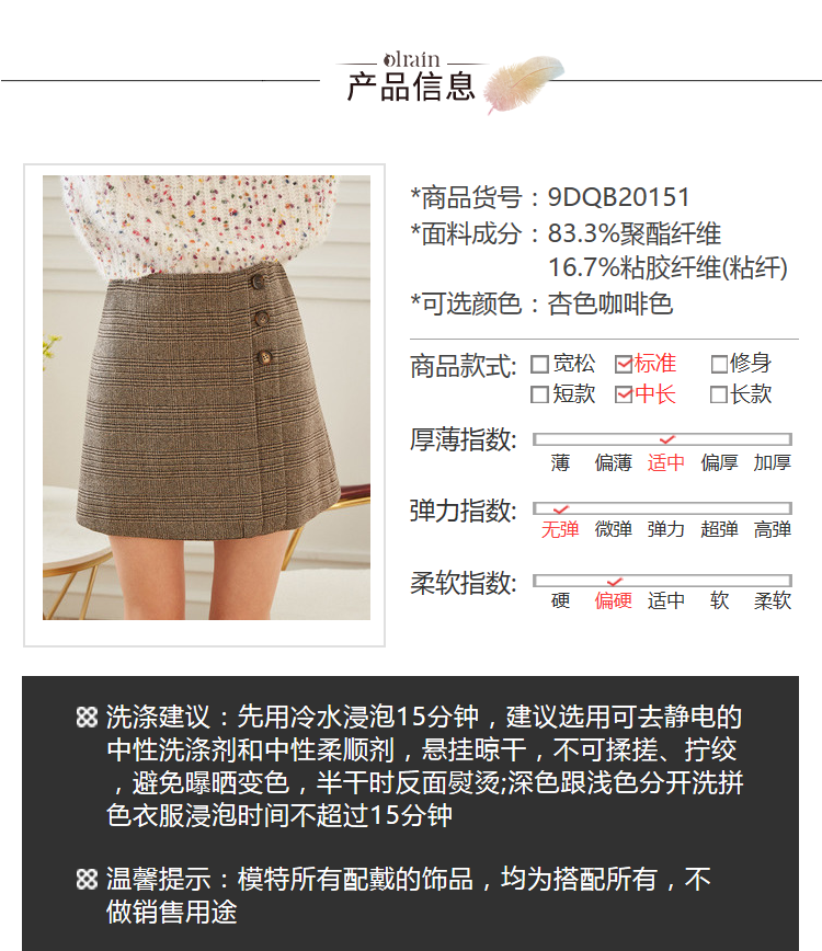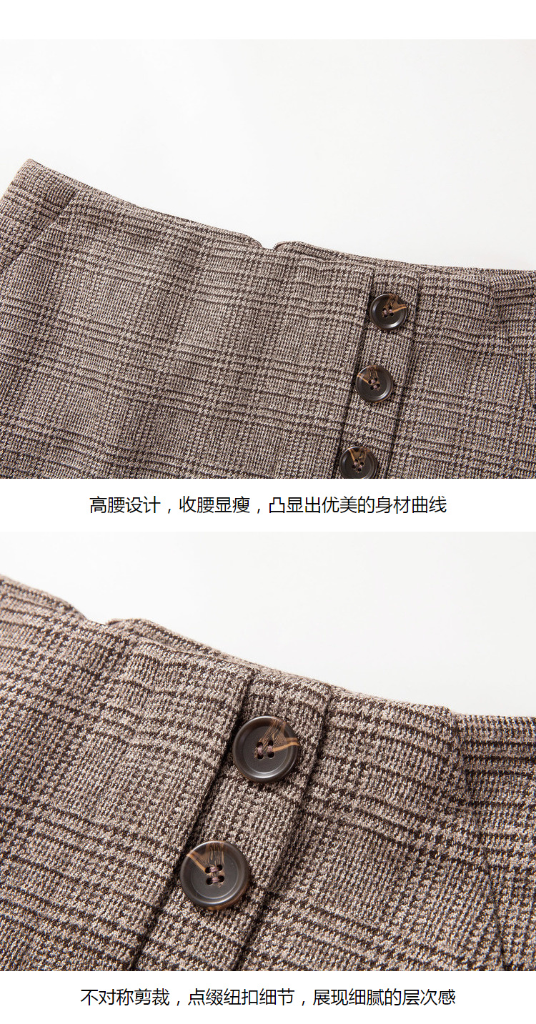 欧芮儿2019秋装新品不规则格子半身裙女高腰显瘦短裙A字包臀裙