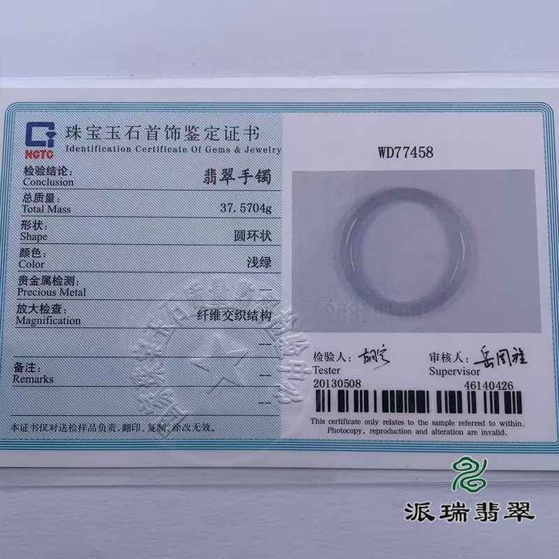 派瑞翡翠 翡翠手镯 糯种 浅绿