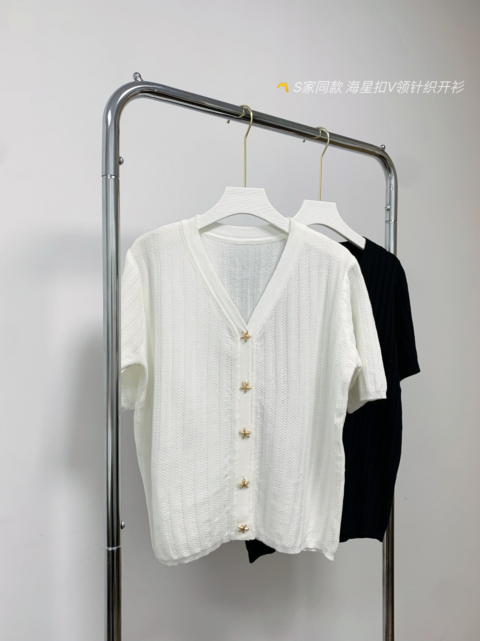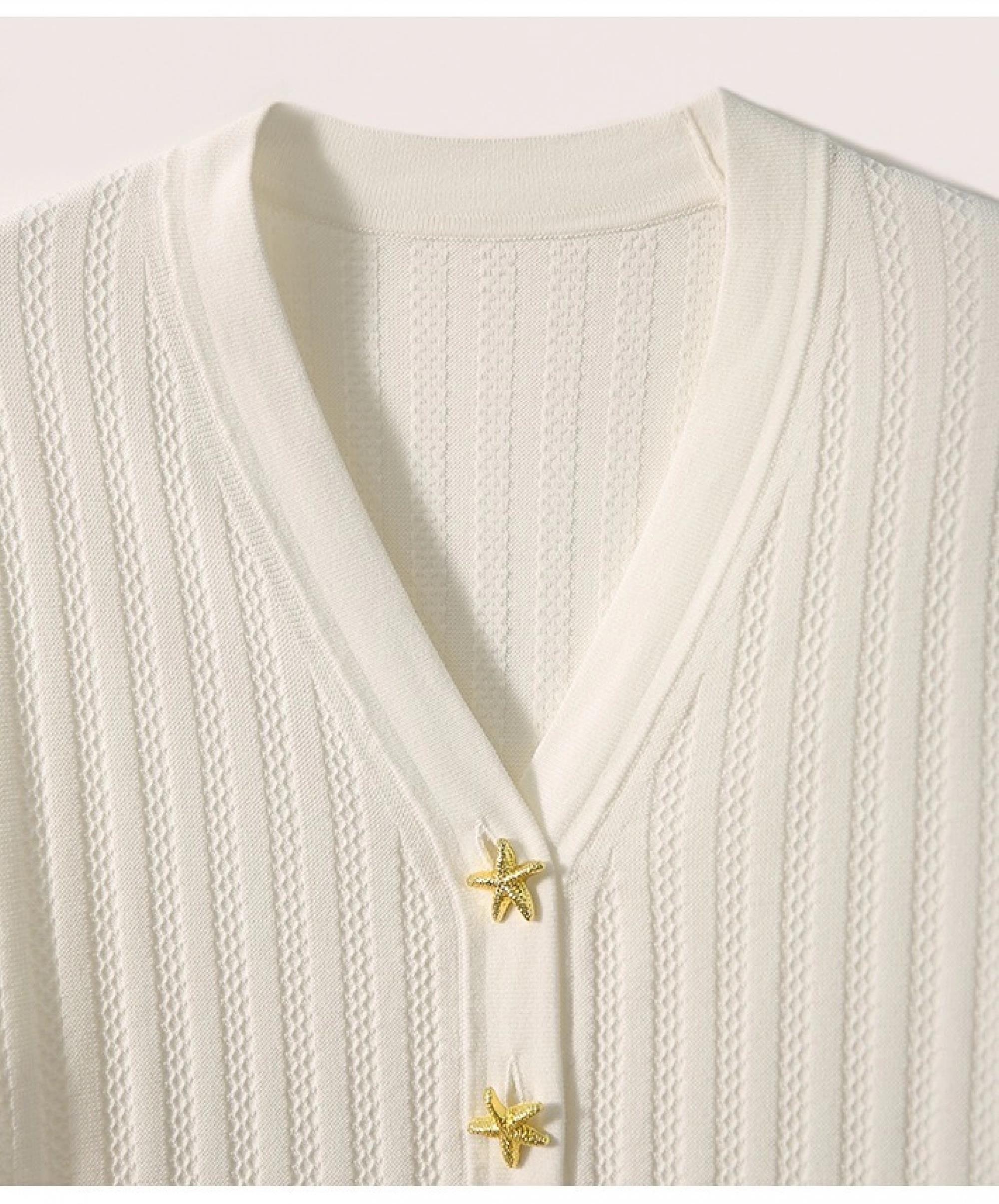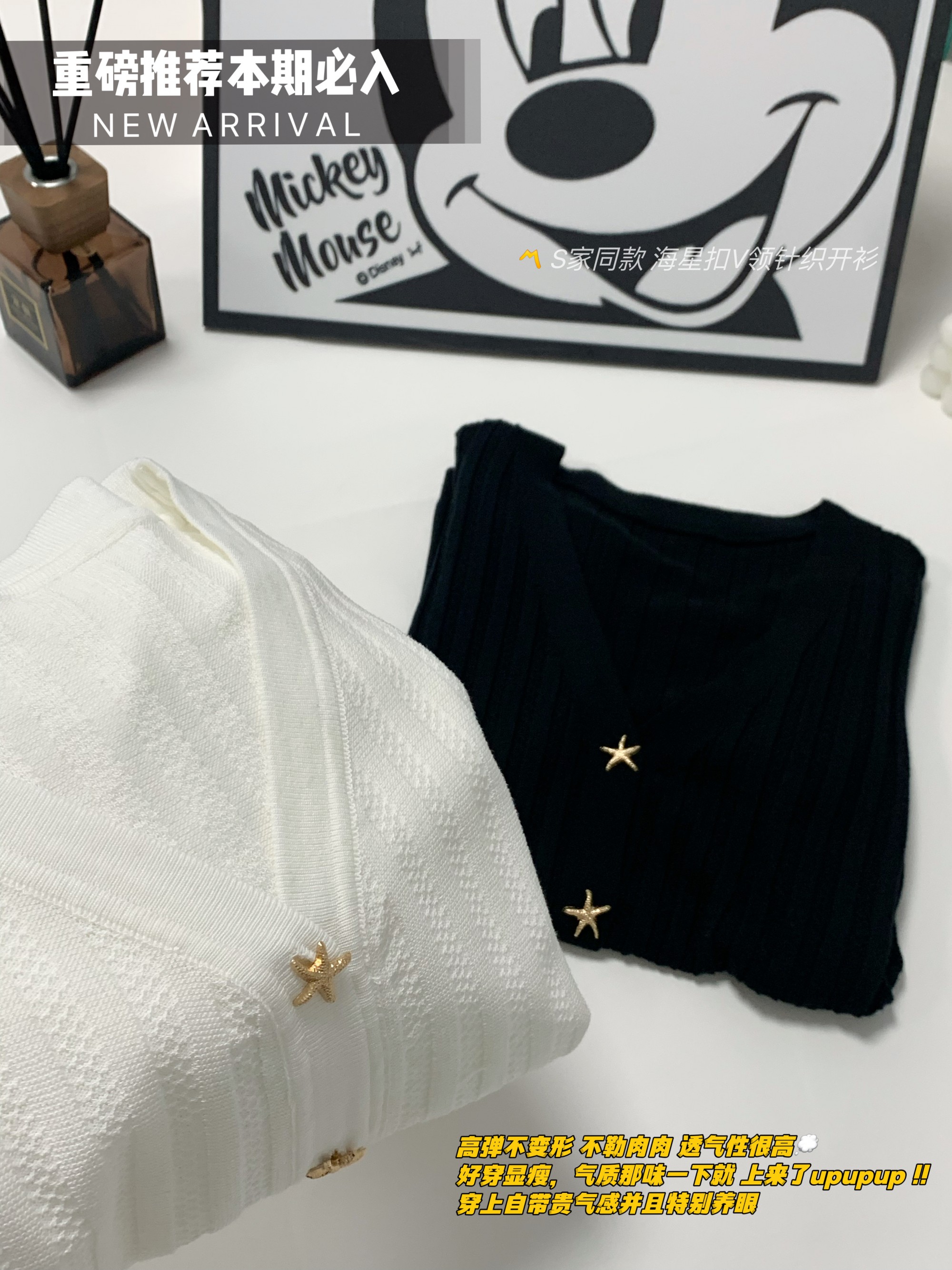 【法式海星扣V领冰丝开衫】高弹不变形,不勒肉,透气性高,亲肤质地,柔软细腻,五角星独特设计,上身百搭