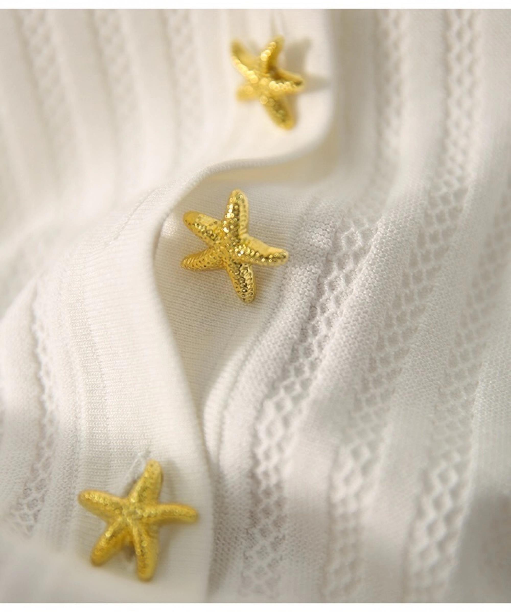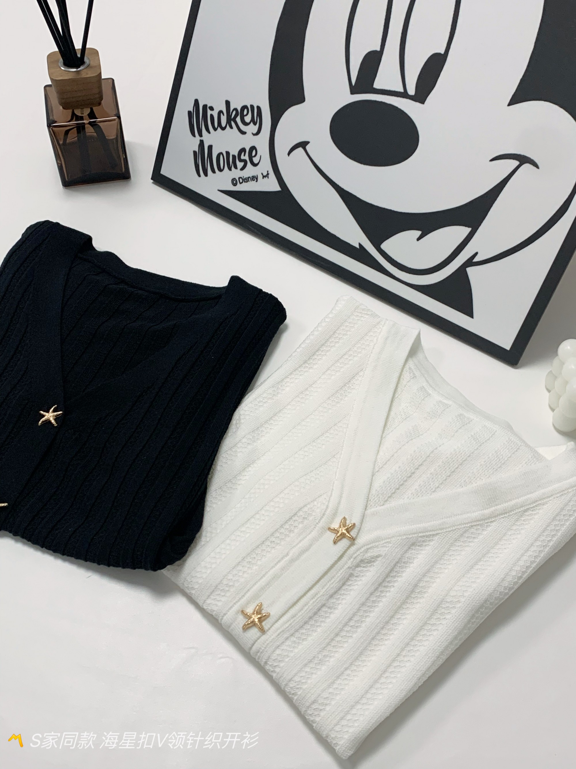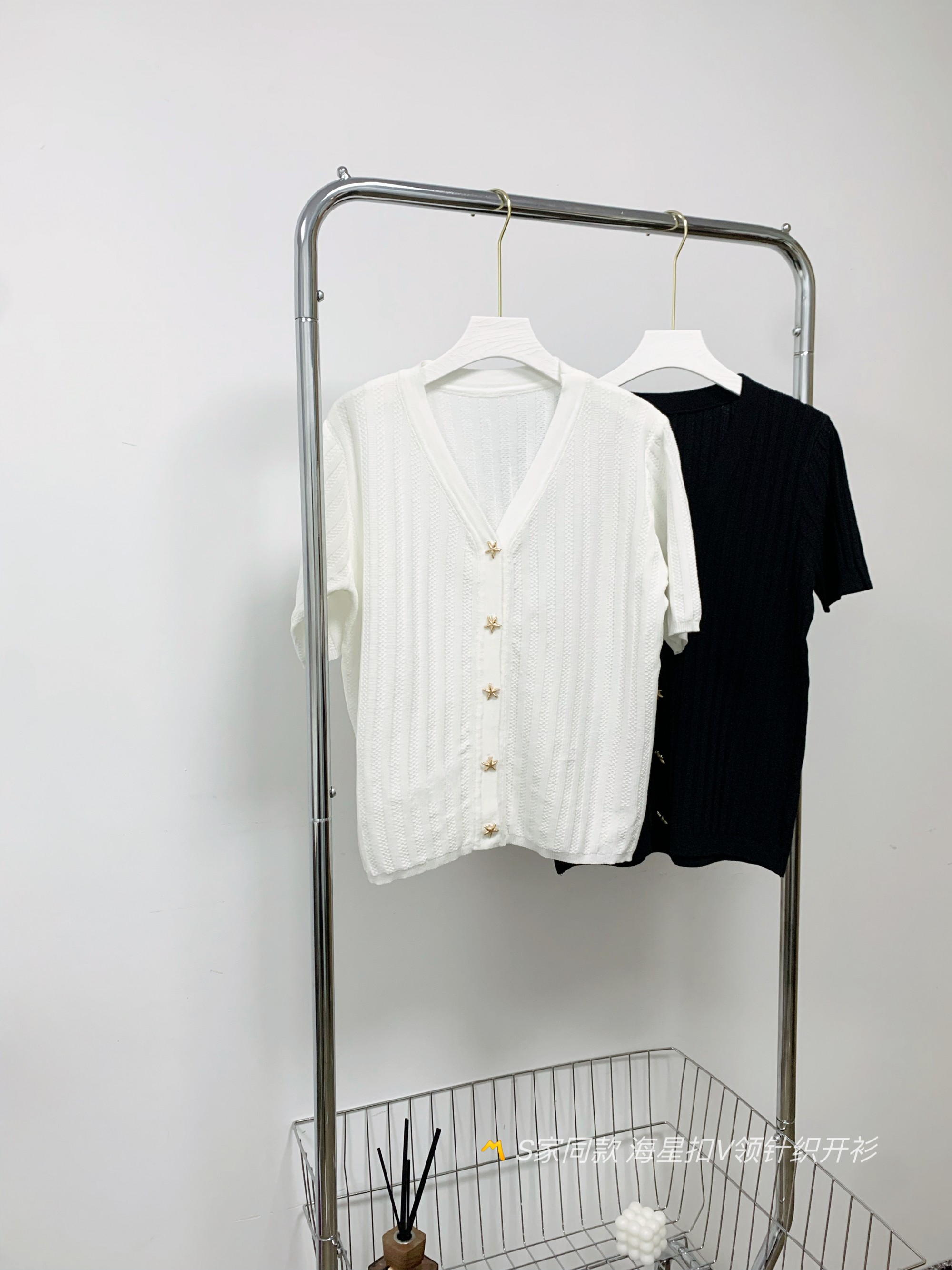 【法式海星扣V领冰丝开衫】高弹不变形,不勒肉,透气性高,亲肤质地,柔软细腻,五角星独特设计,上身百搭