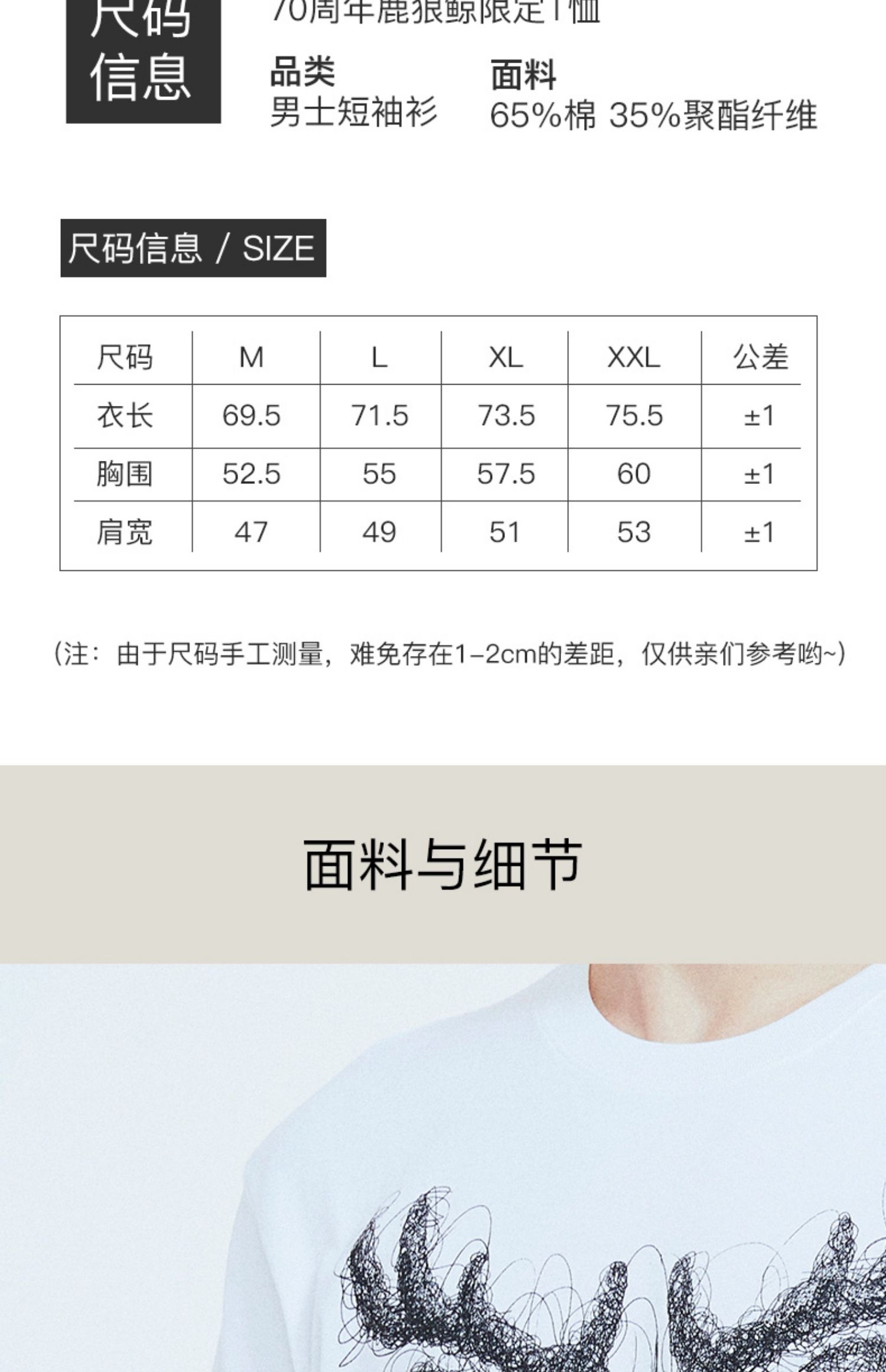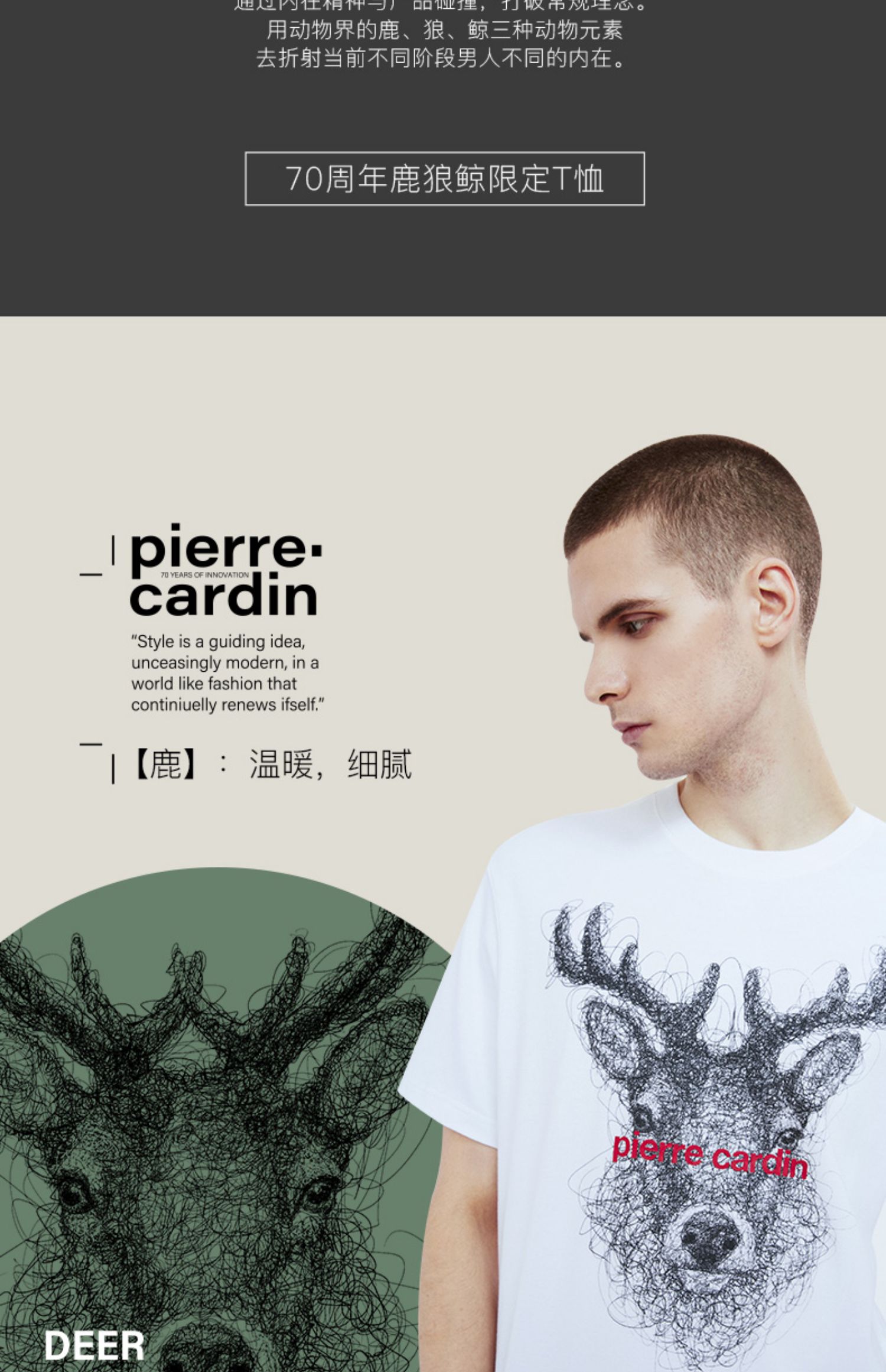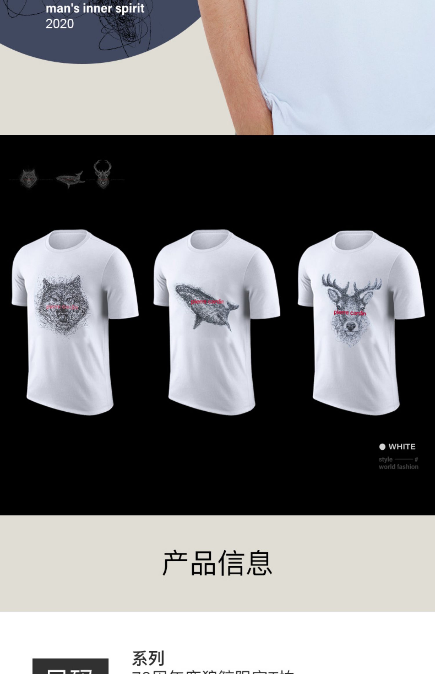 皮尔卡丹鹿狼鲸70周年限定男士T恤棉质短袖衫汗衫男WP752100