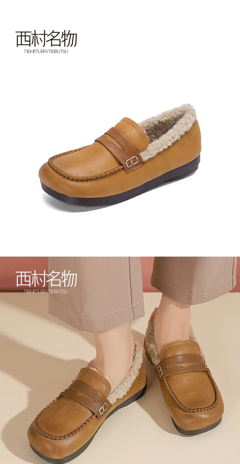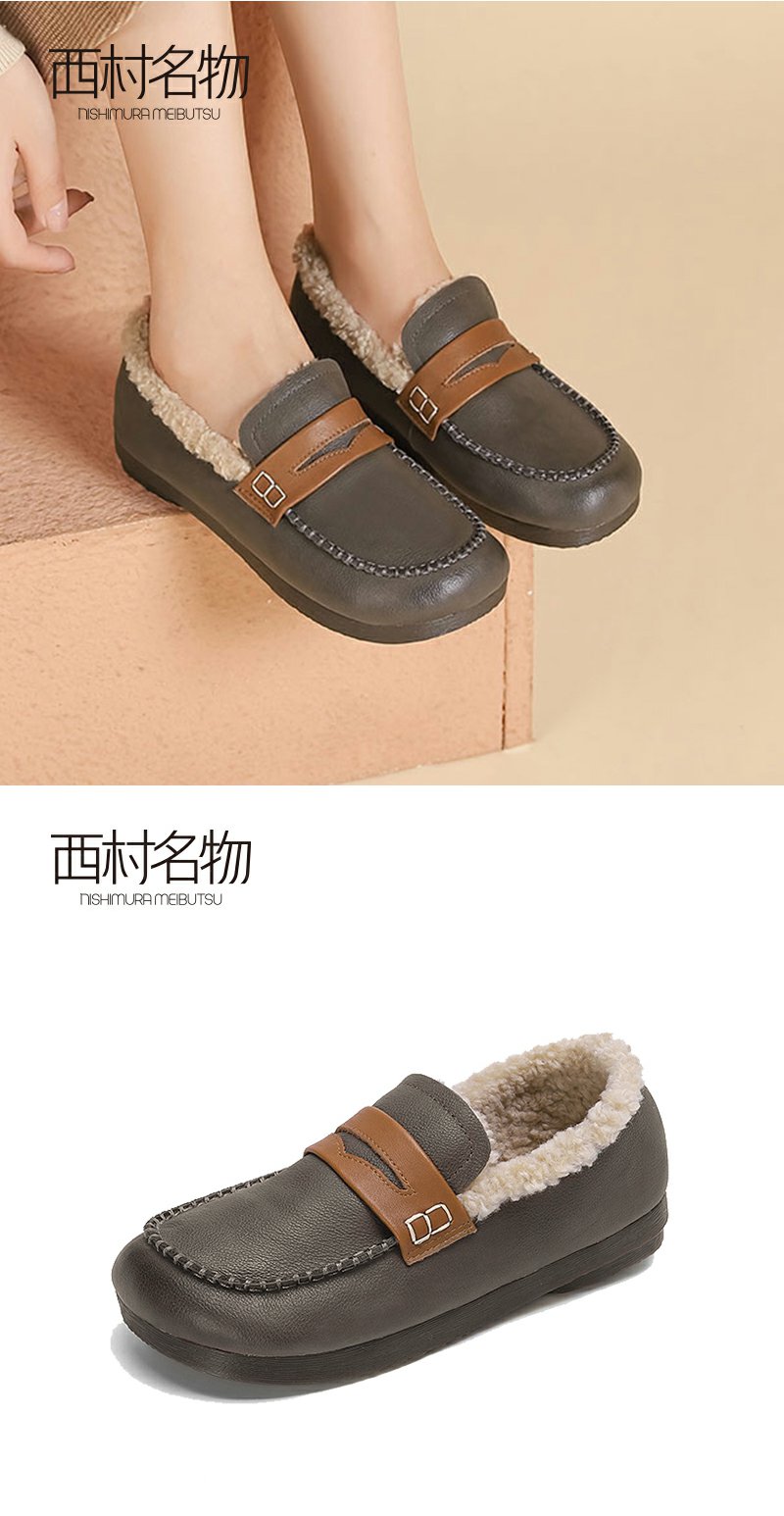 西村名物真皮软底妈妈棉鞋女秋冬季加绒保暖皮鞋防滑毛毛鞋37811