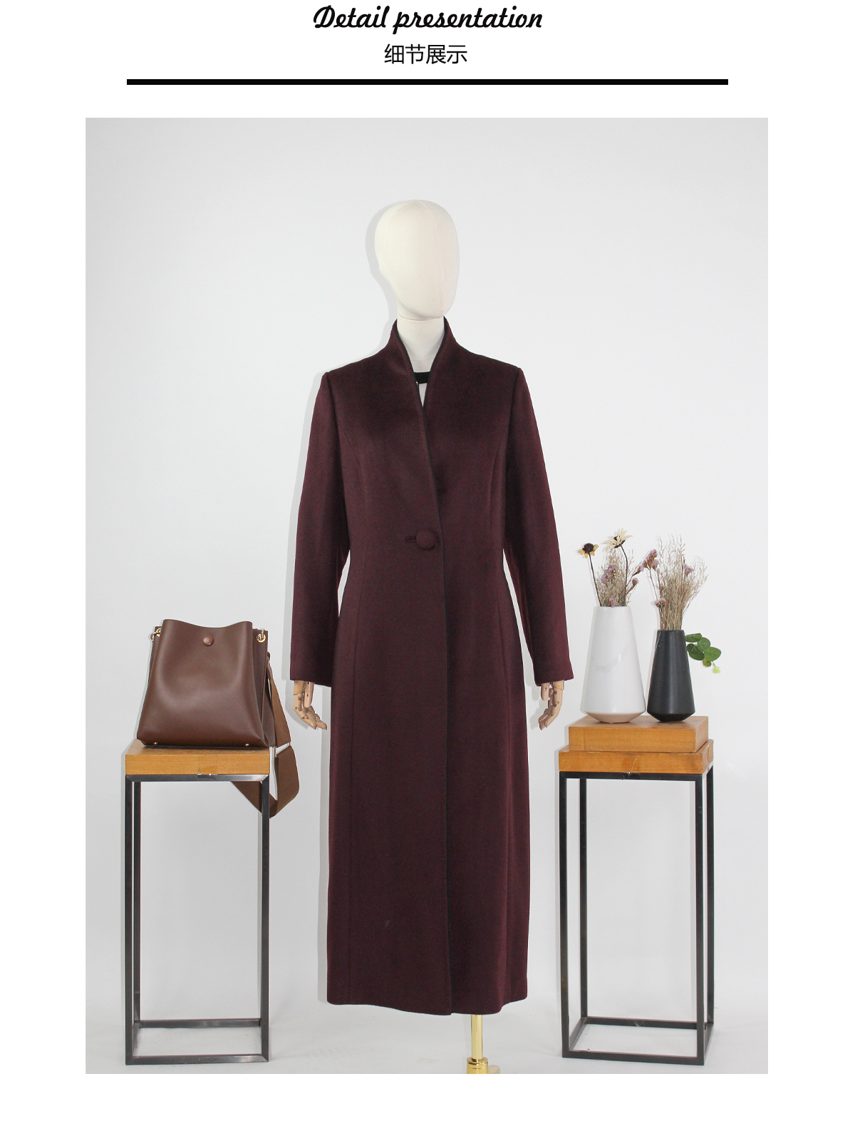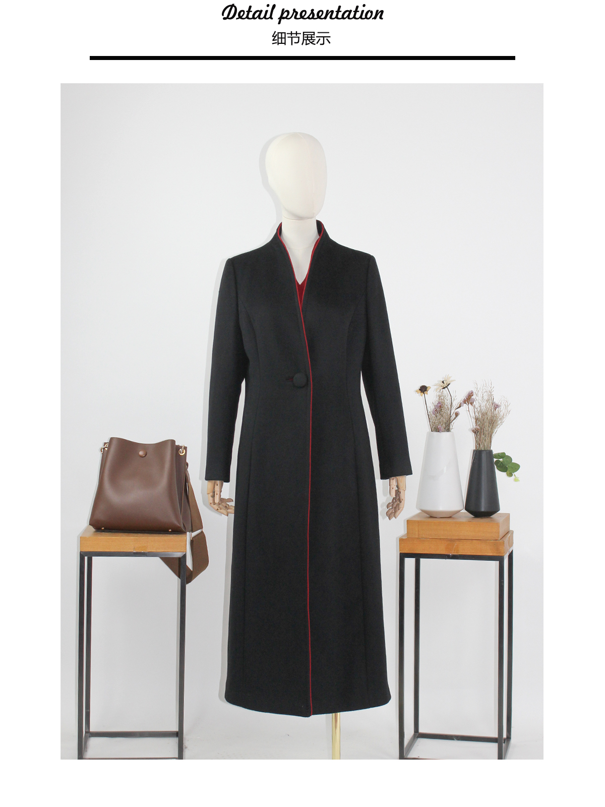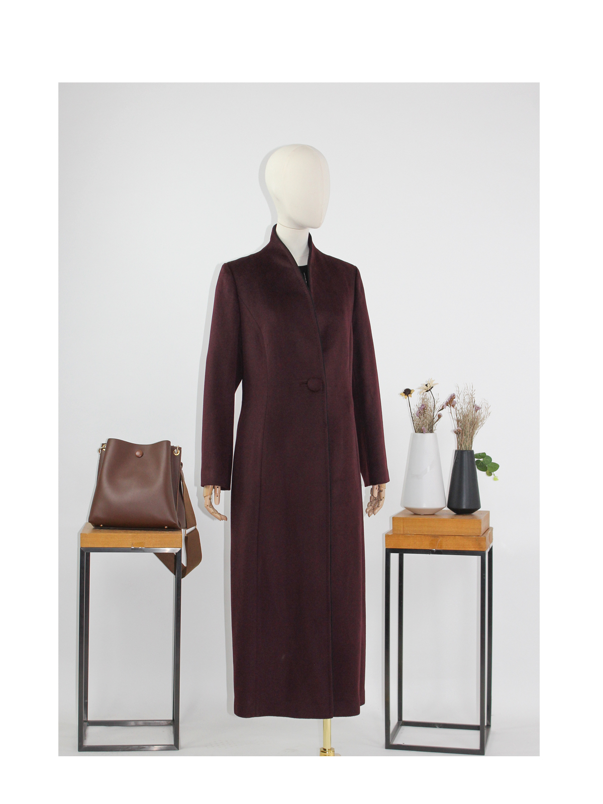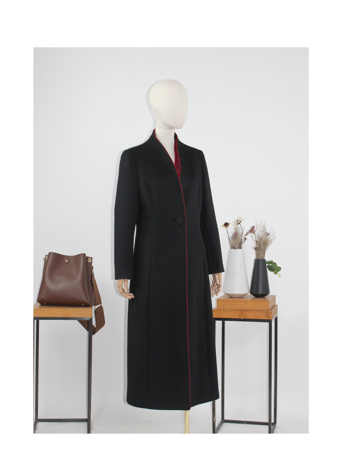 FOCALS福柯斯冬季新款修身长款纯色羊毛一粒扣大衣外套FYQDK711