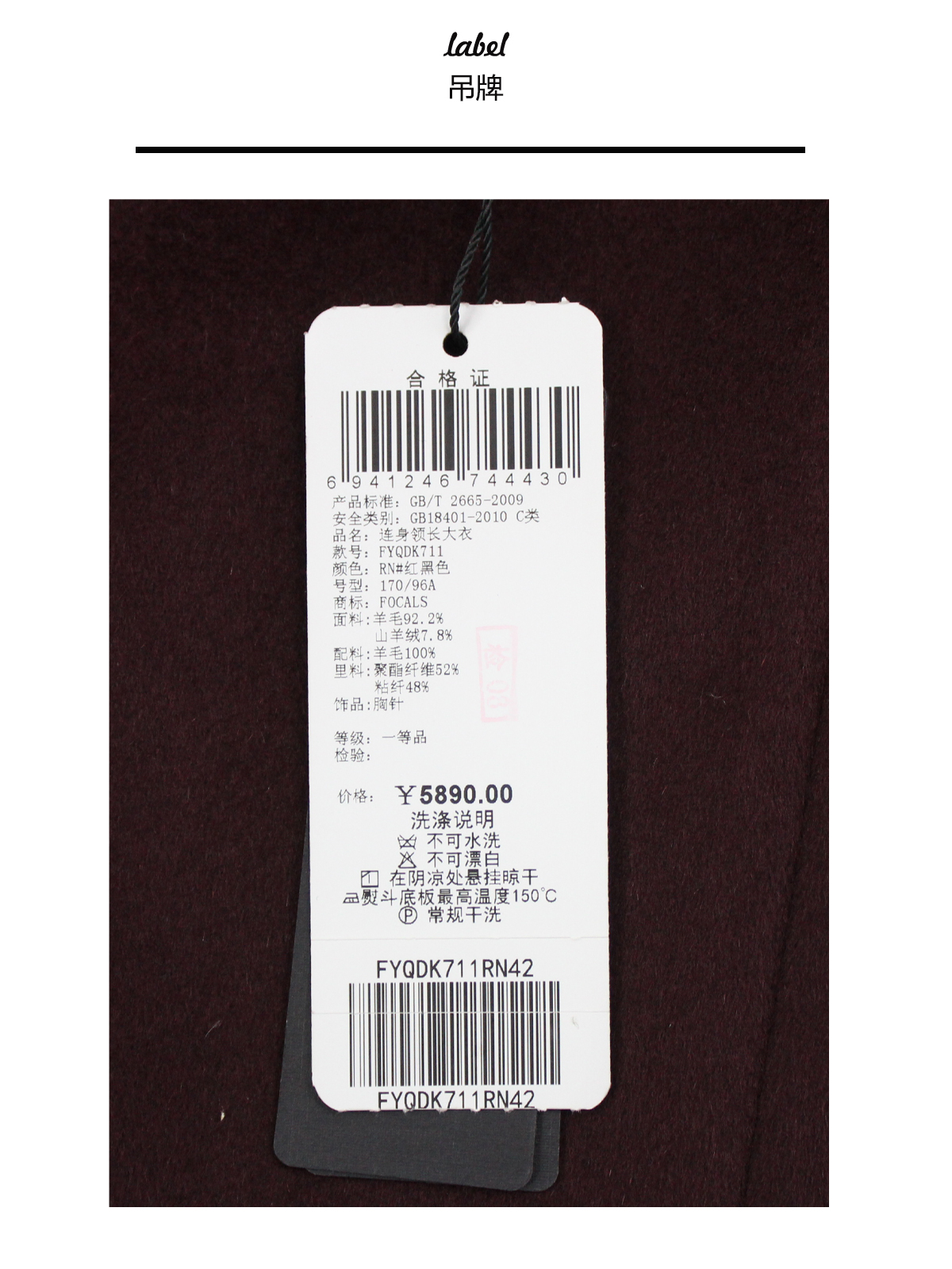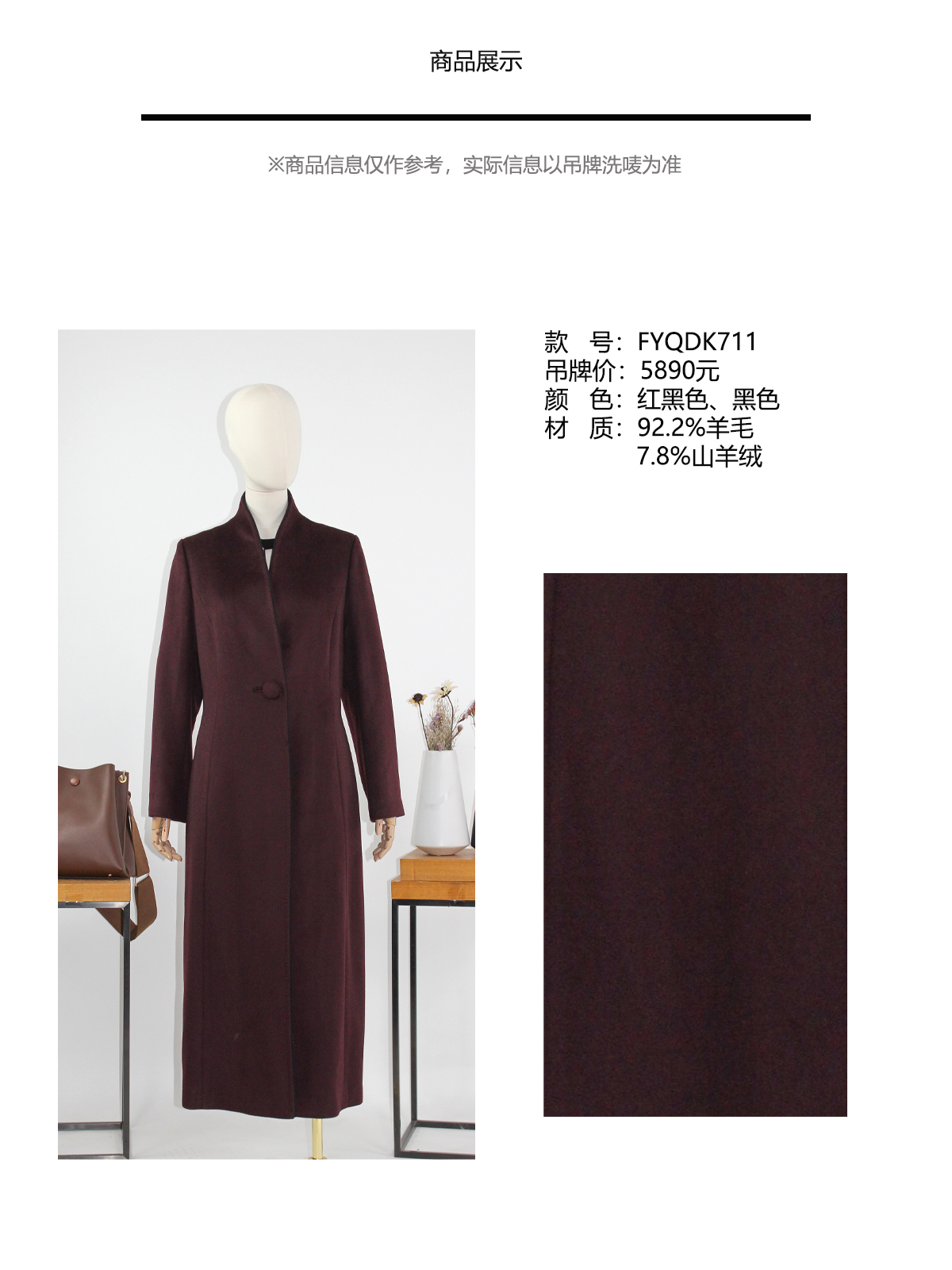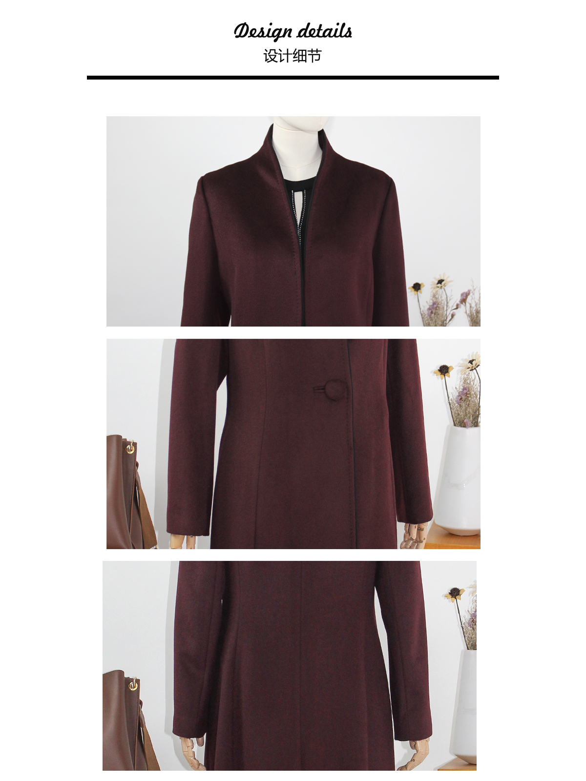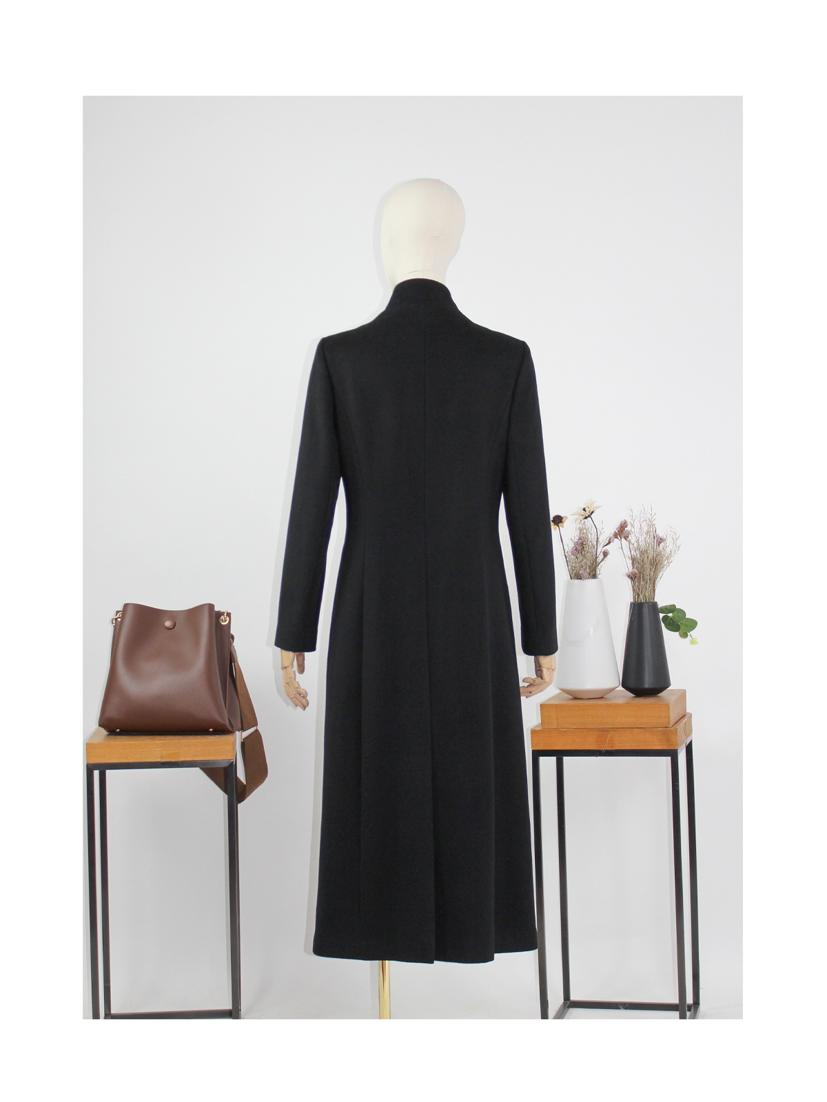 FOCALS福柯斯冬季新款修身长款纯色羊毛一粒扣大衣外套FYQDK711
