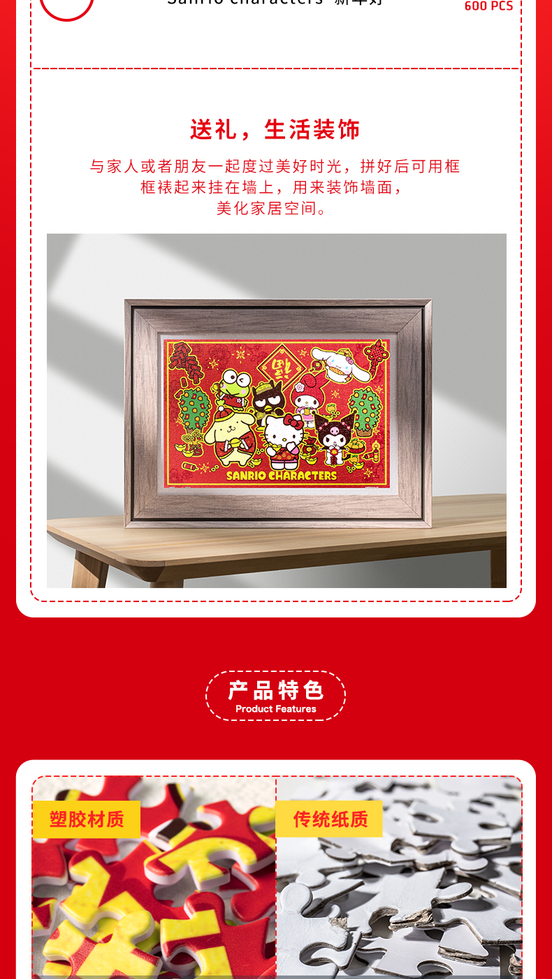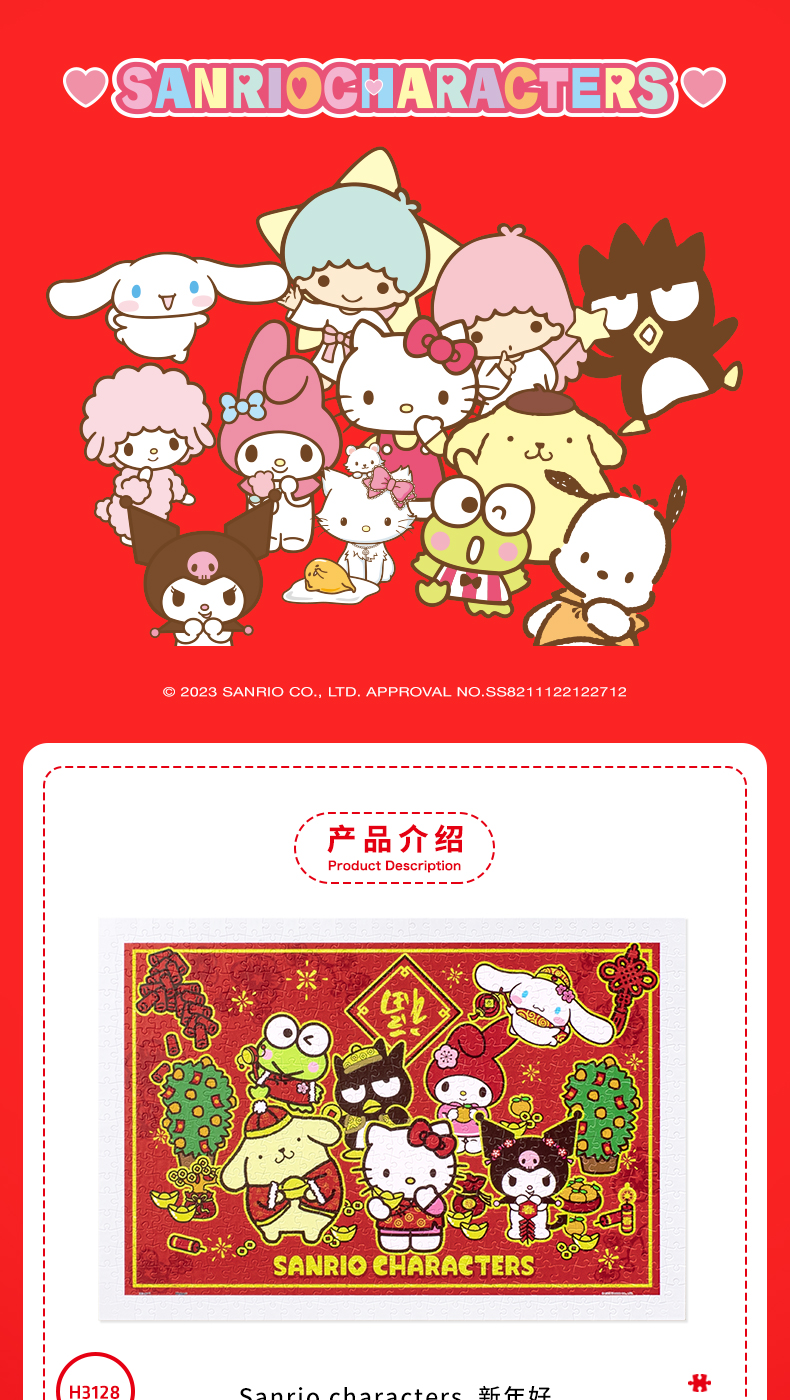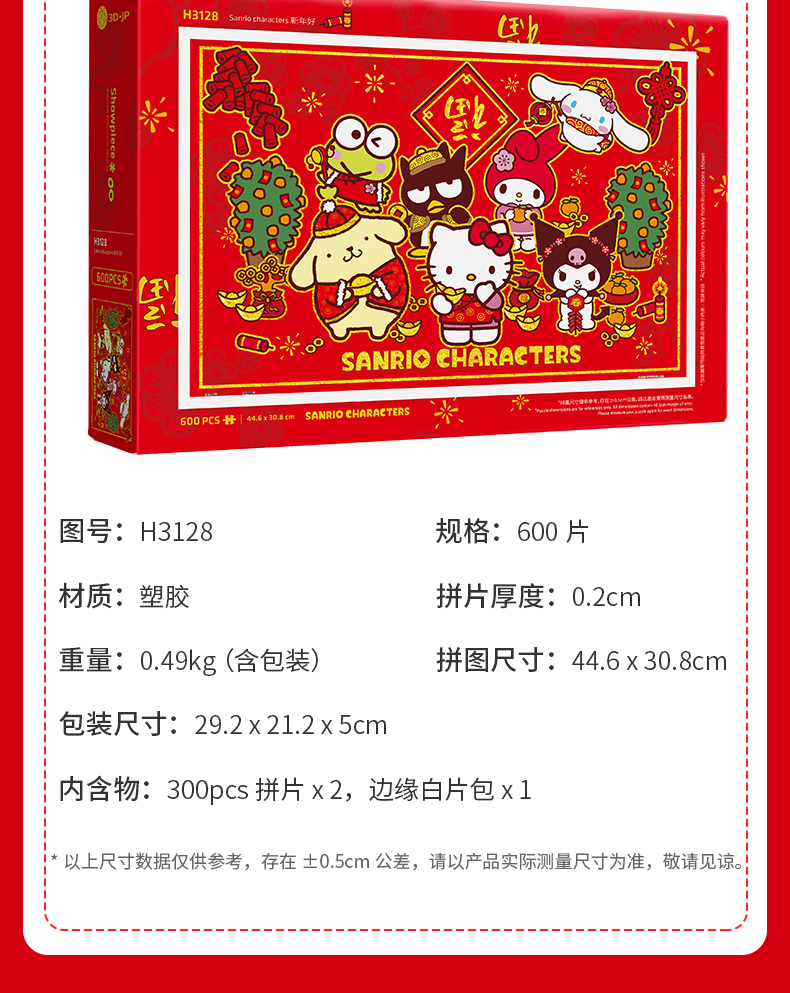 【折扣商品 不退不换】600片平面拼图塑料拼图 H3128 Sanrio characters 新年好