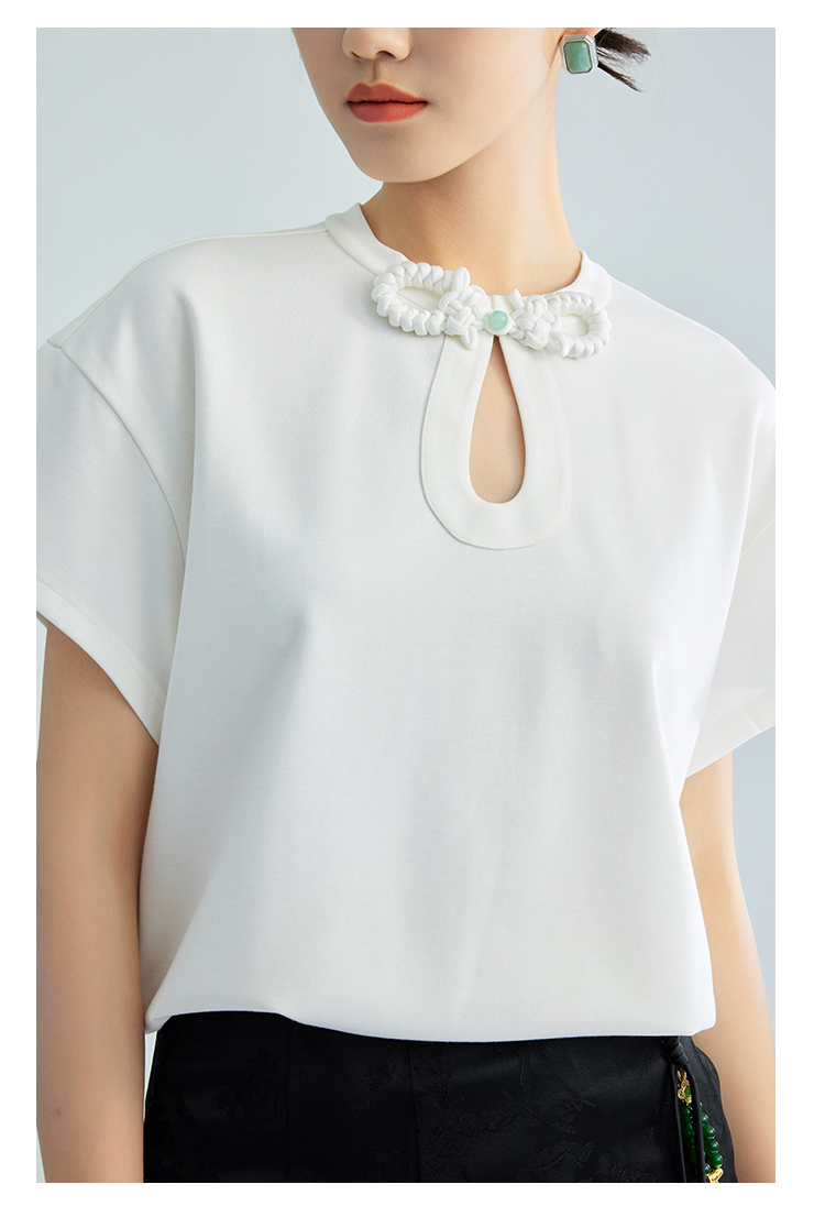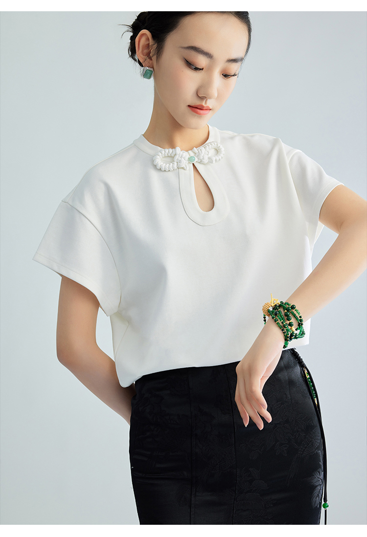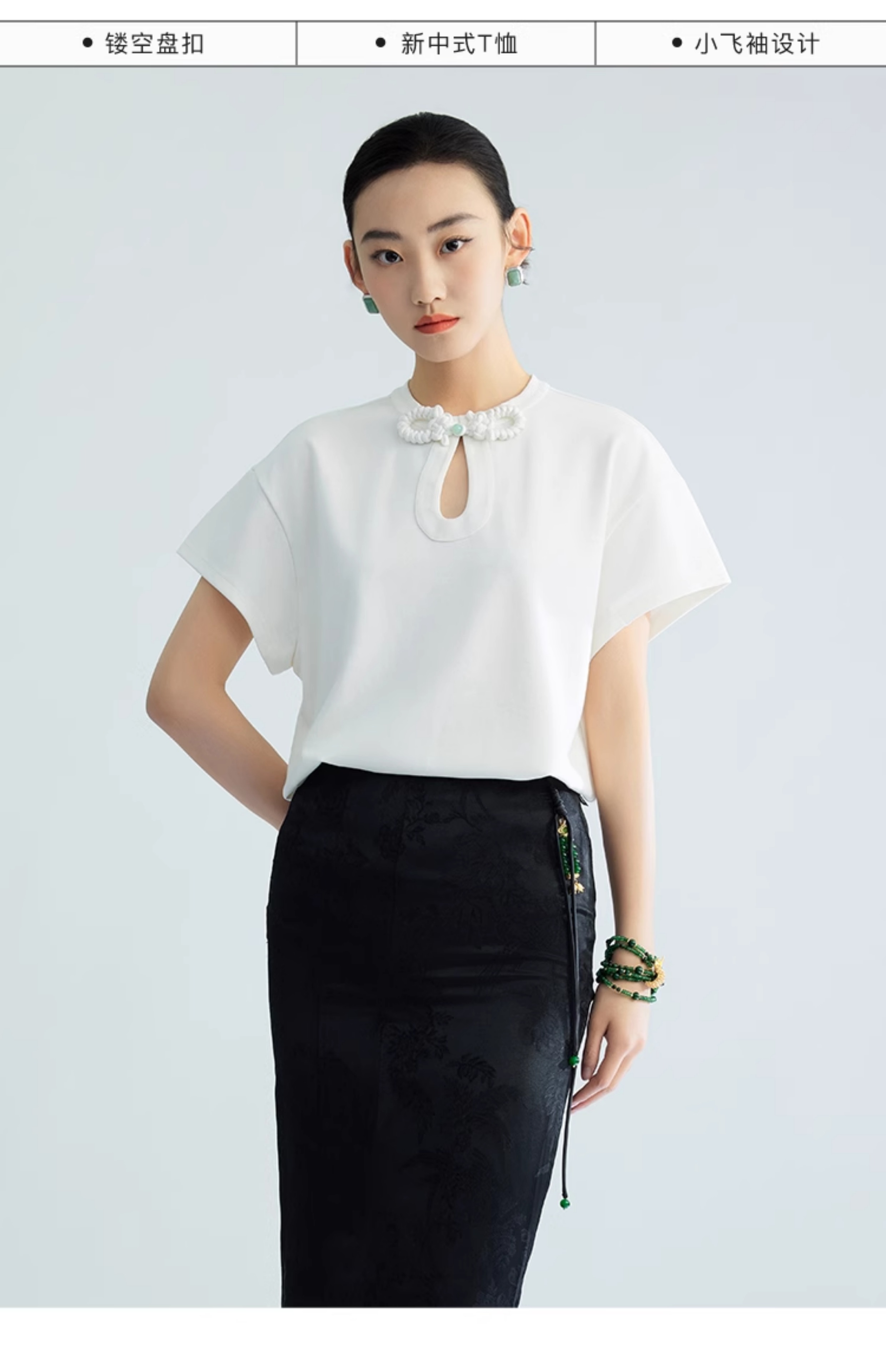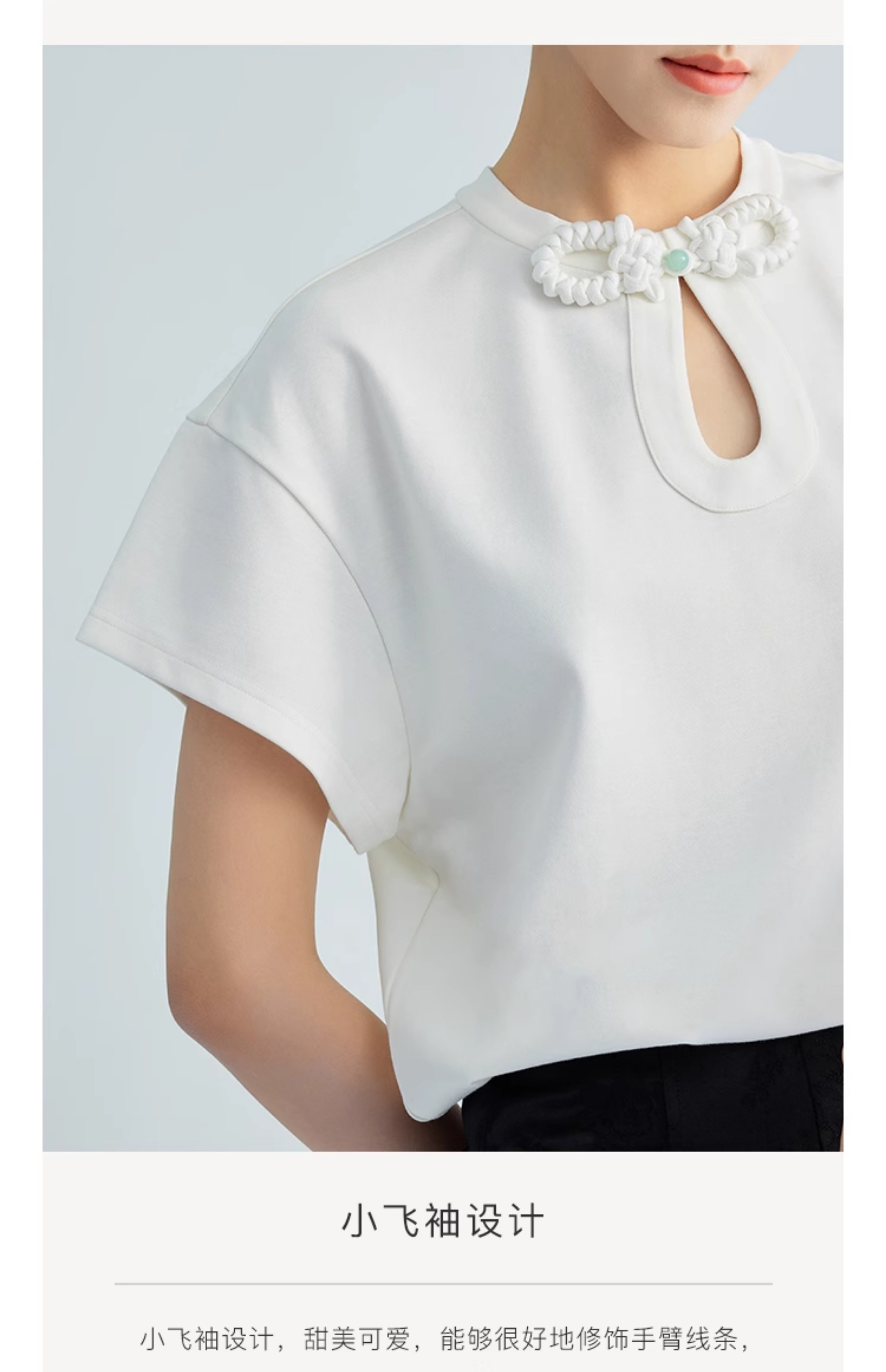 郭培成衣品牌精品系列新中式镂空盘扣小飞袖T恤
