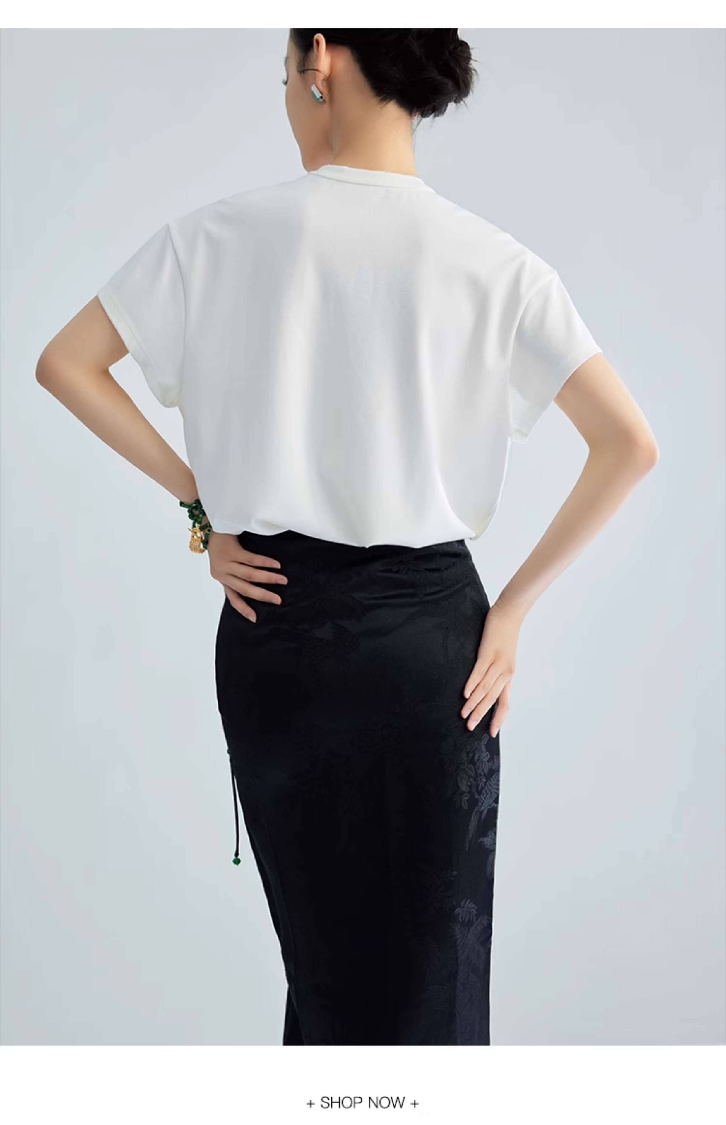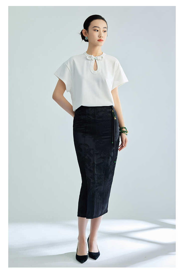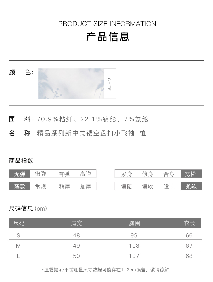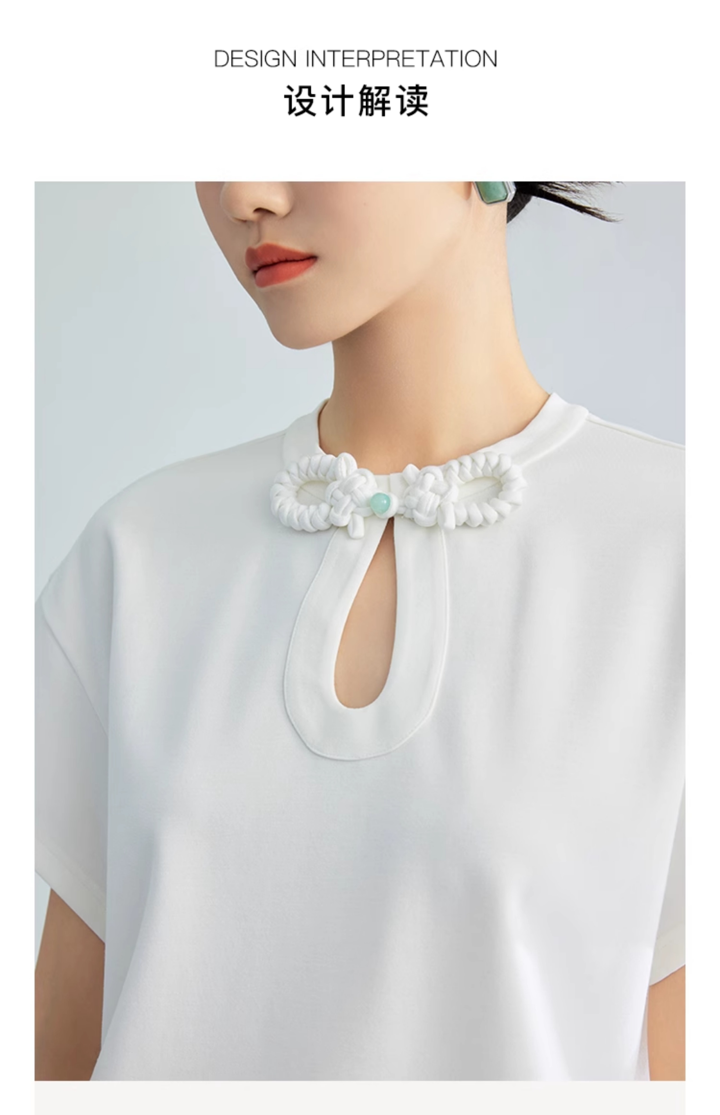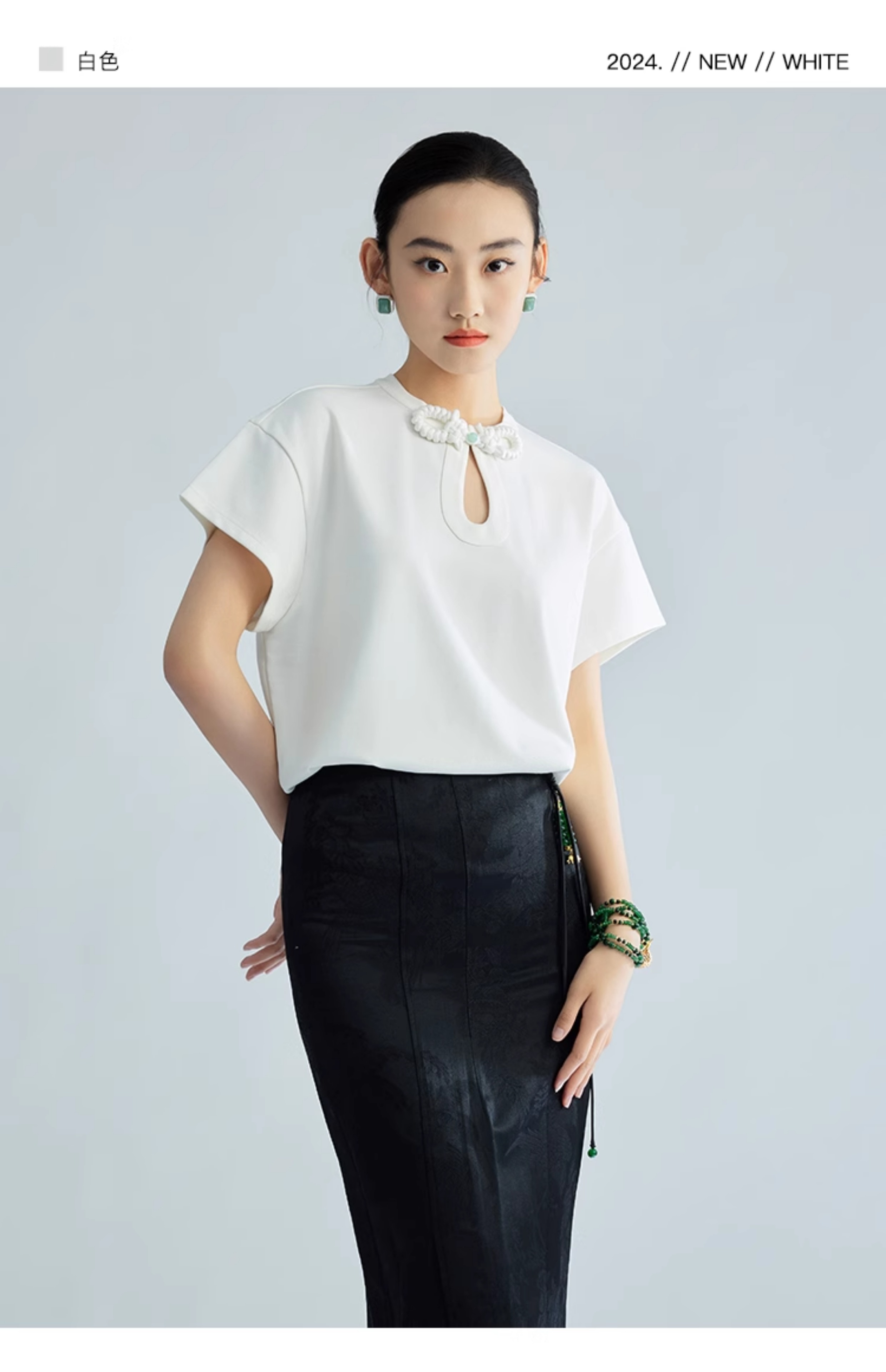 郭培成衣品牌精品系列新中式镂空盘扣小飞袖T恤