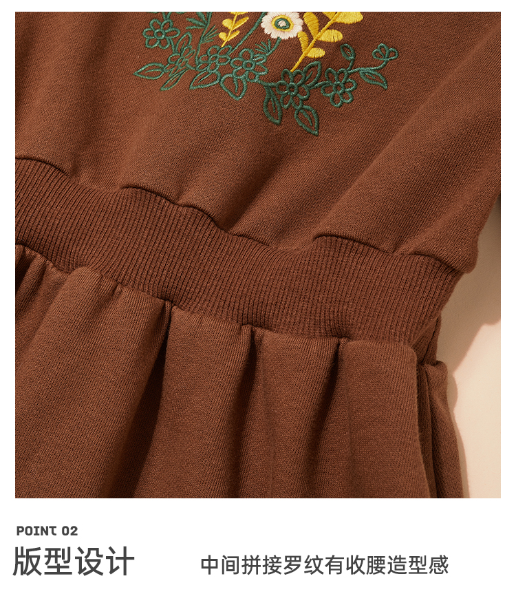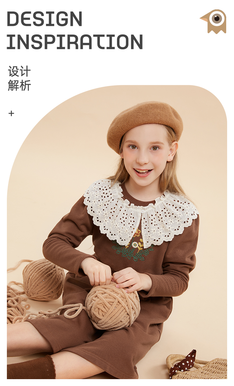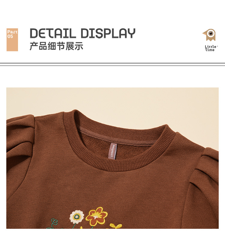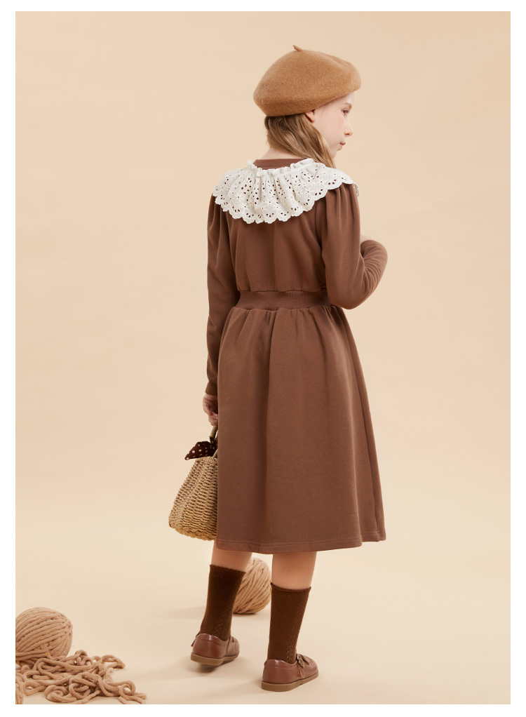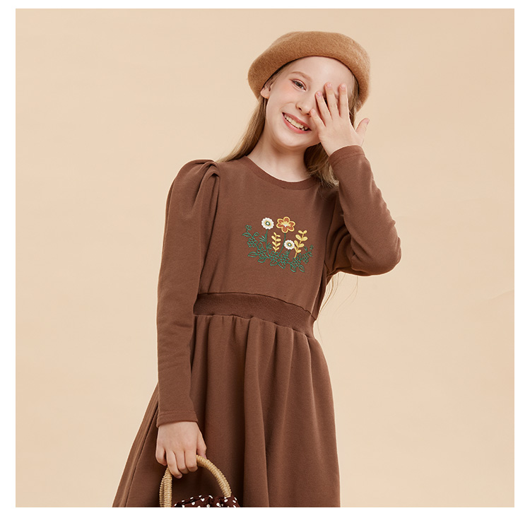 littletime女童连衣裙2022春秋新款女大童森系复古泡泡袖绣花长裙