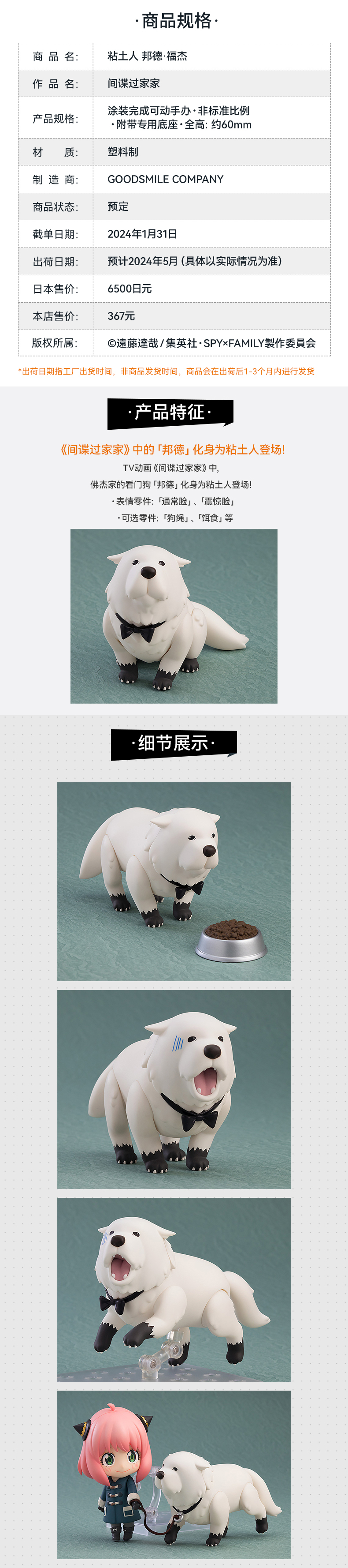【GSC现货】粘土人 邦德·福杰 间谍过家家 官方限定
