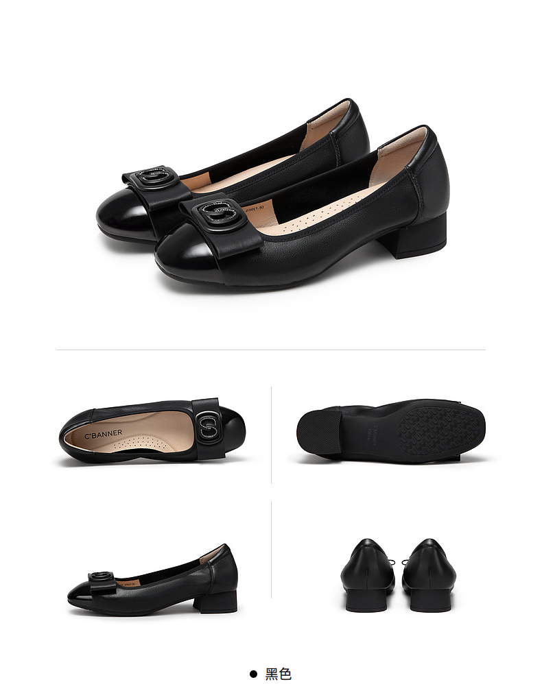 千百度双C拥抱粗跟浅口单鞋女秋季拼接真皮小香风晚晚鞋A24462628