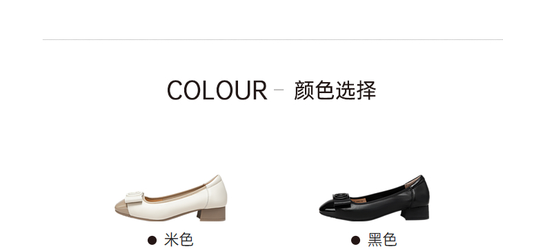 千百度羊皮粗高跟鞋女通勤正装法式扣饰气质浅口单鞋A25485663