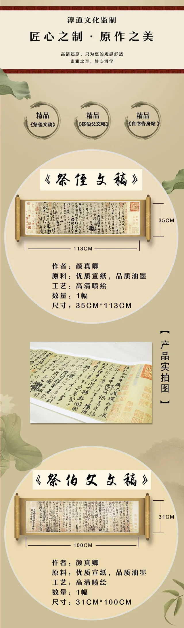 颜真卿《祭侄文稿》《祭伯父文稿》《自书告身帖》原大高清复制(未装裱)