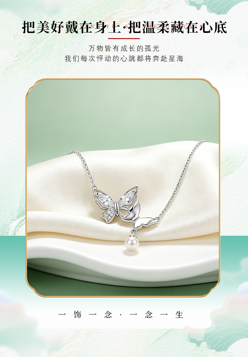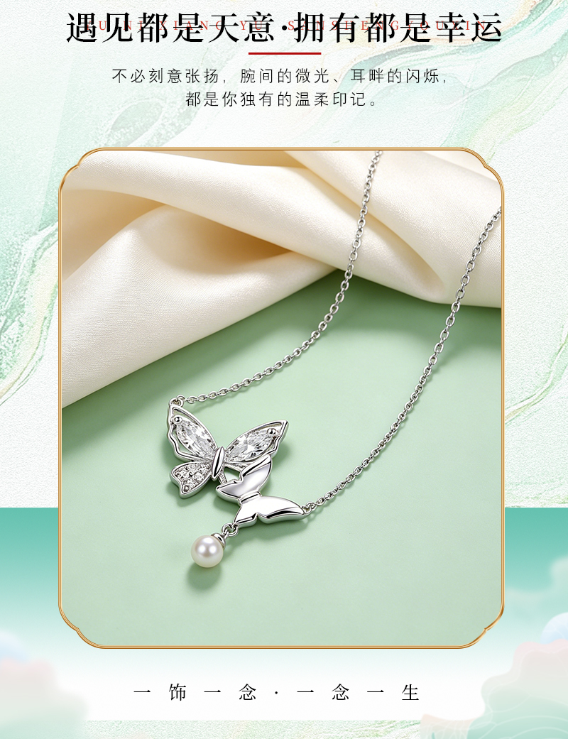 【宏艺珠宝】蝶舞清辉·银s925项链