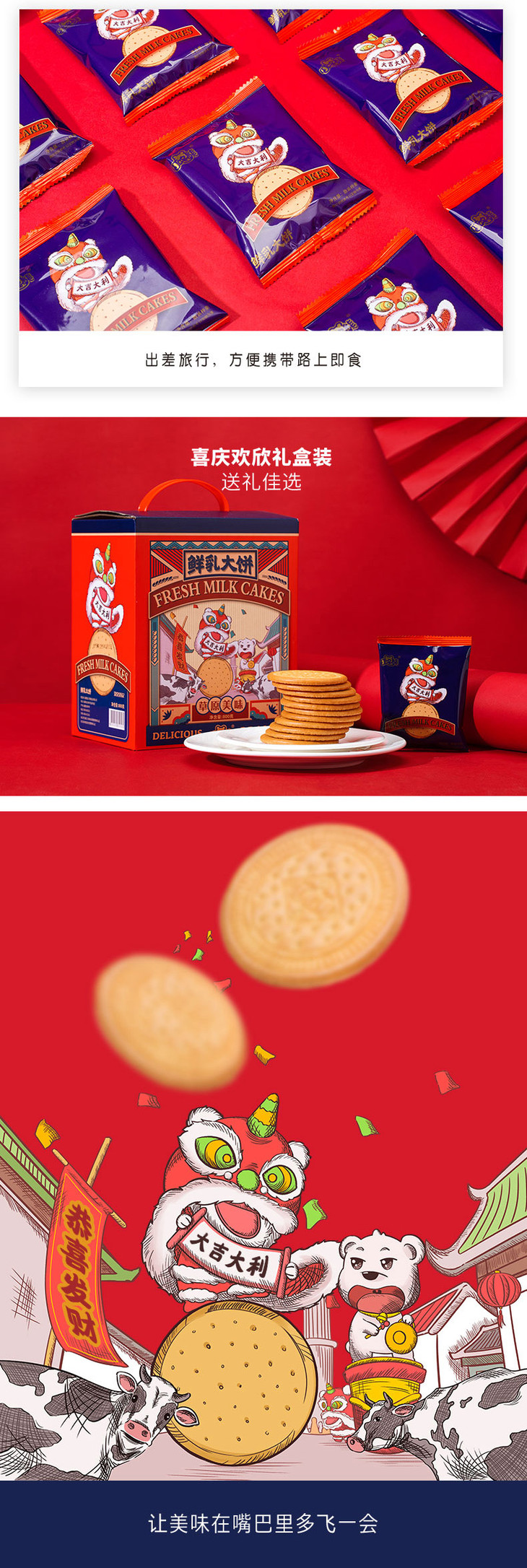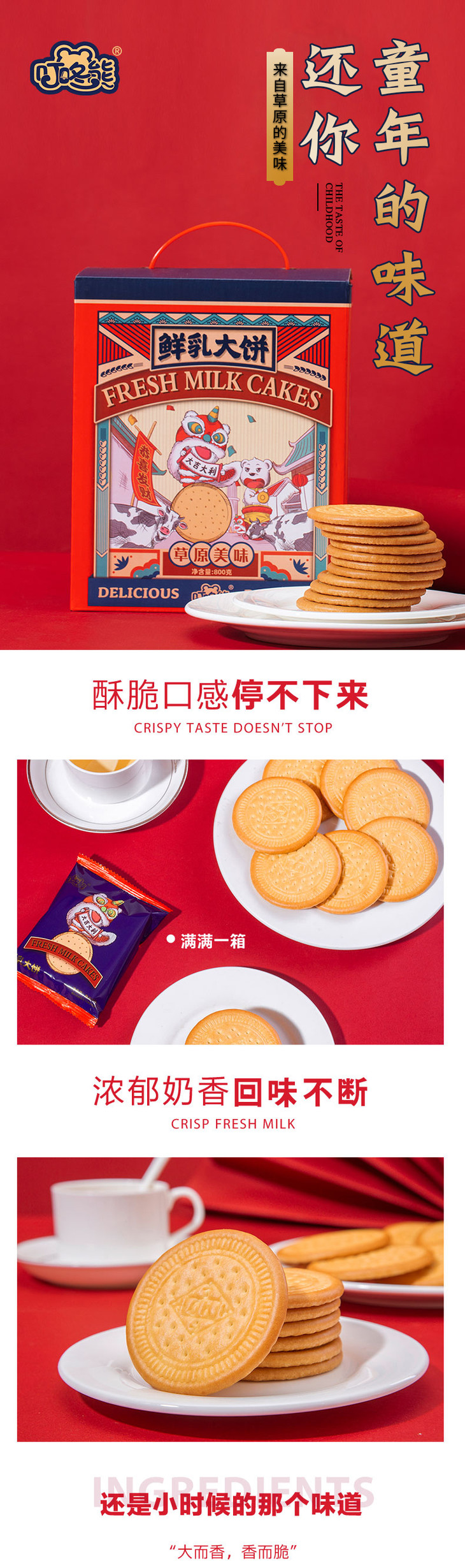 【李佳琦推荐】叮咚熊草原鲜乳大饼800g*2盒老式饼干儿时味道早餐零食整箱鲜奶饼