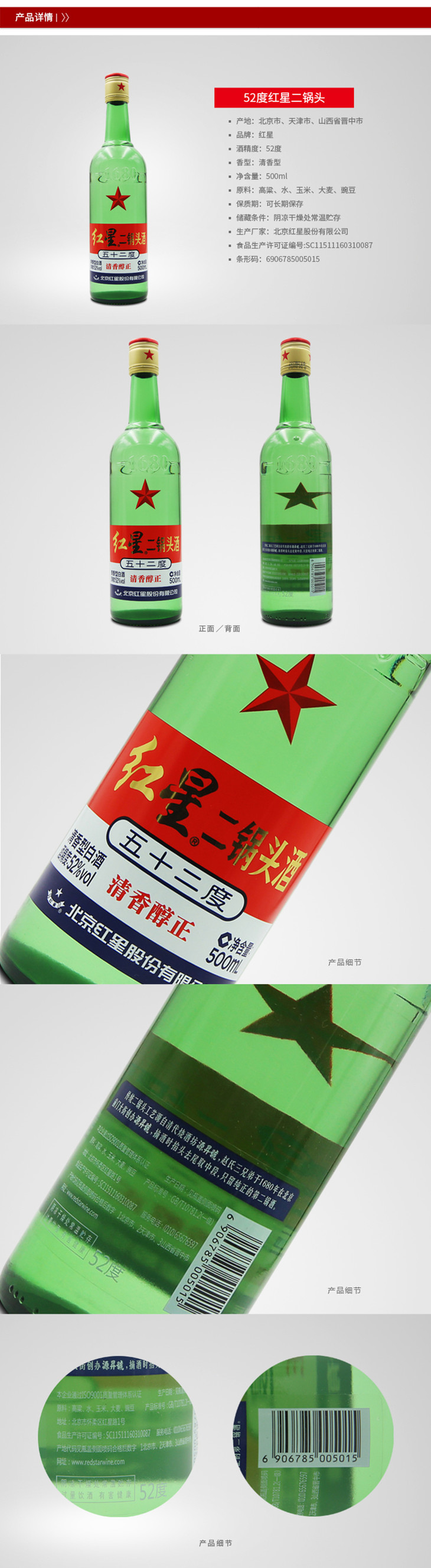 52°红星二锅头500ml
