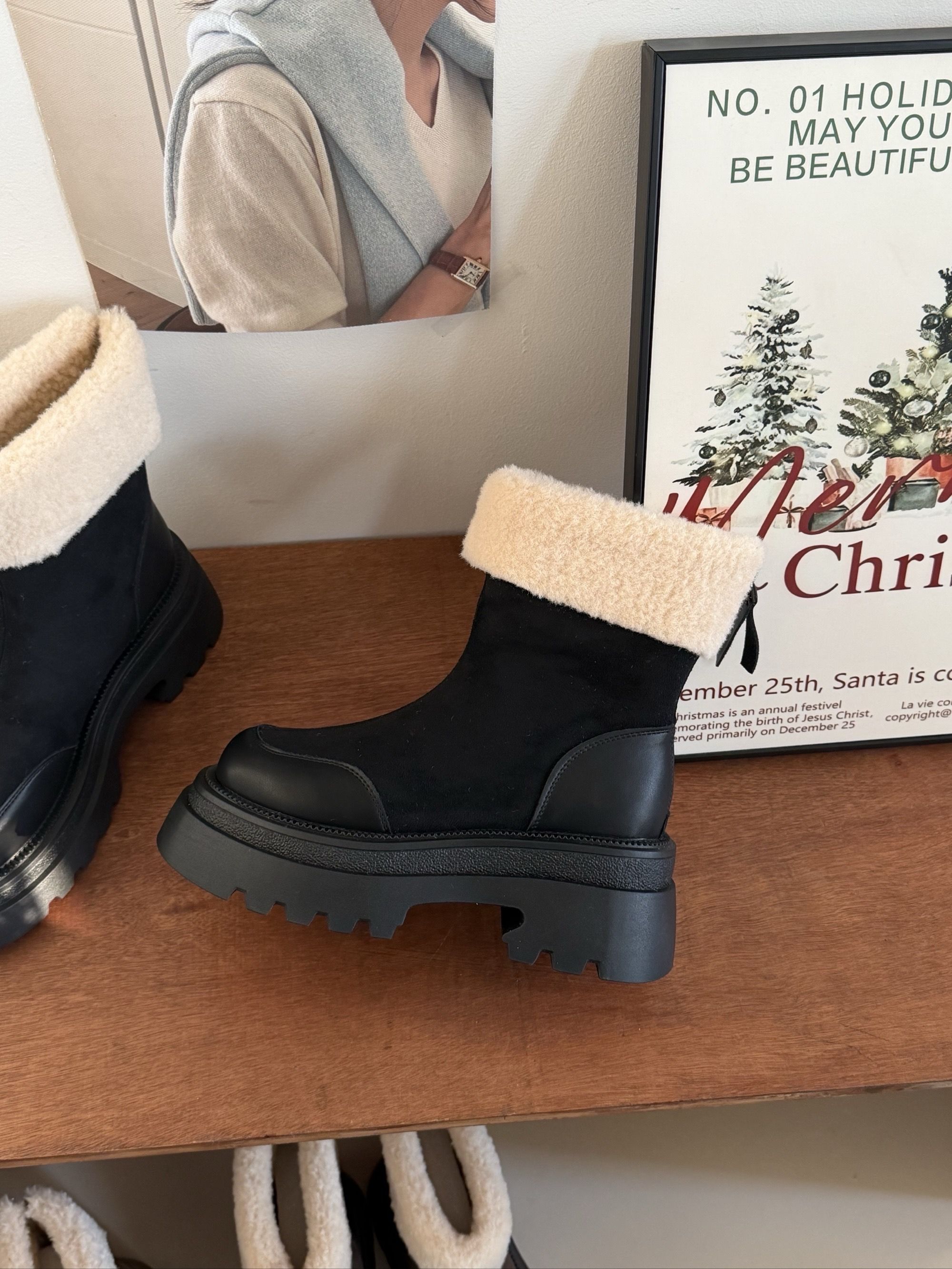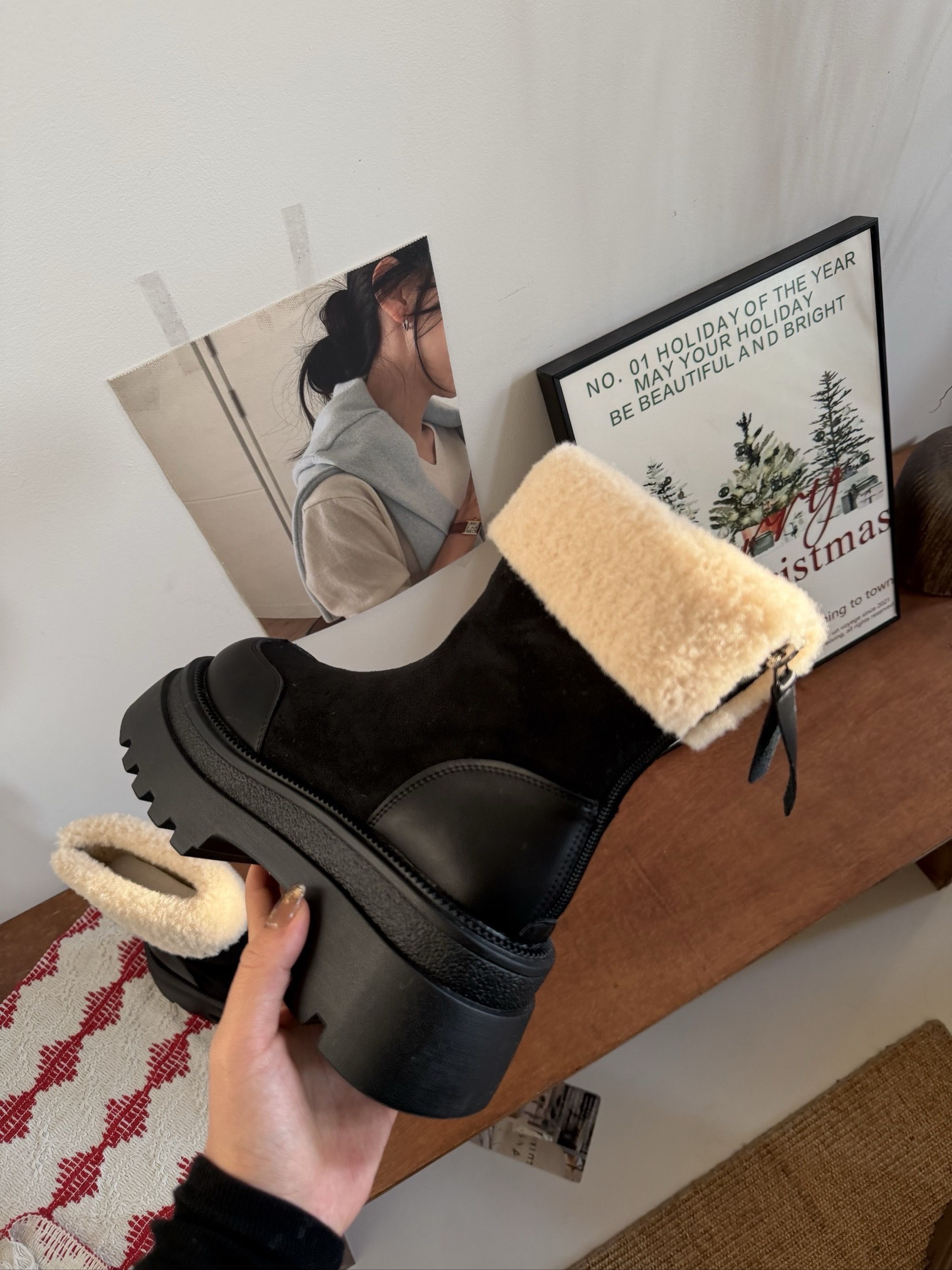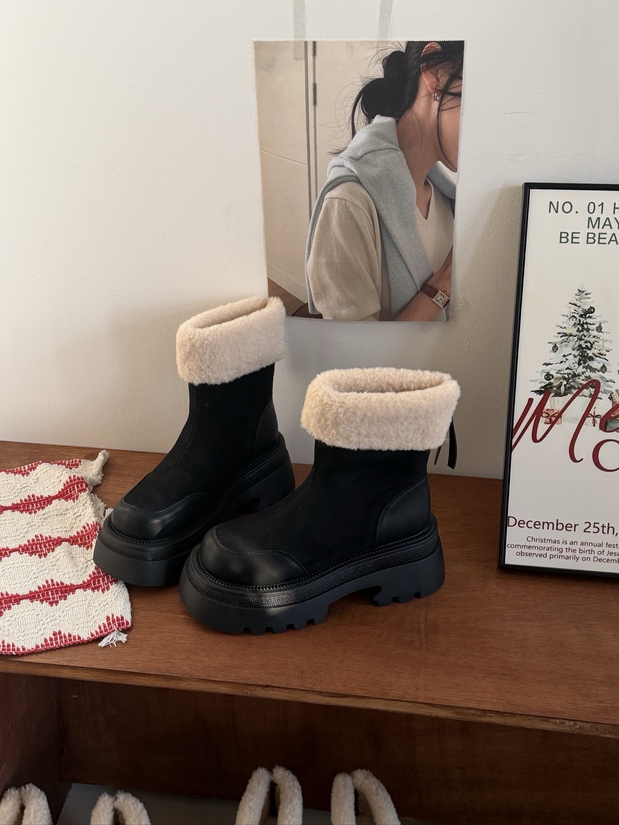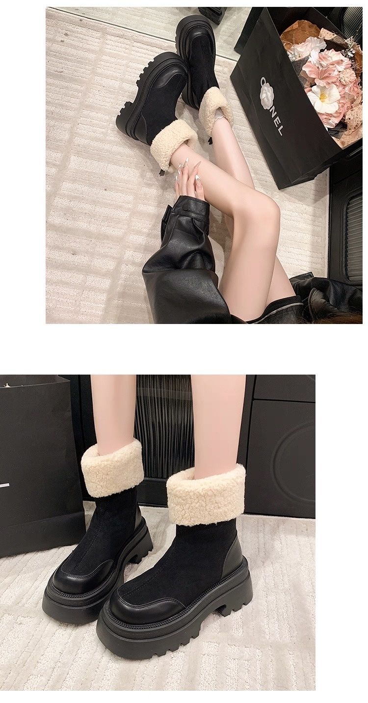 尺码偏小拍大一码!SOSOTATA 冬季加绒厚底马丁靴 软fufu绒感内里触感柔软,7CM鞋跟小个子显腿长