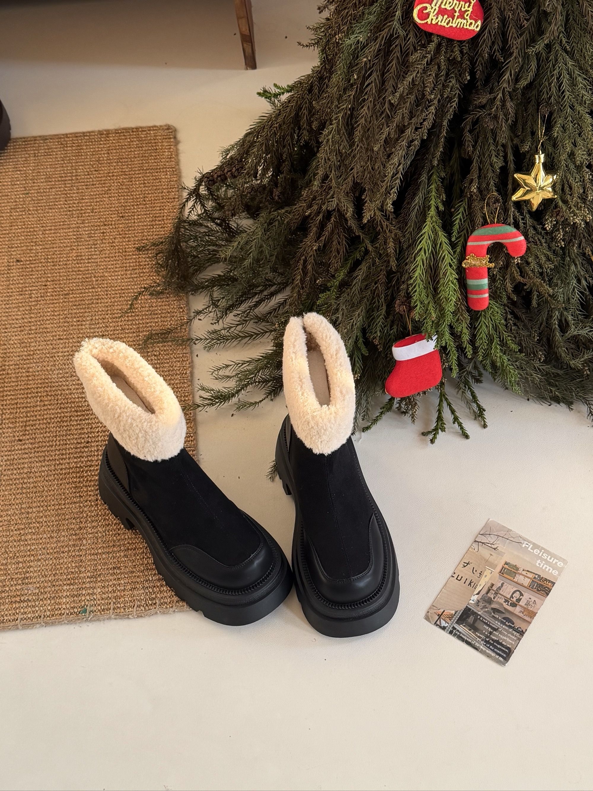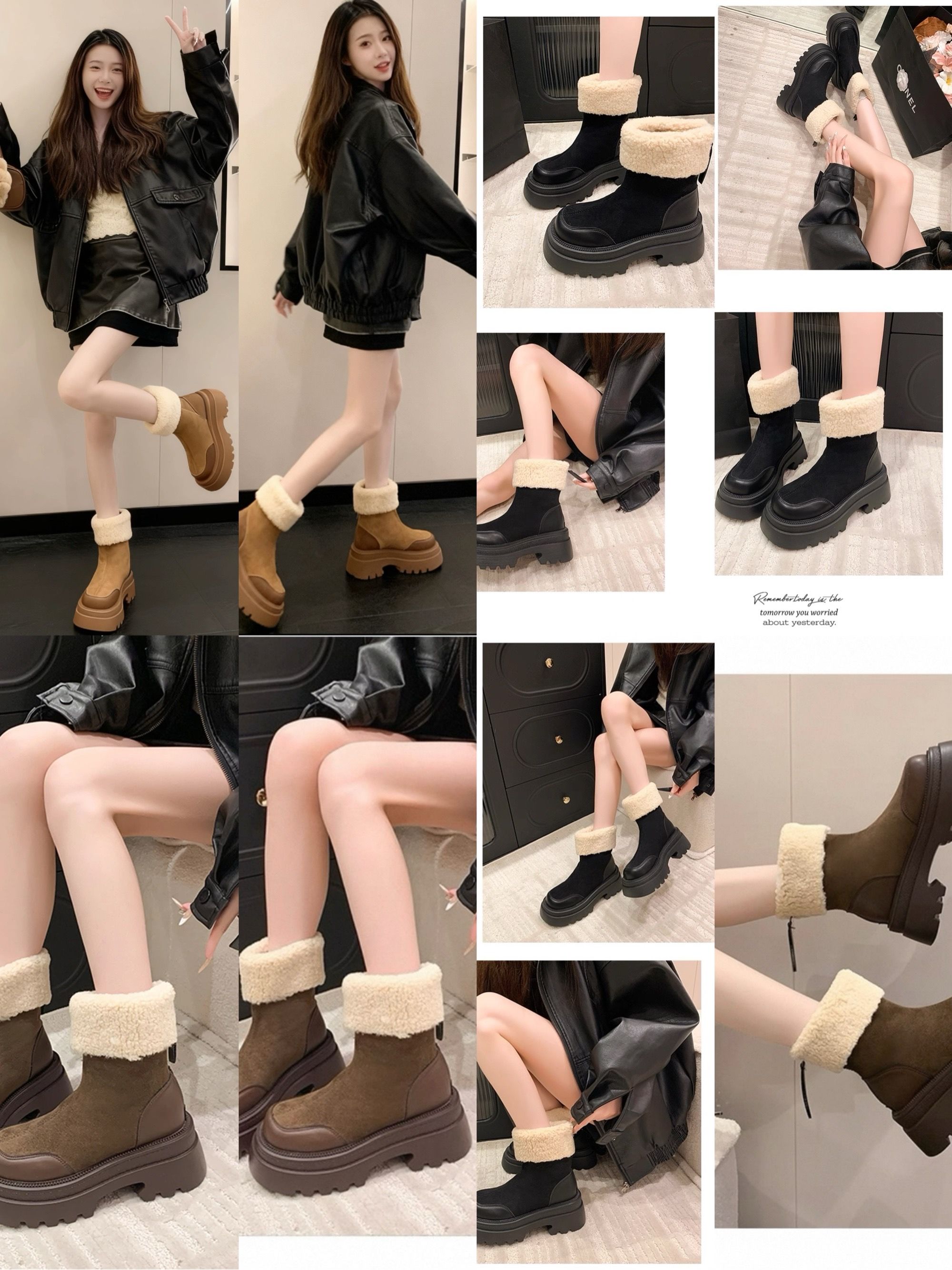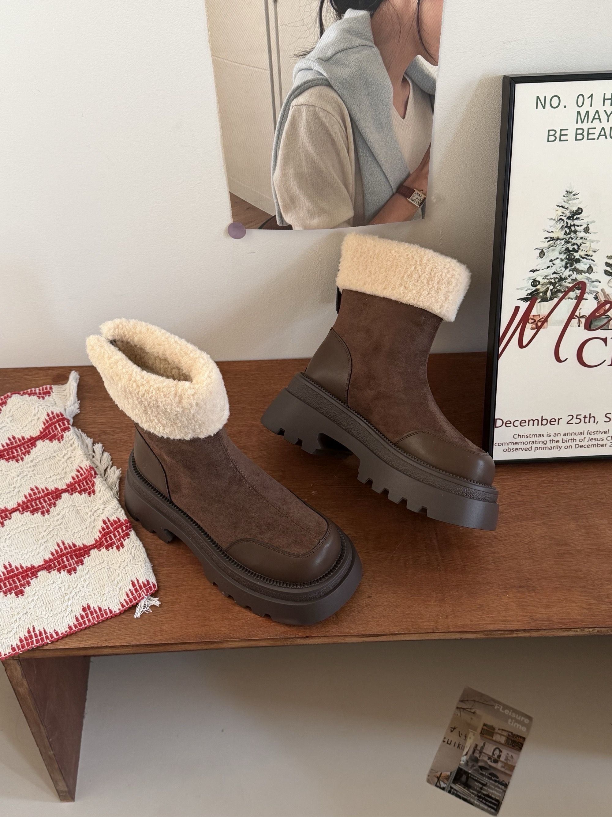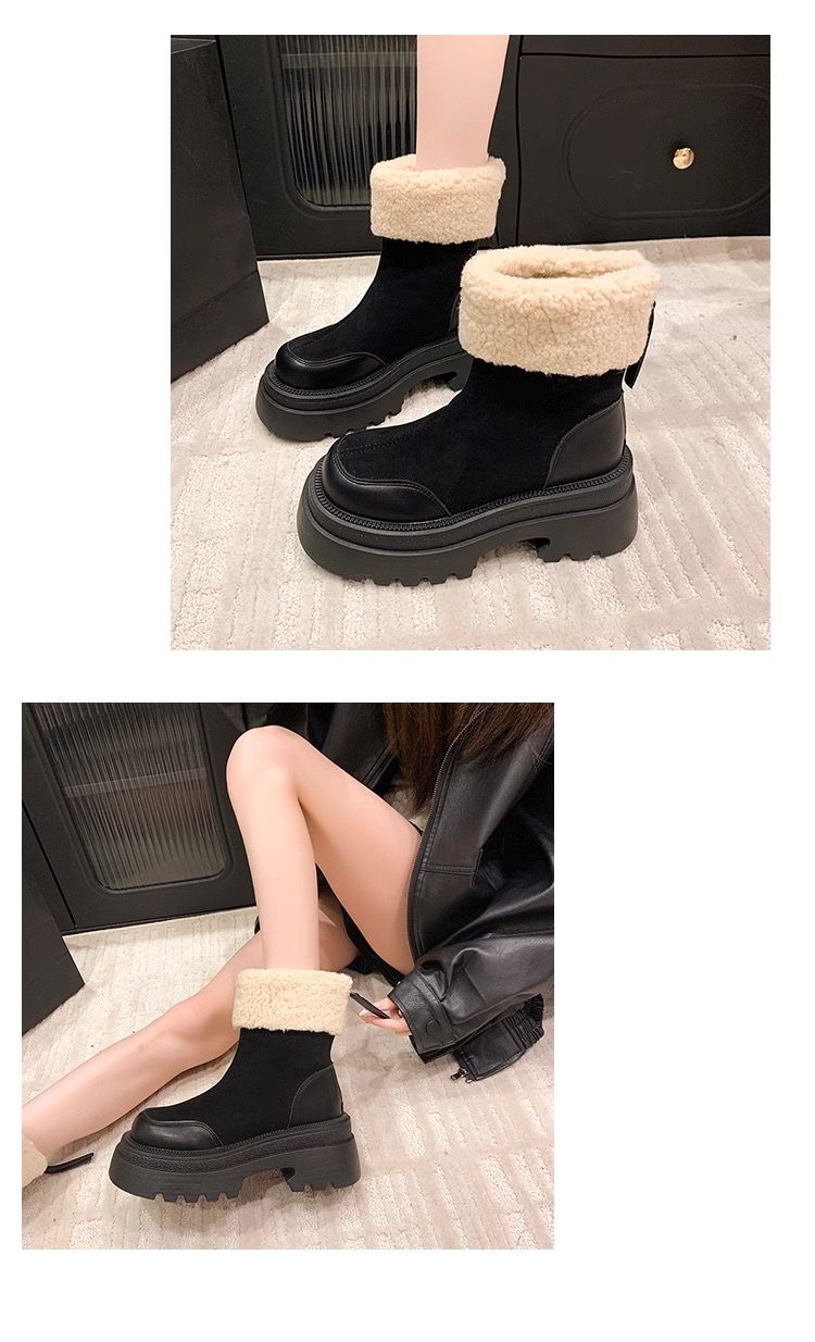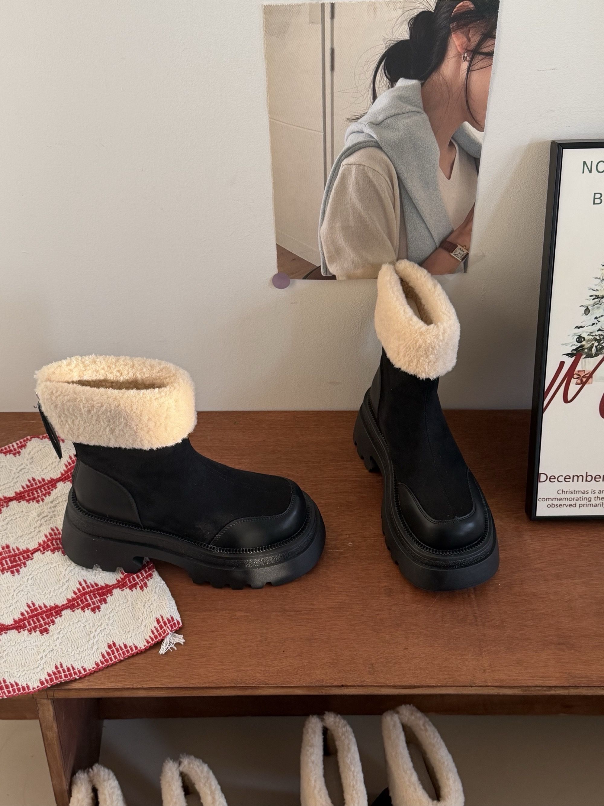 尺码偏小拍大一码!SOSOTATA 冬季加绒厚底马丁靴 软fufu绒感内里触感柔软,7CM鞋跟小个子显腿长