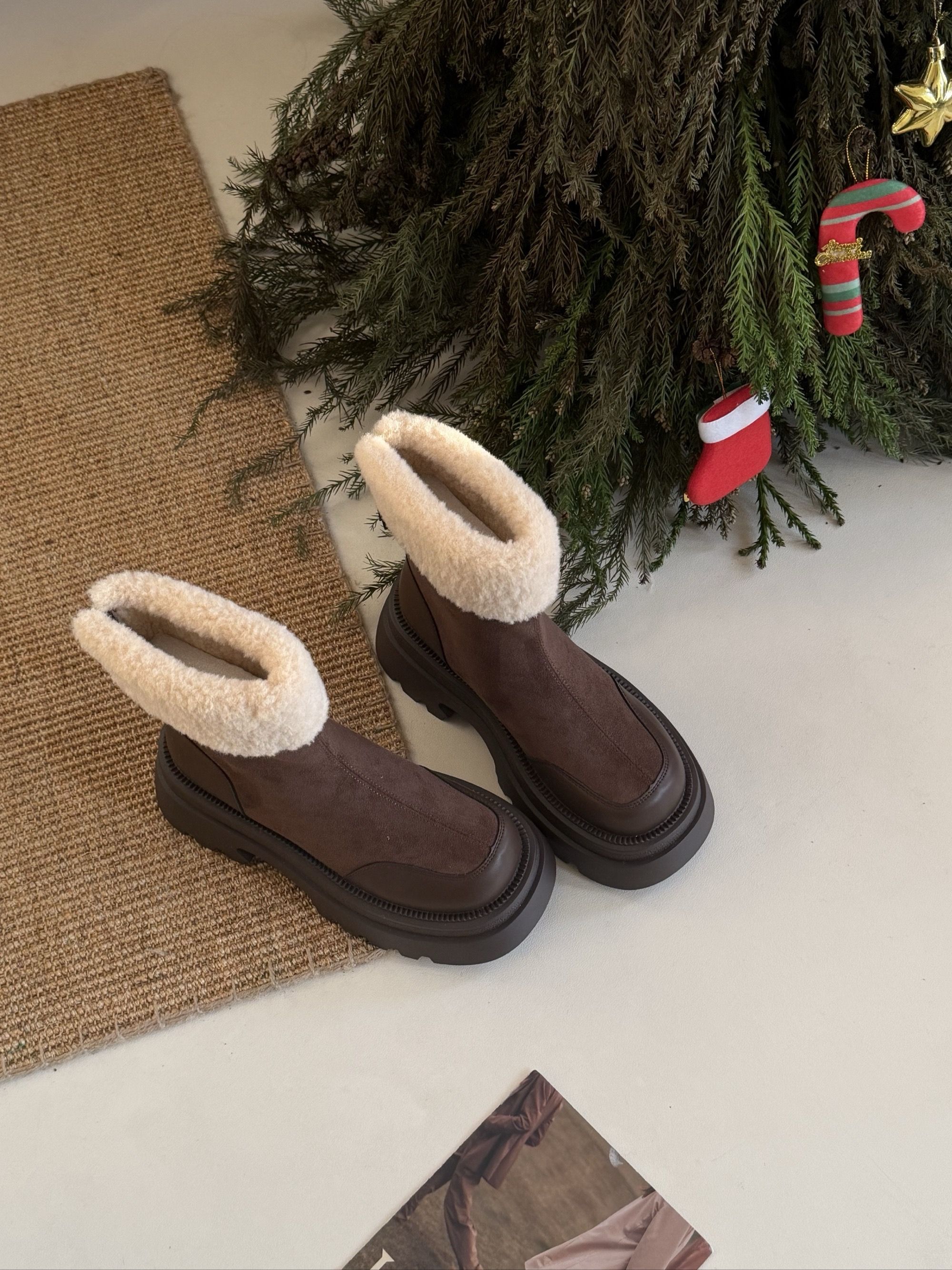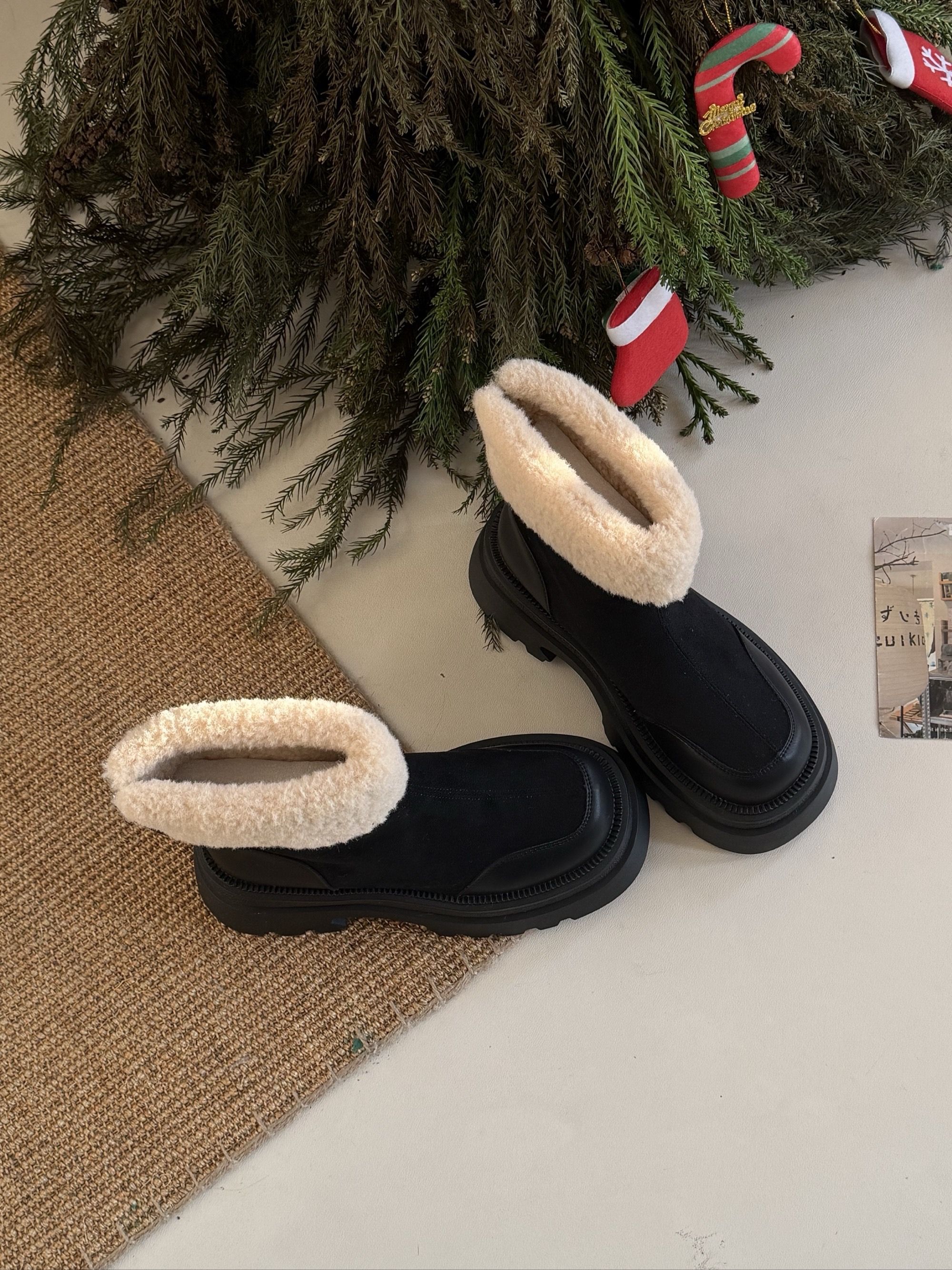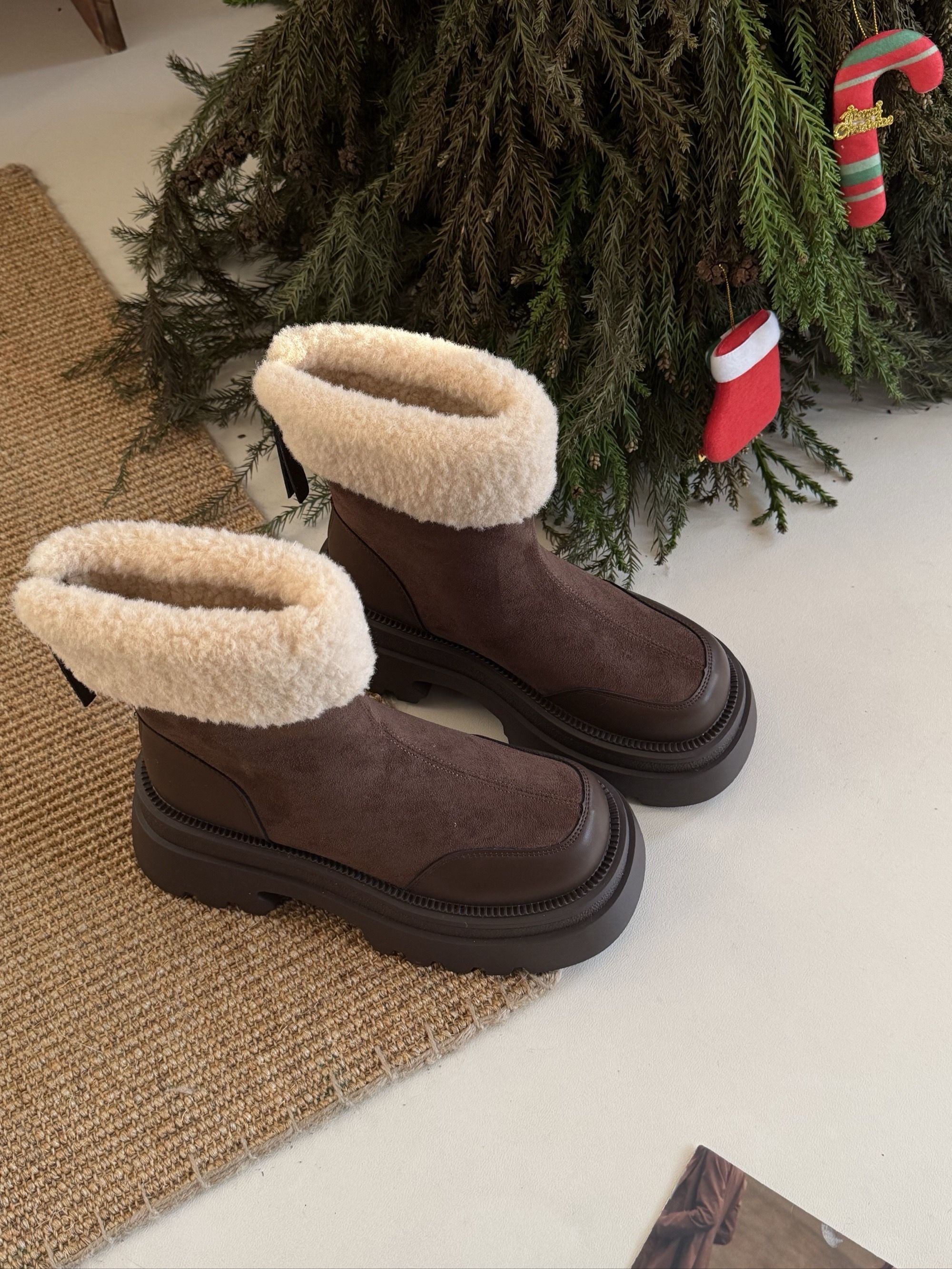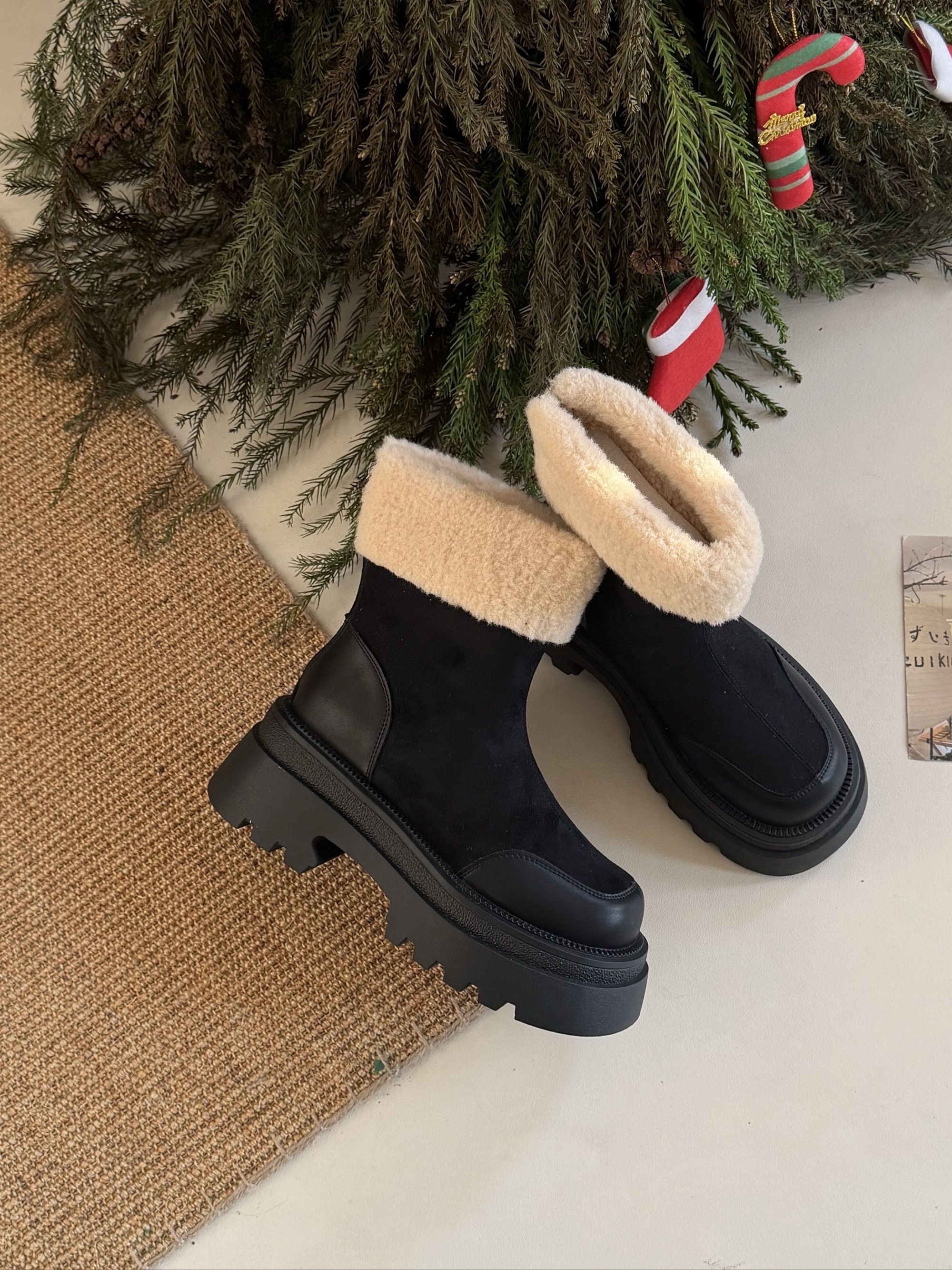 尺码偏小拍大一码!SOSOTATA 冬季加绒厚底马丁靴 软fufu绒感内里触感柔软,7CM鞋跟小个子显腿长