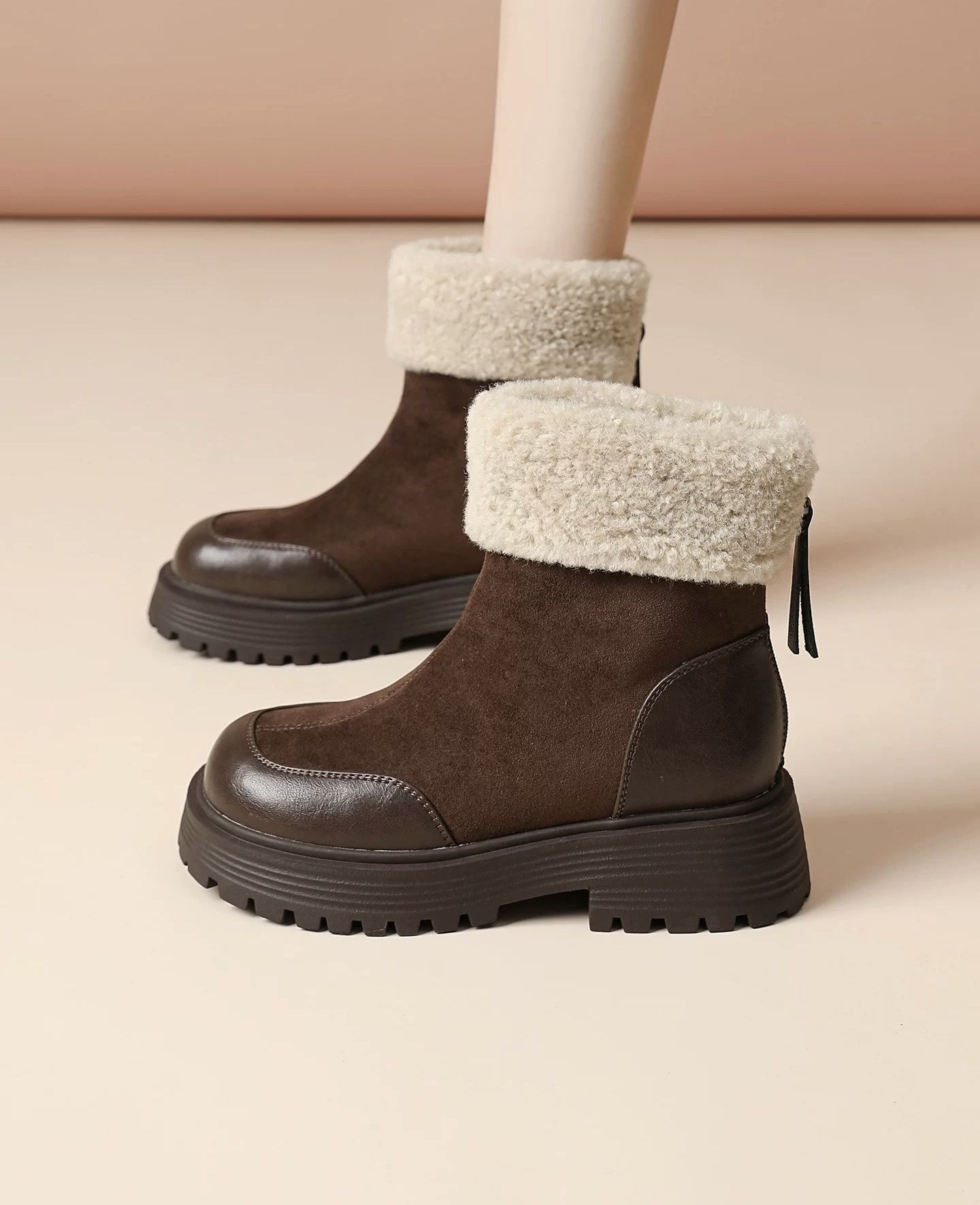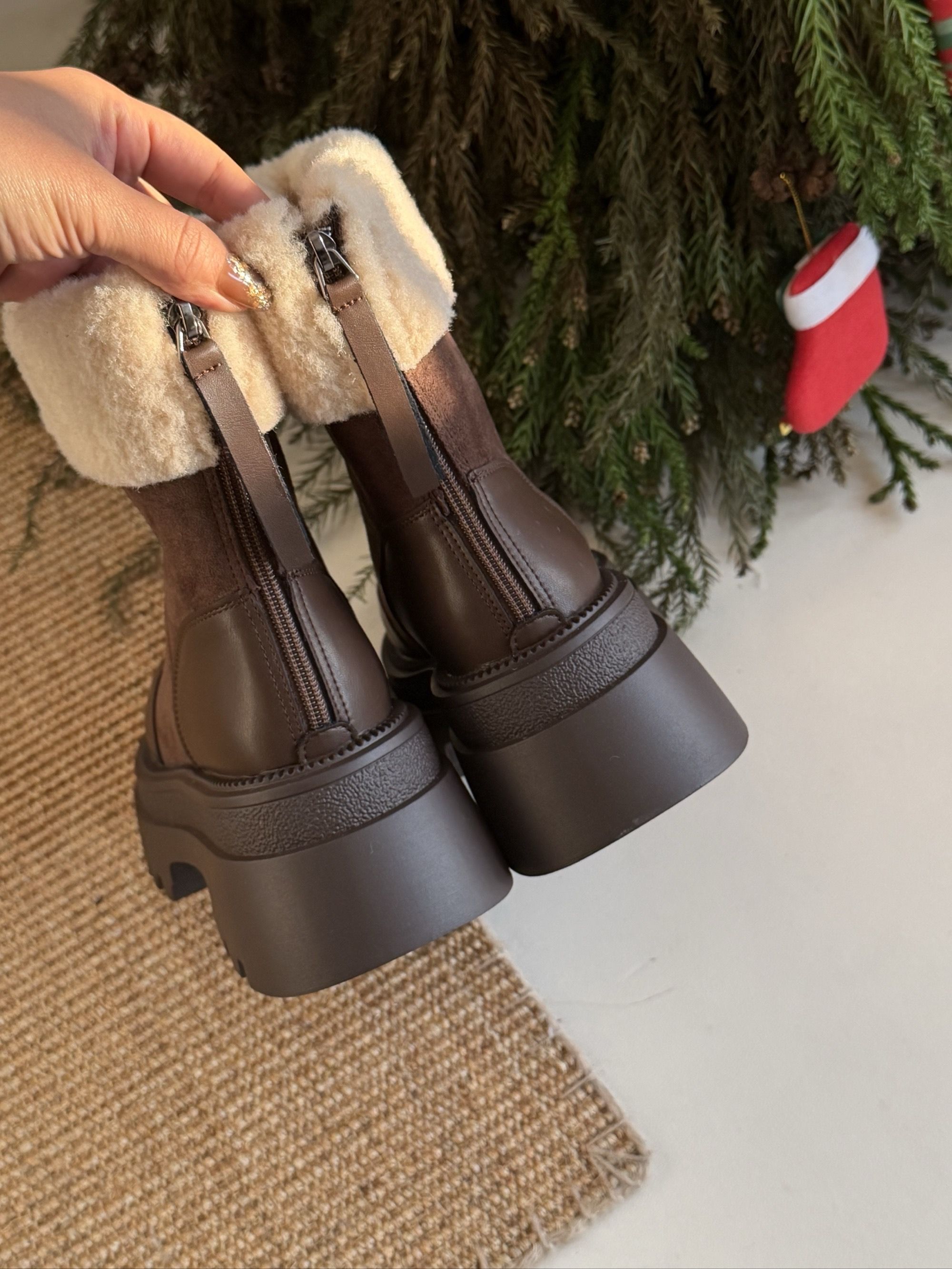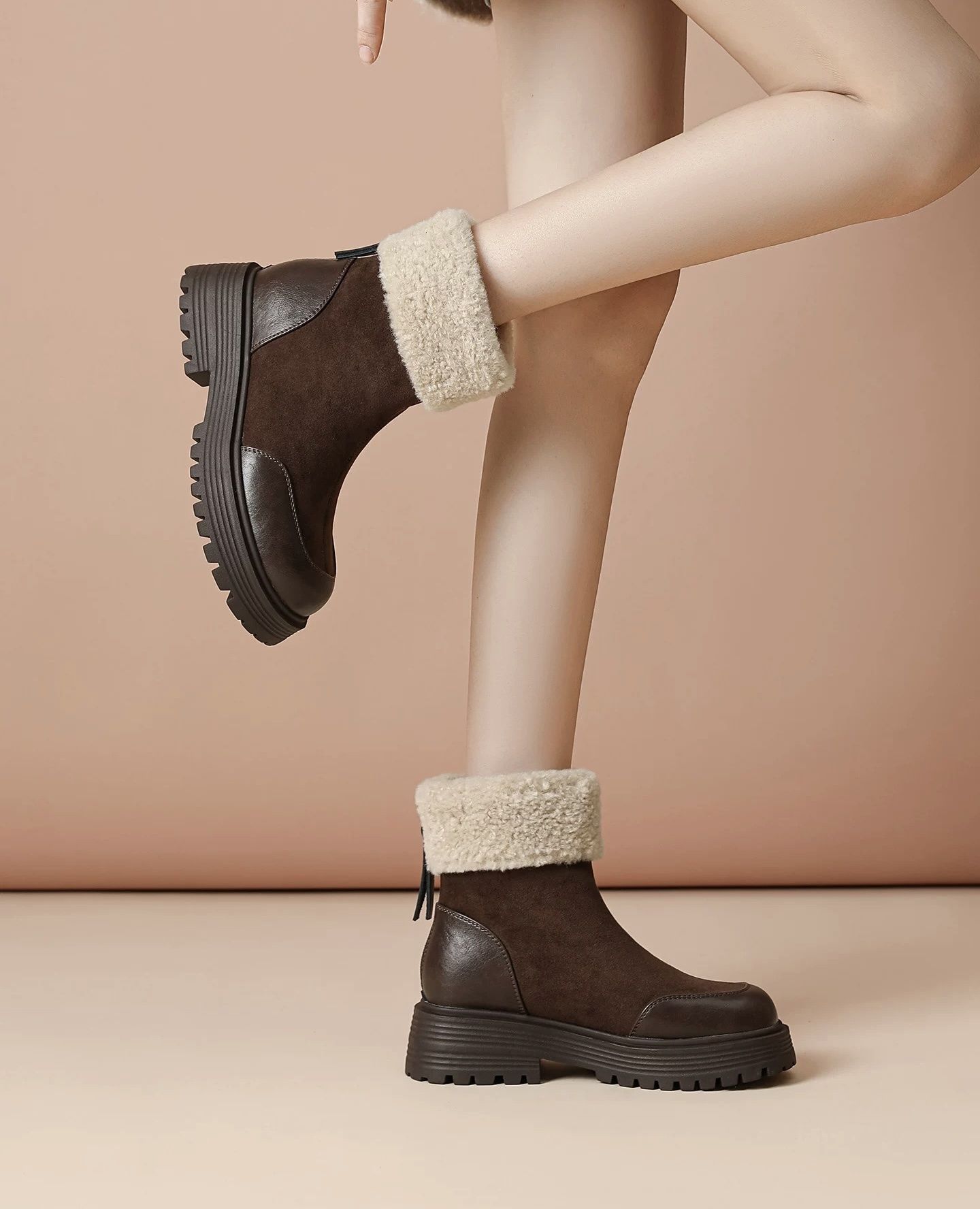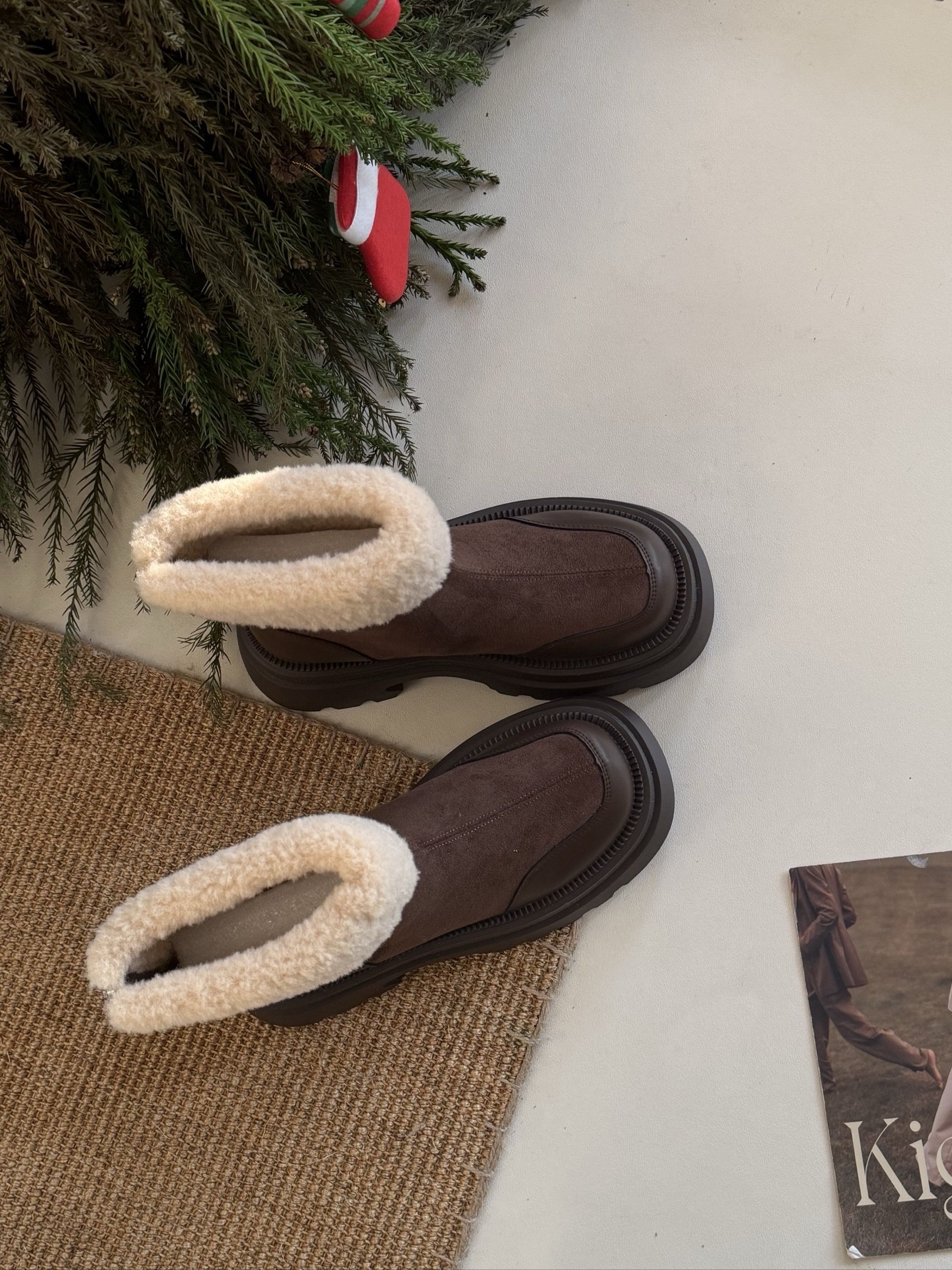 尺码偏小拍大一码!SOSOTATA 冬季加绒厚底马丁靴 软fufu绒感内里触感柔软,7CM鞋跟小个子显腿长