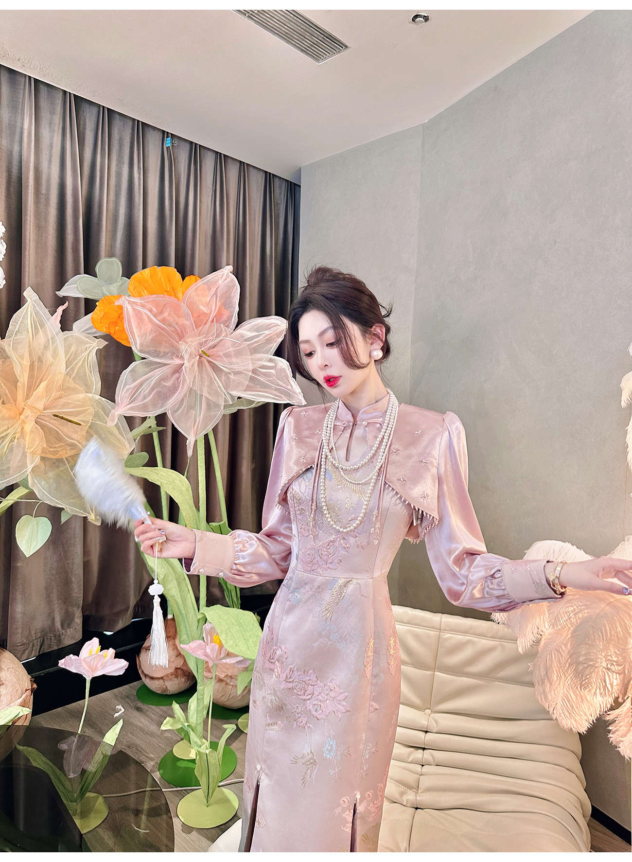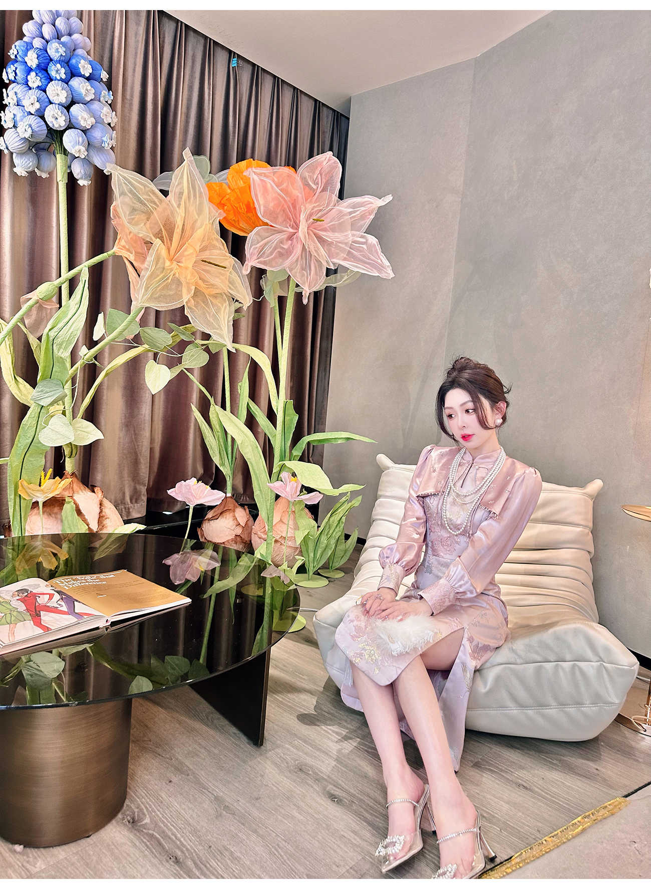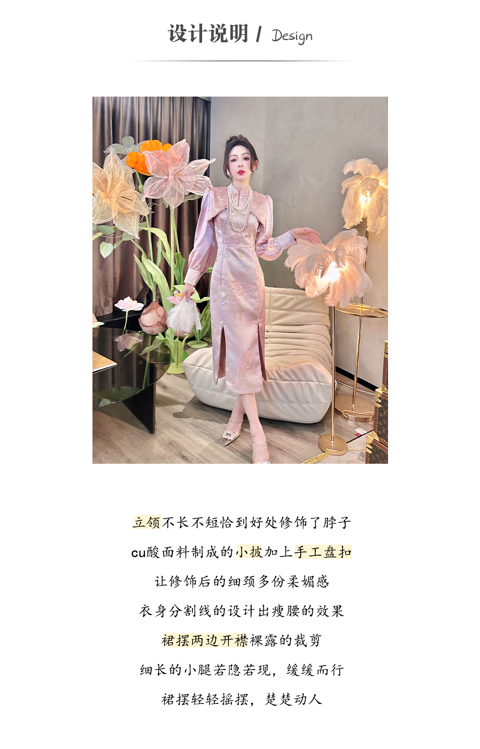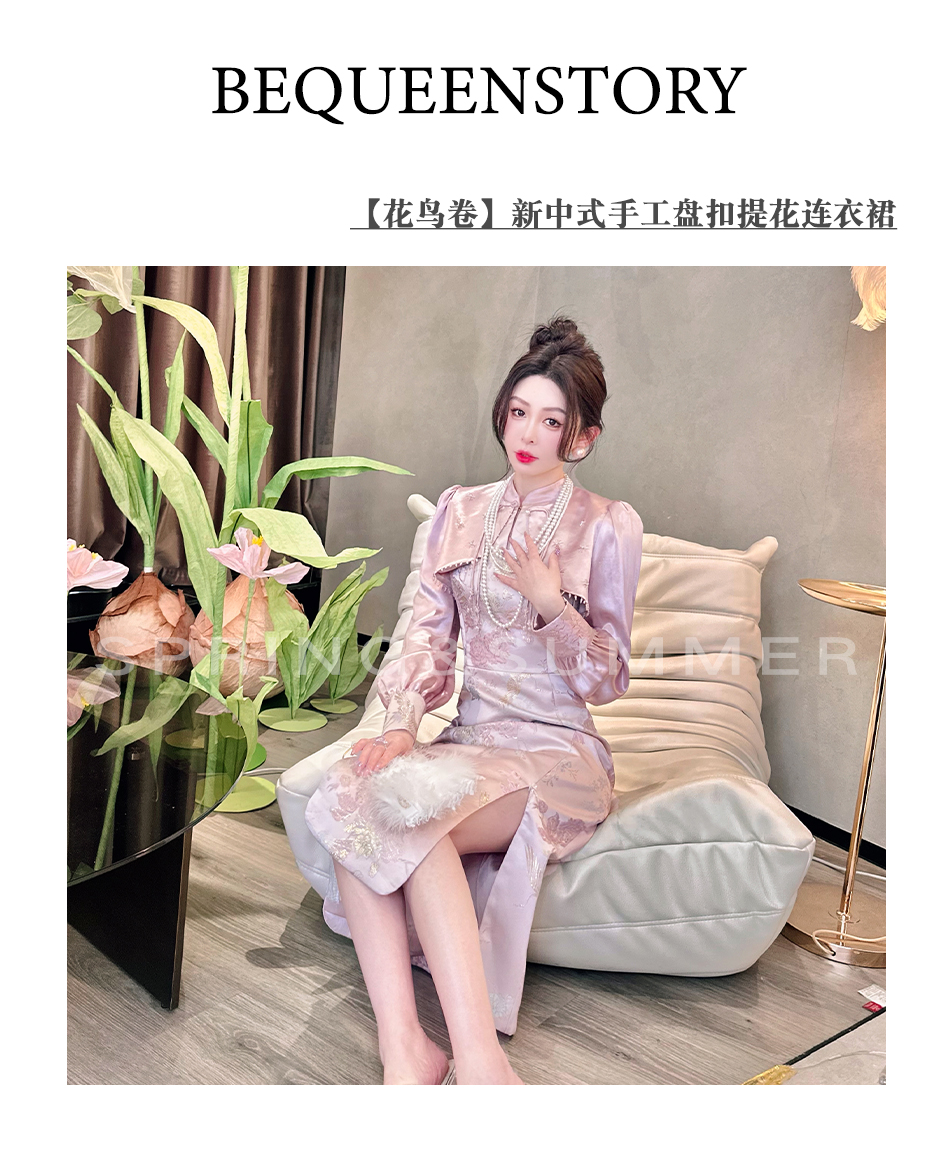 BeQueenStory【花鸟图卷】新中式手工盘扣提花连衣裙