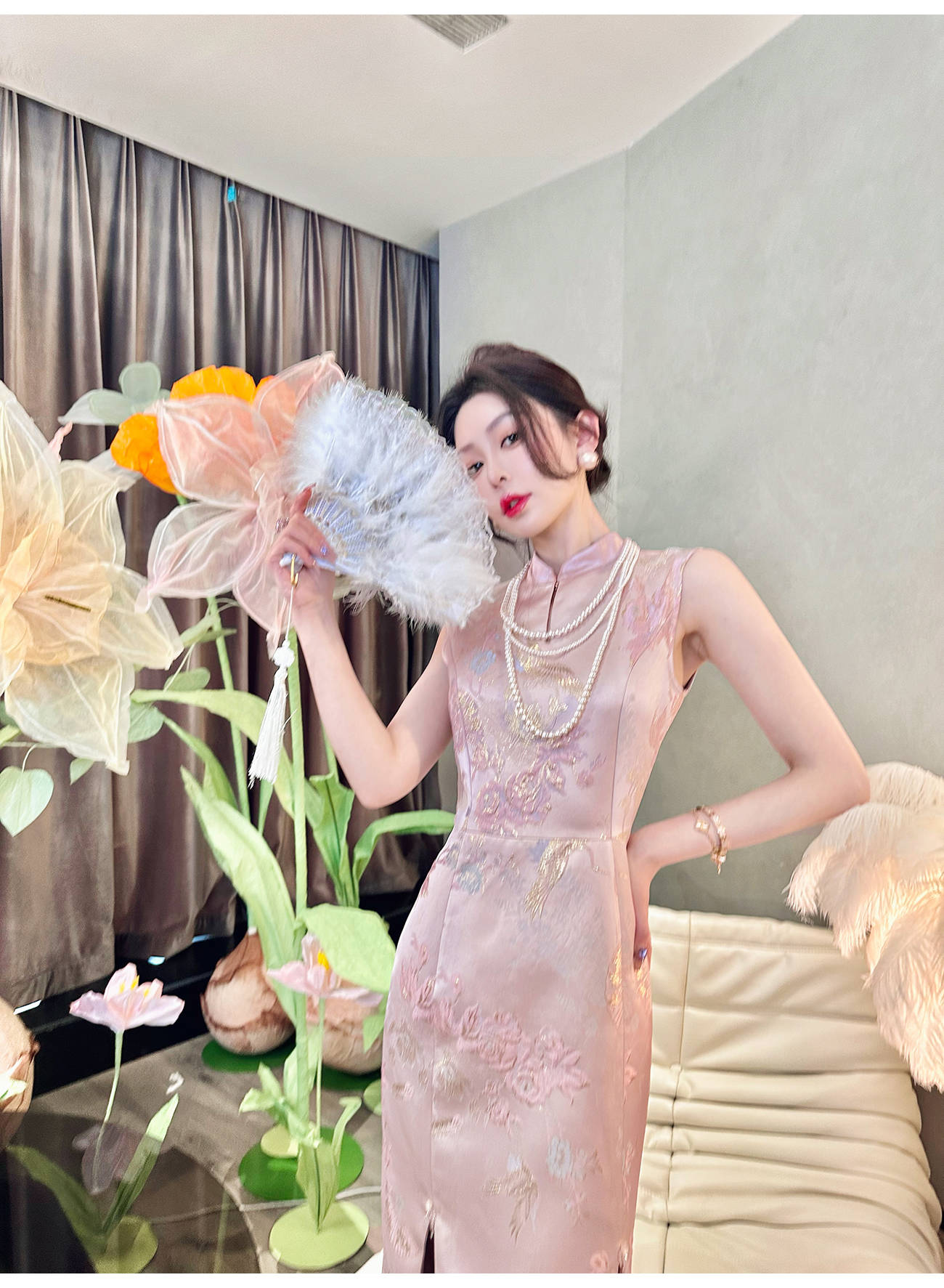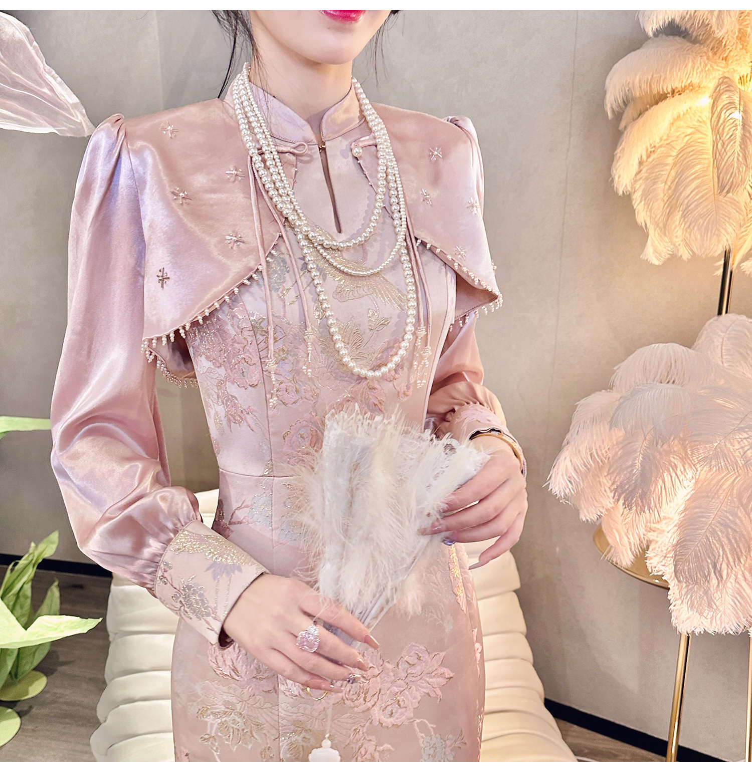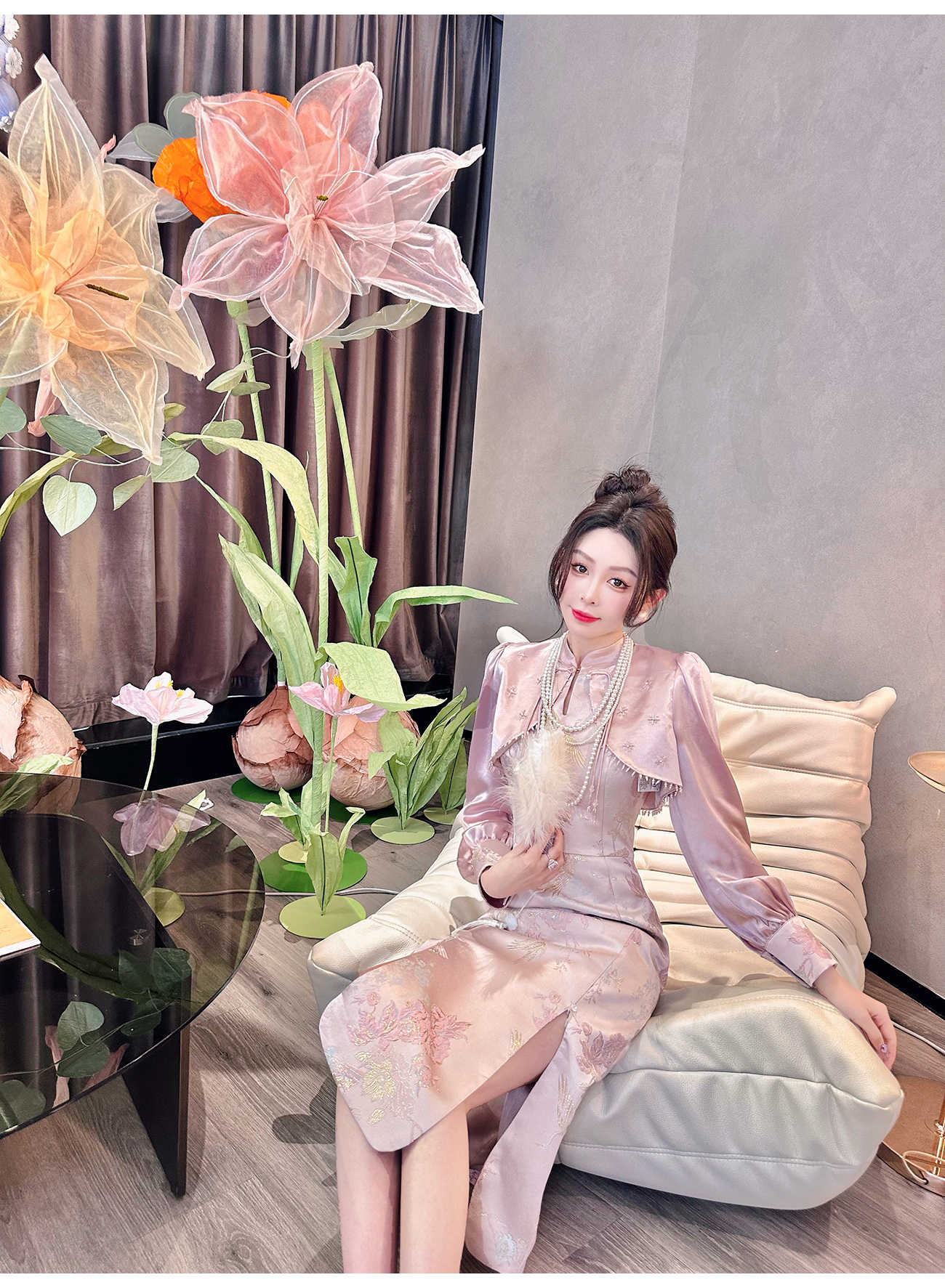 BeQueenStory【花鸟图卷】新中式手工盘扣提花连衣裙