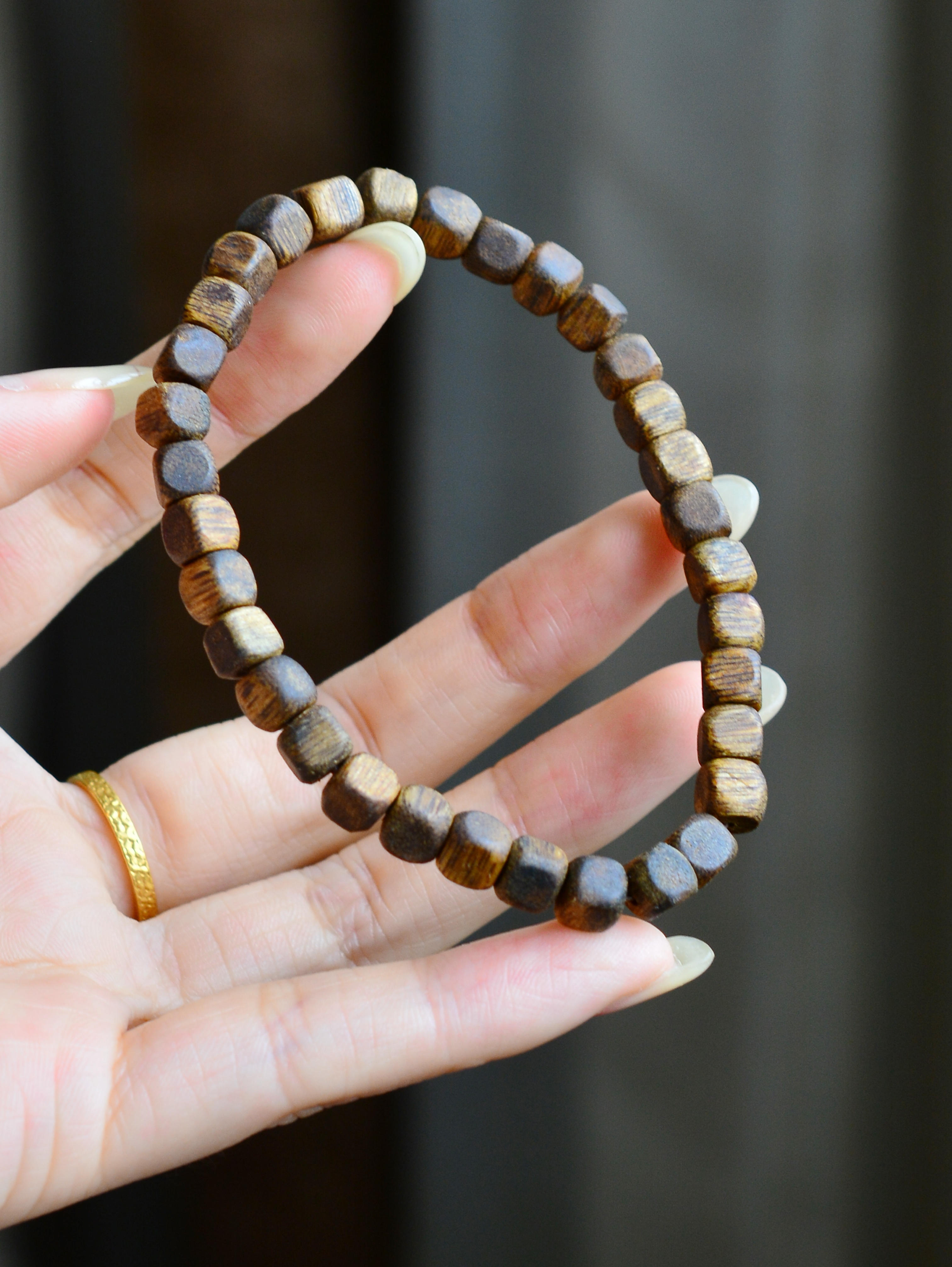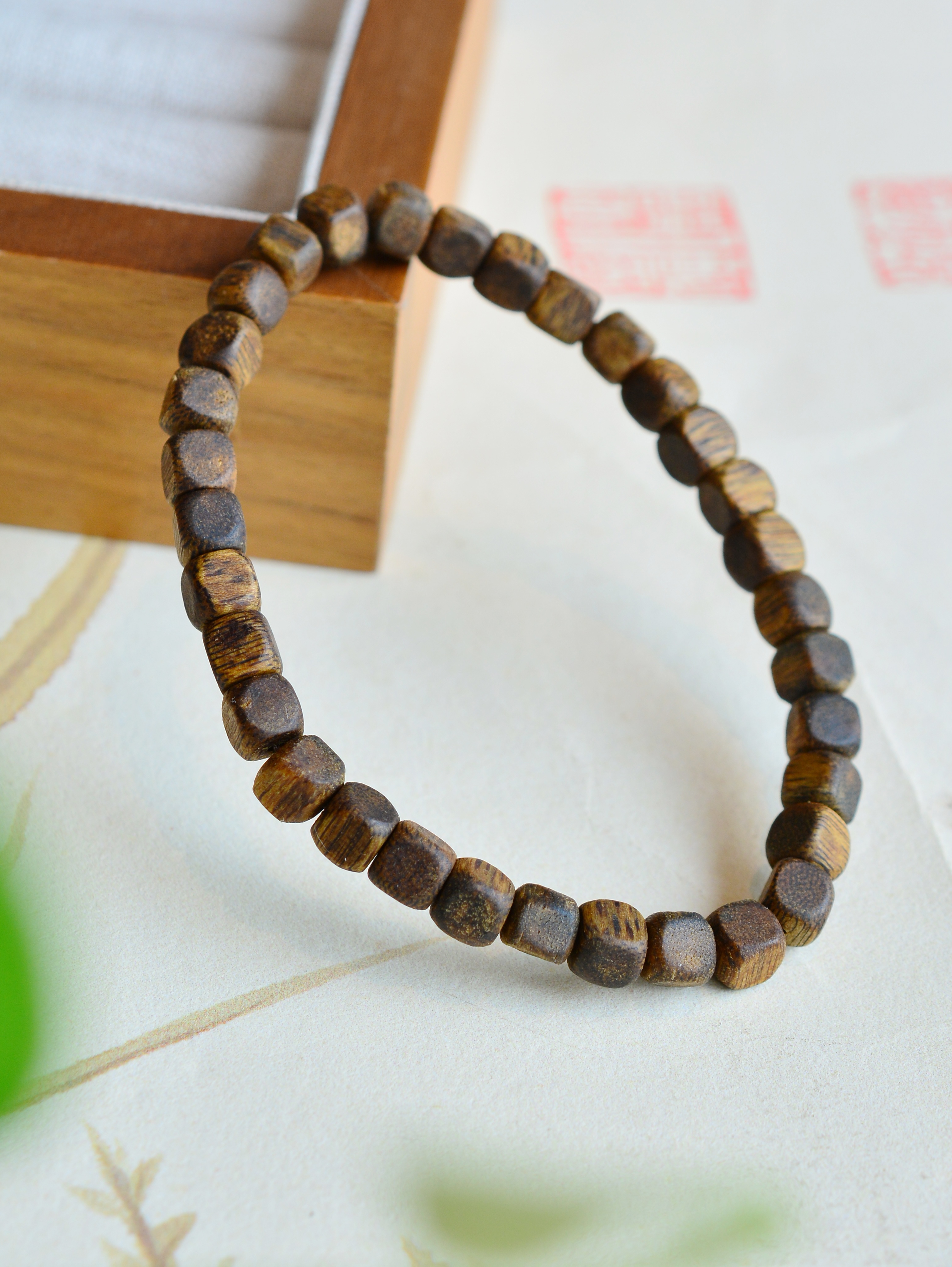 ZL711 【透顶绿母树沉香方糖单圈手串】