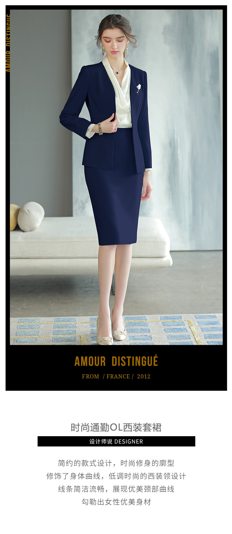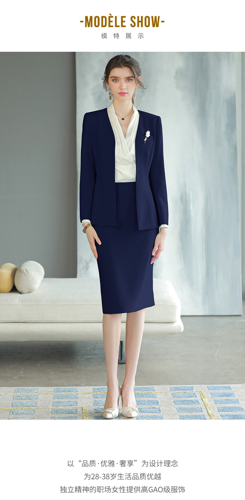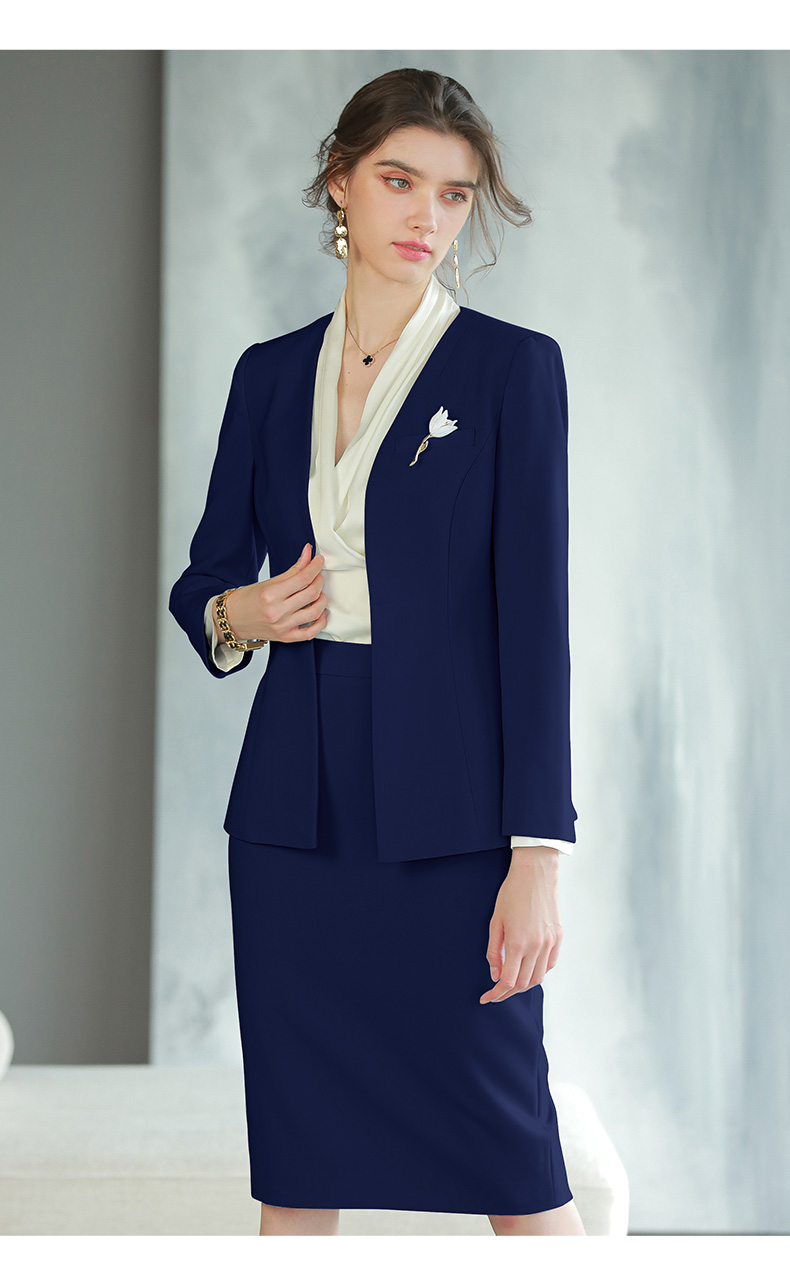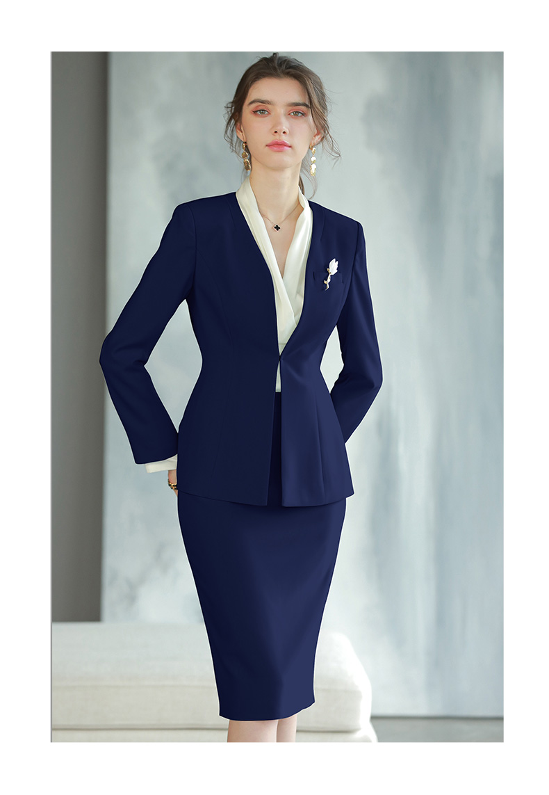 IWY/藏青色高端商务酒店接待工装女秋季新款藏青色西装套装职业工作服CS1584