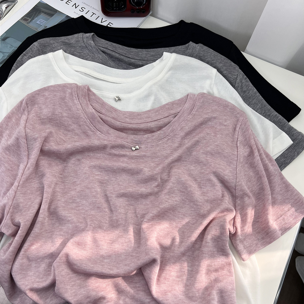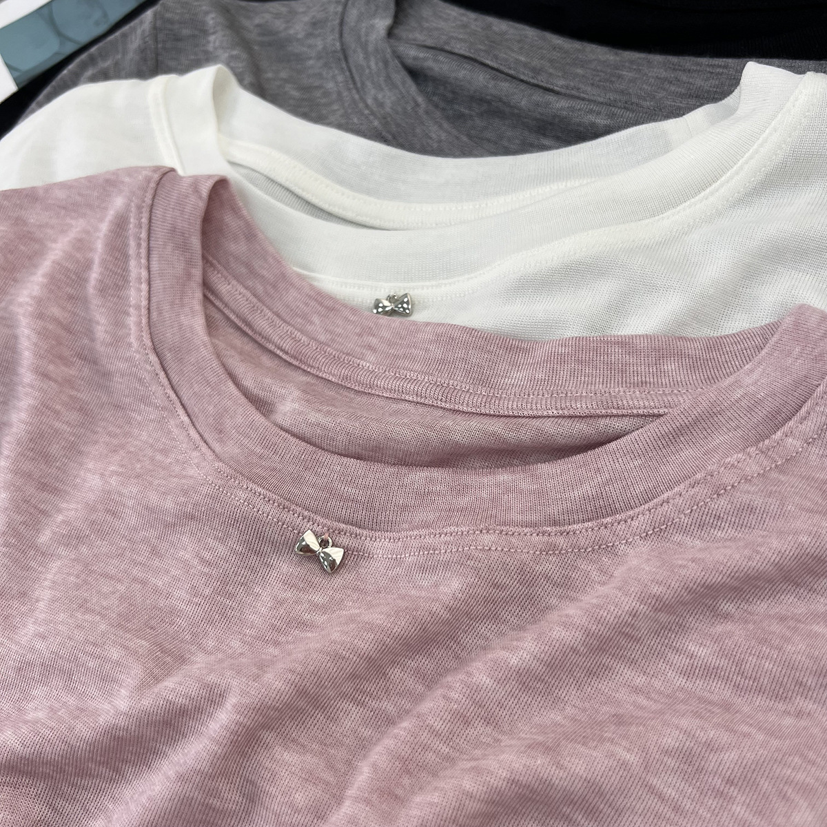 夏季【天丝短袖t恤女】轻薄柔软莱赛尔 宽松小个子短 款温柔纯色蝴蝶上衣