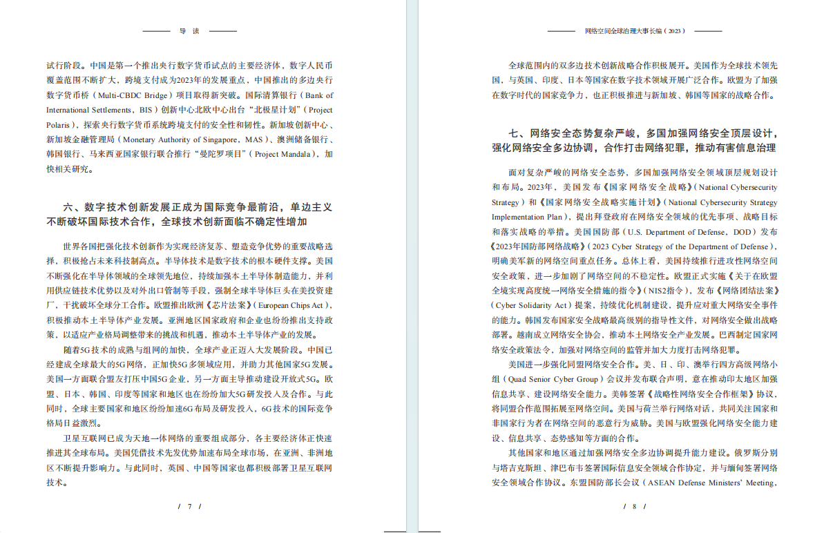 本书全面梳理2023年全球网络空间治理专题事件,以月份为索引,全景式展现2023年网络空间全球治理发展情况。“2023年网络空间全球治理要事概览”是对2023年网络空间全球治理进展、大国关系、重大事件进行的系统梳理;“2023年网络空间全球治理其他事件汇编”是除去要事概览以外,按月对网络空间全球治理领域的其他主要事件进行记录,涉及重要战略政策文件、报告等。本书虽为资料汇编,但内容全面细致,是了解2023年网络空间治理难得的图书。