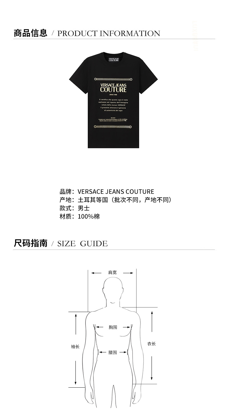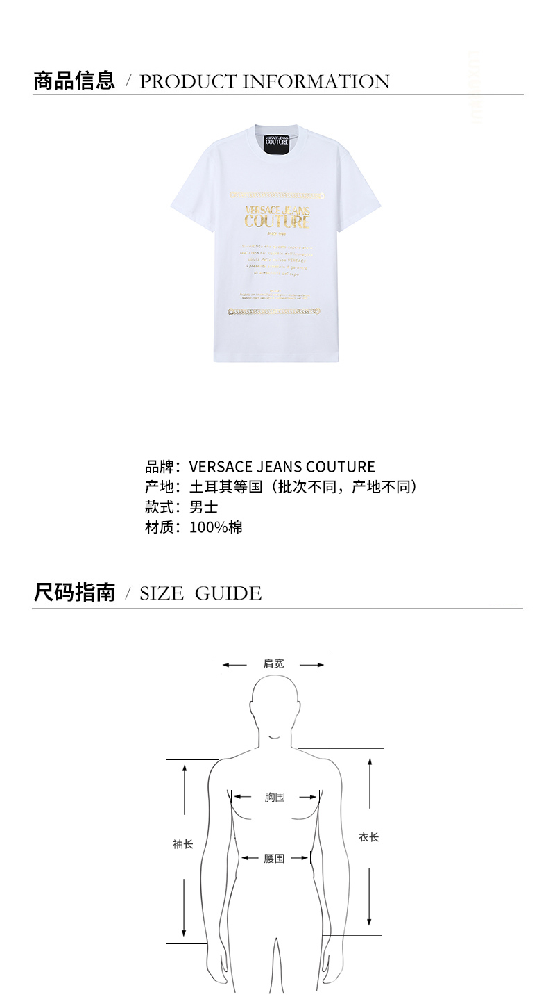 VERSACE JEANS COUTURE范思哲 男士棉质圆领短袖T恤 71GAHT01 CJ00T
