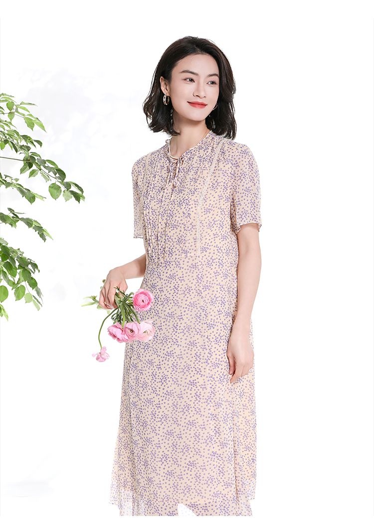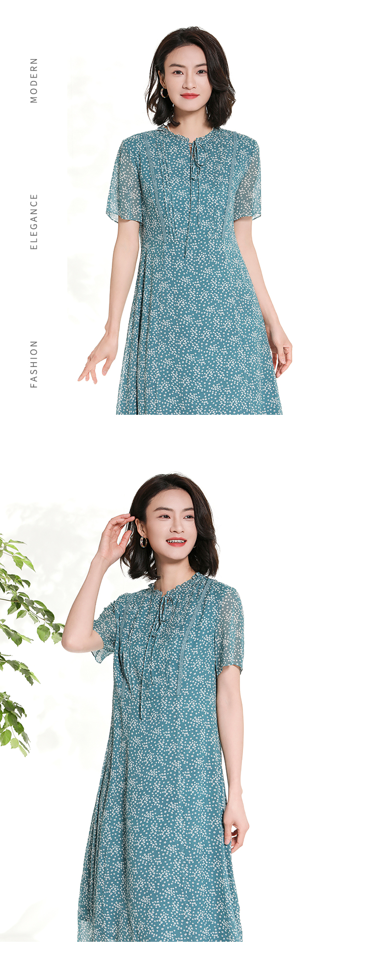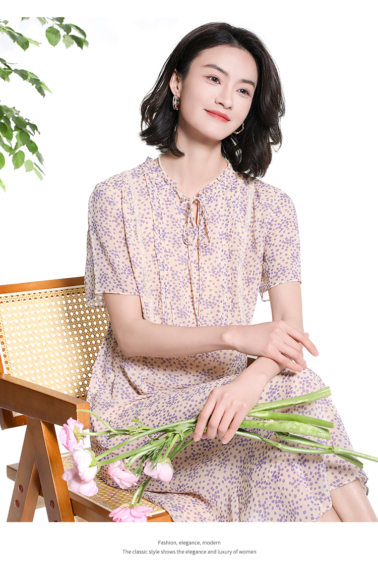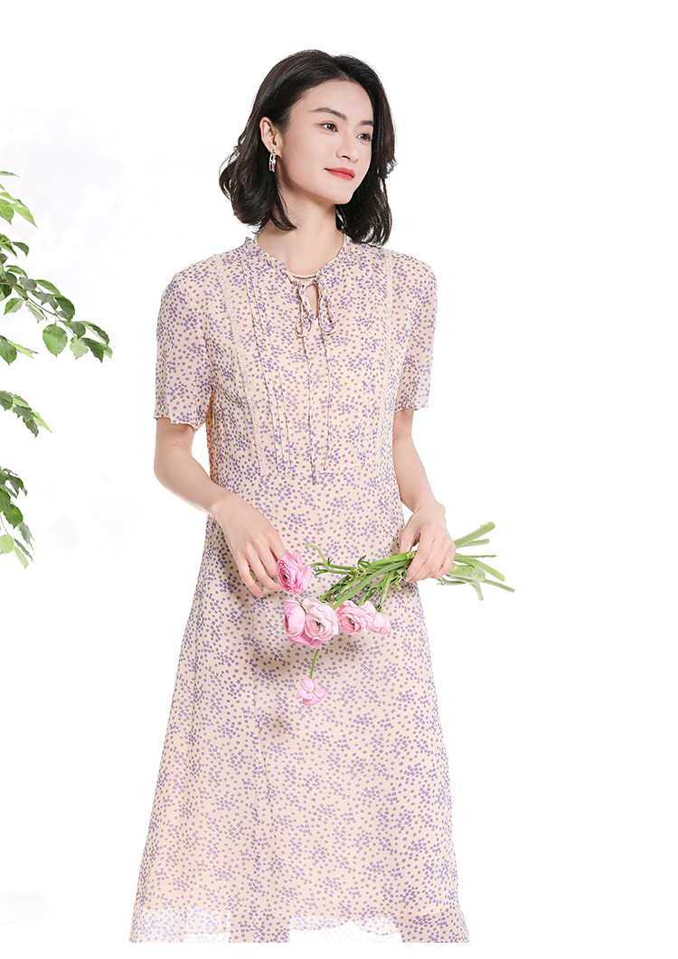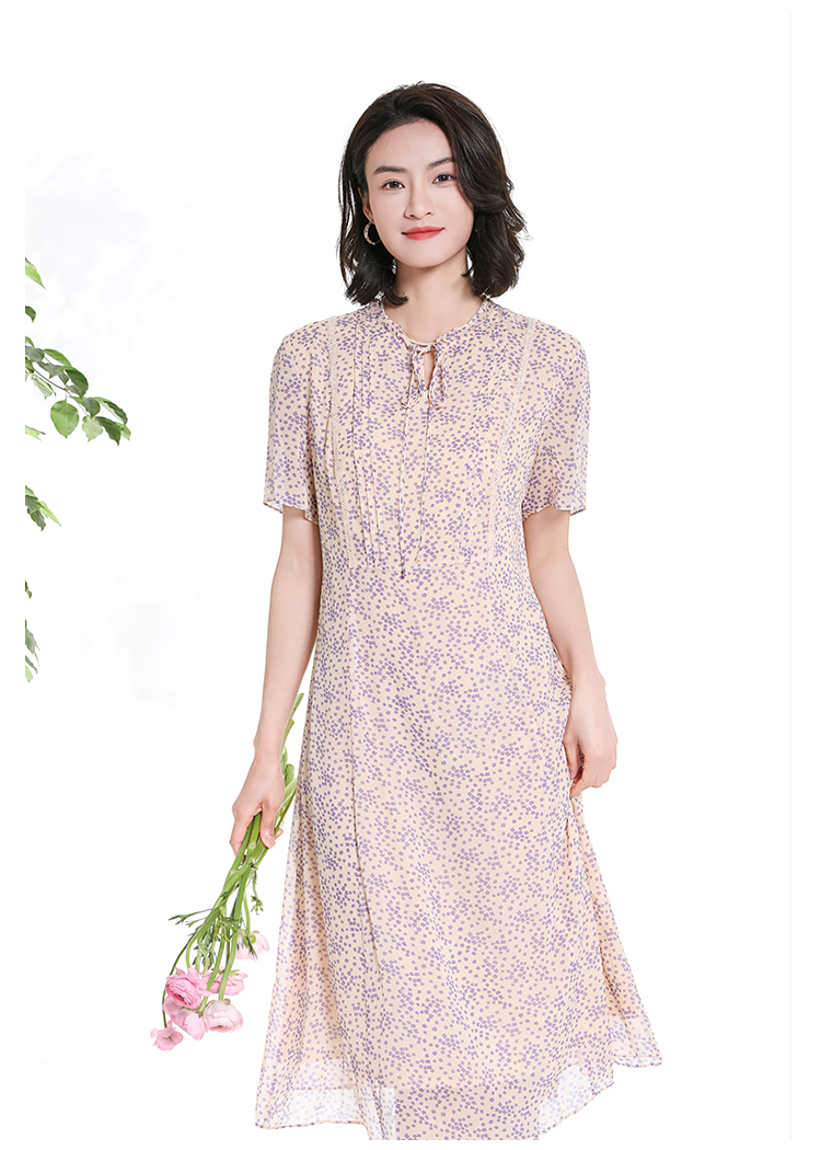佐尔美夏季新款时尚气质碎花桑蚕丝短袖连衣裙女M42LS48