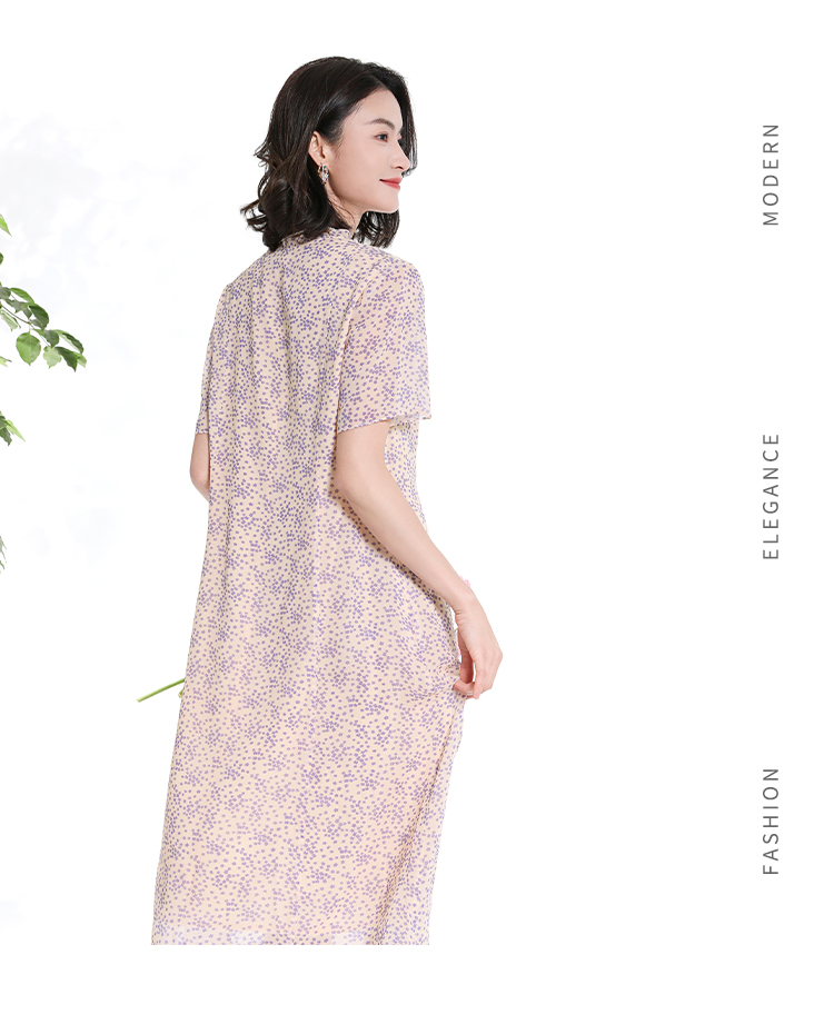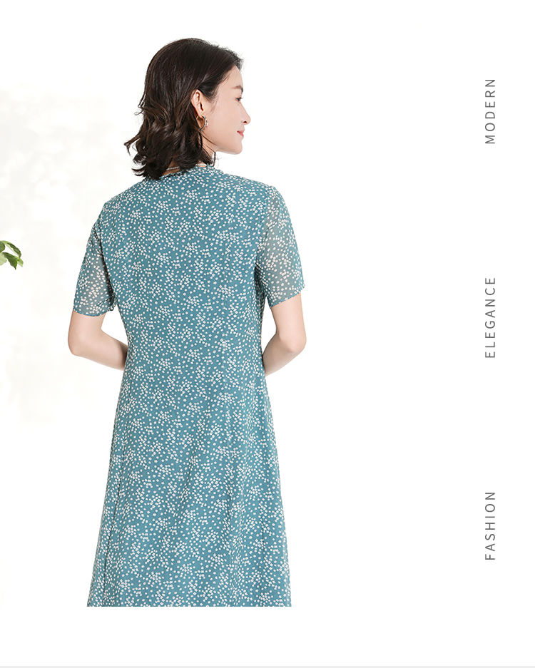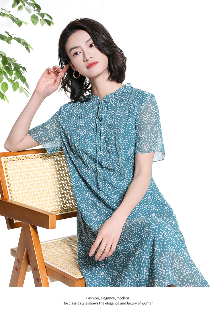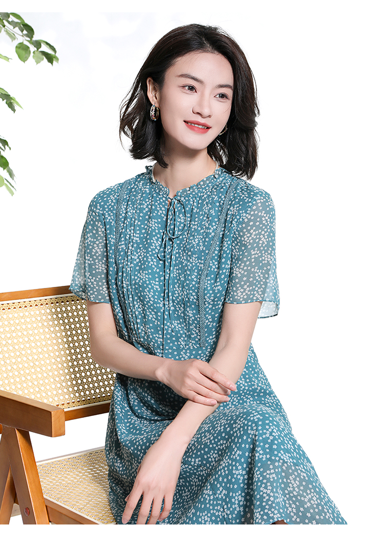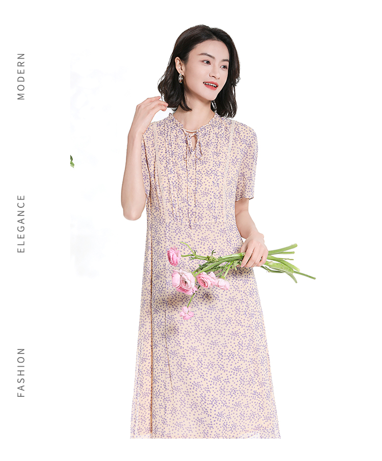 佐尔美夏季新款时尚气质碎花桑蚕丝短袖连衣裙女M42LS48