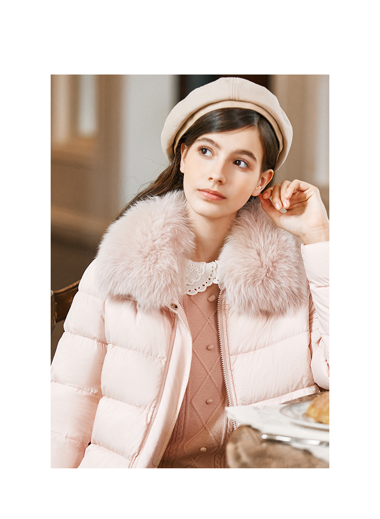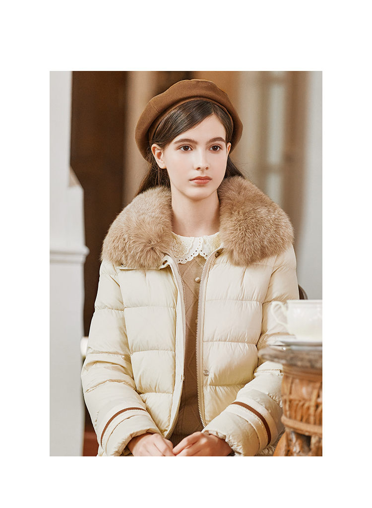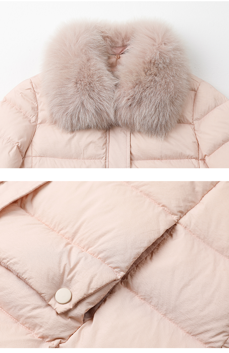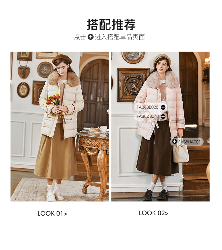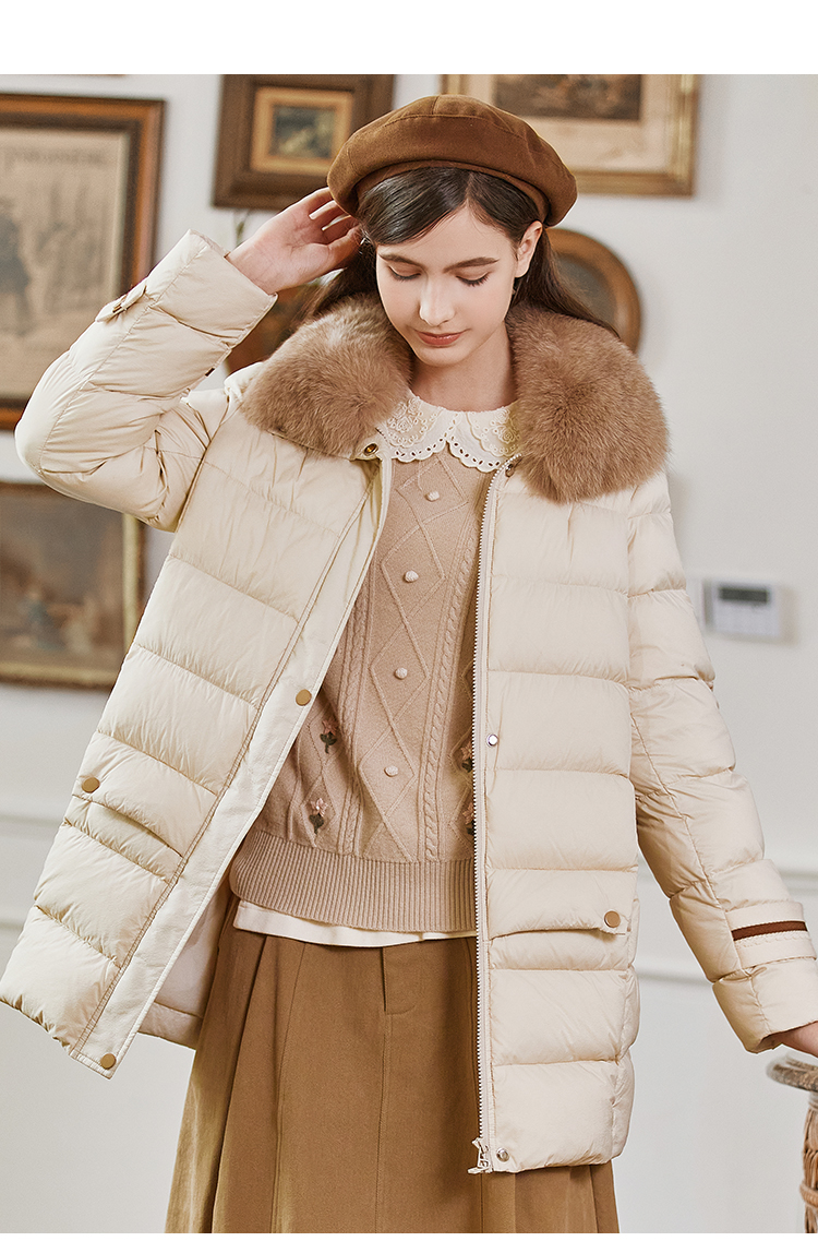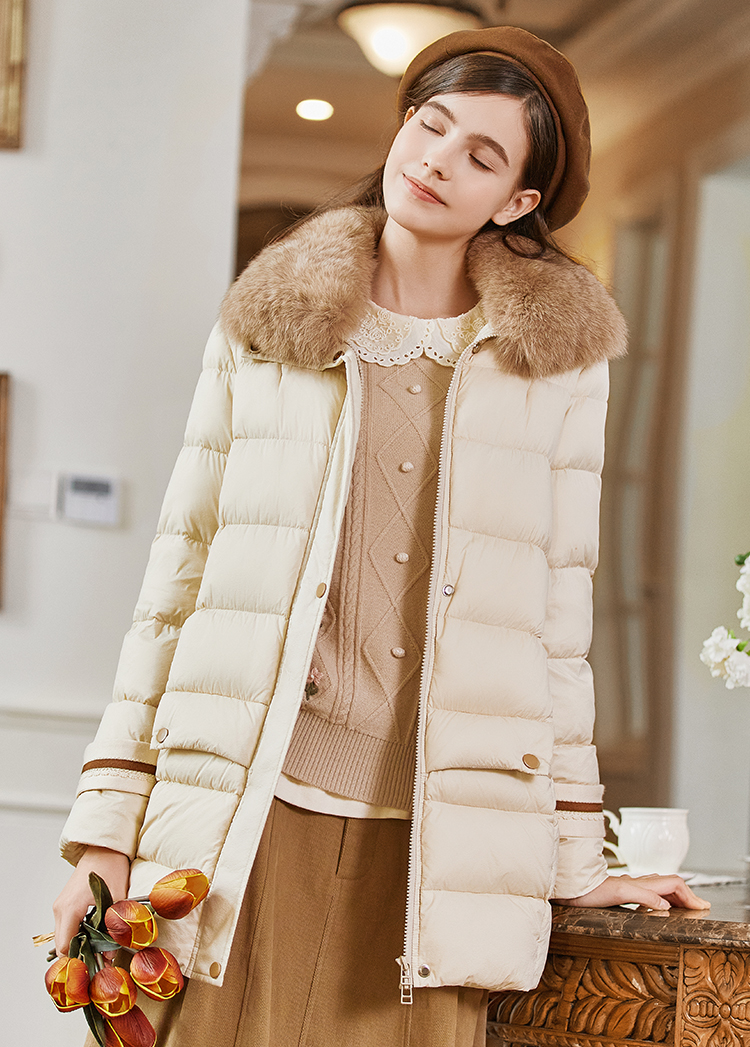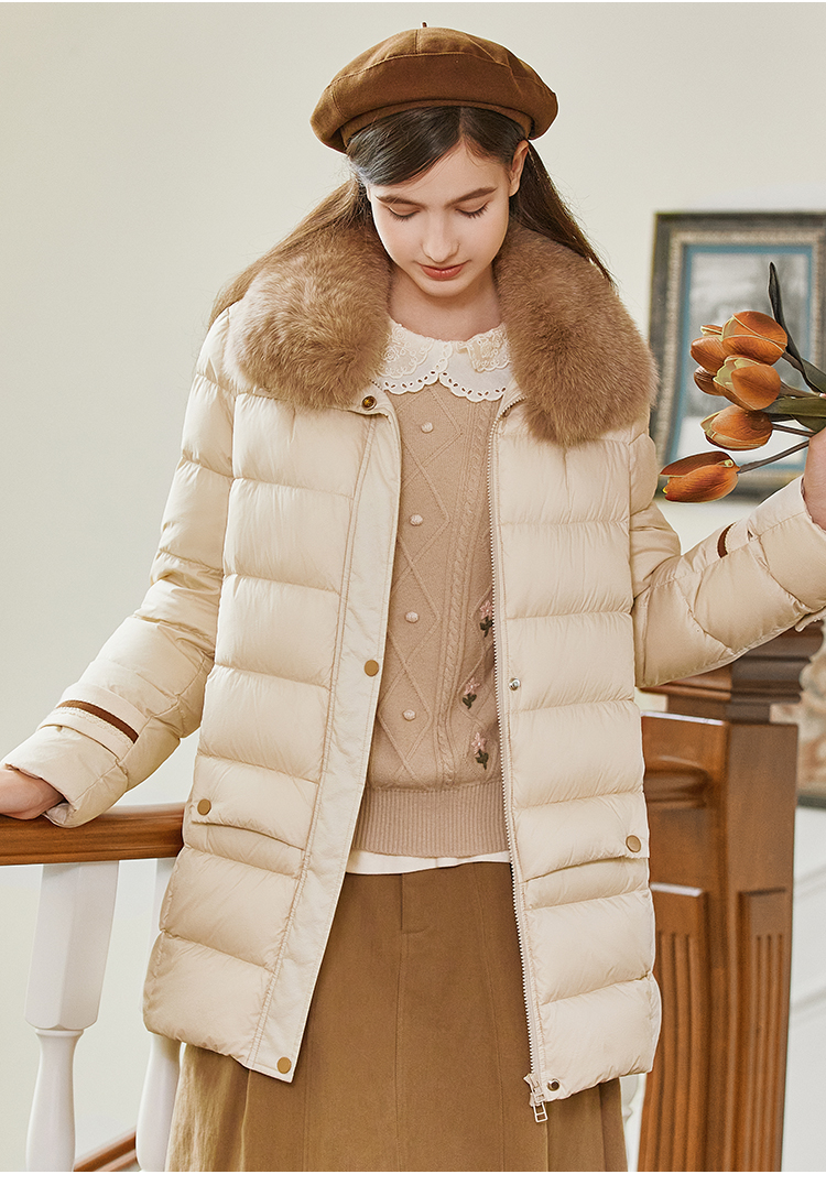 FAMECOCO范可儿带毛领羽绒服中长款经典女FAB8AI001