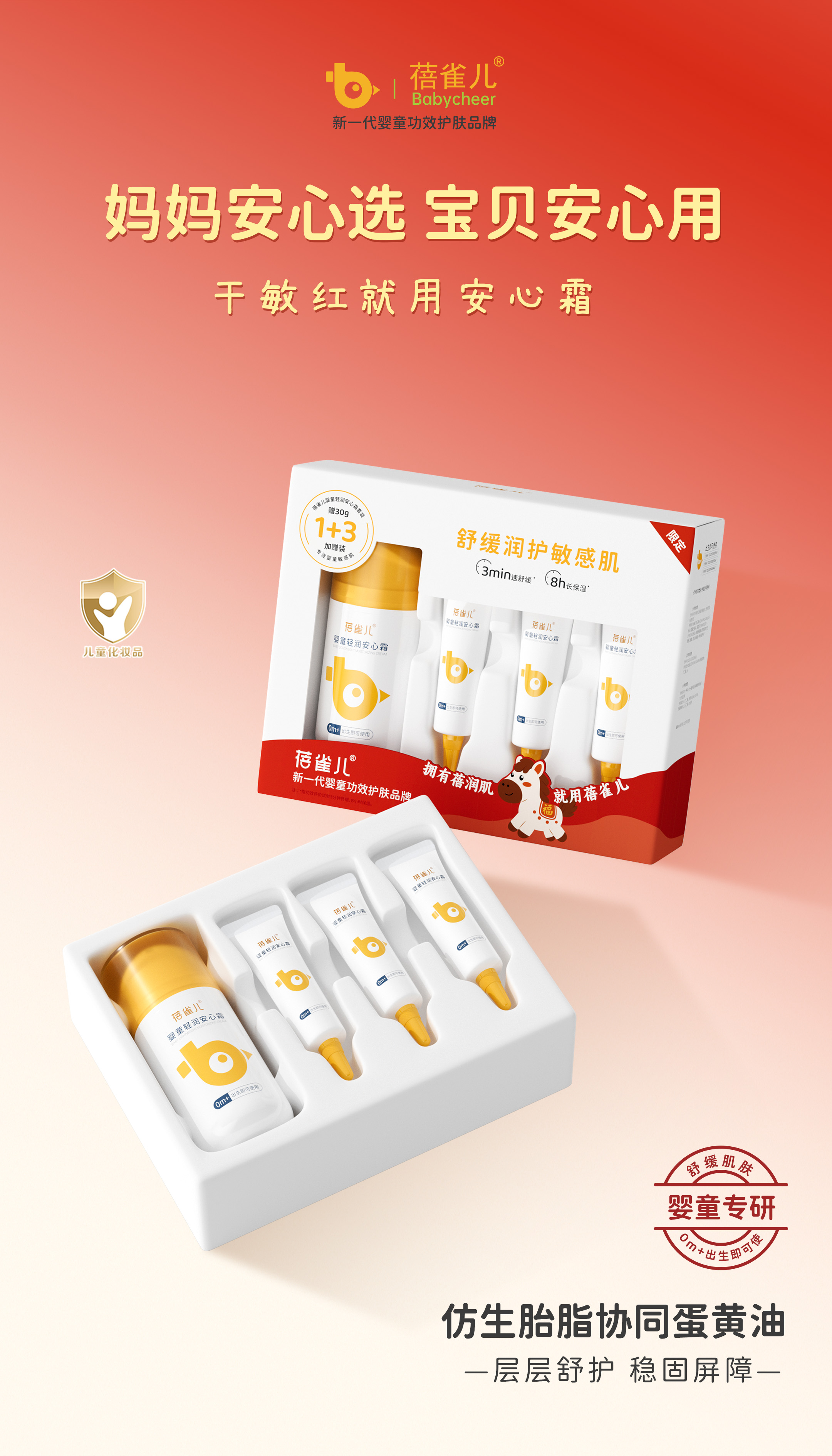 ⁵【蓓雀儿-安心霜】泛红/干燥/痒 日常护理用 仿生胎脂+燕麦β-葡聚糖+龙胆根 0岁以上儿童【蓓雀儿】 YY05-QTT-BQR