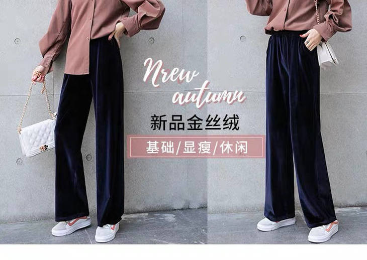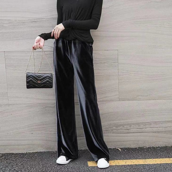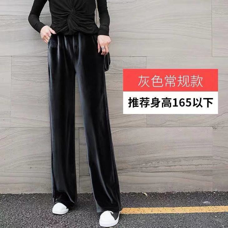 金丝绒阔腿裤女秋冬垂坠感高腰宽松直筒拖地长裤子垂感休闲运动裤七夕情人节